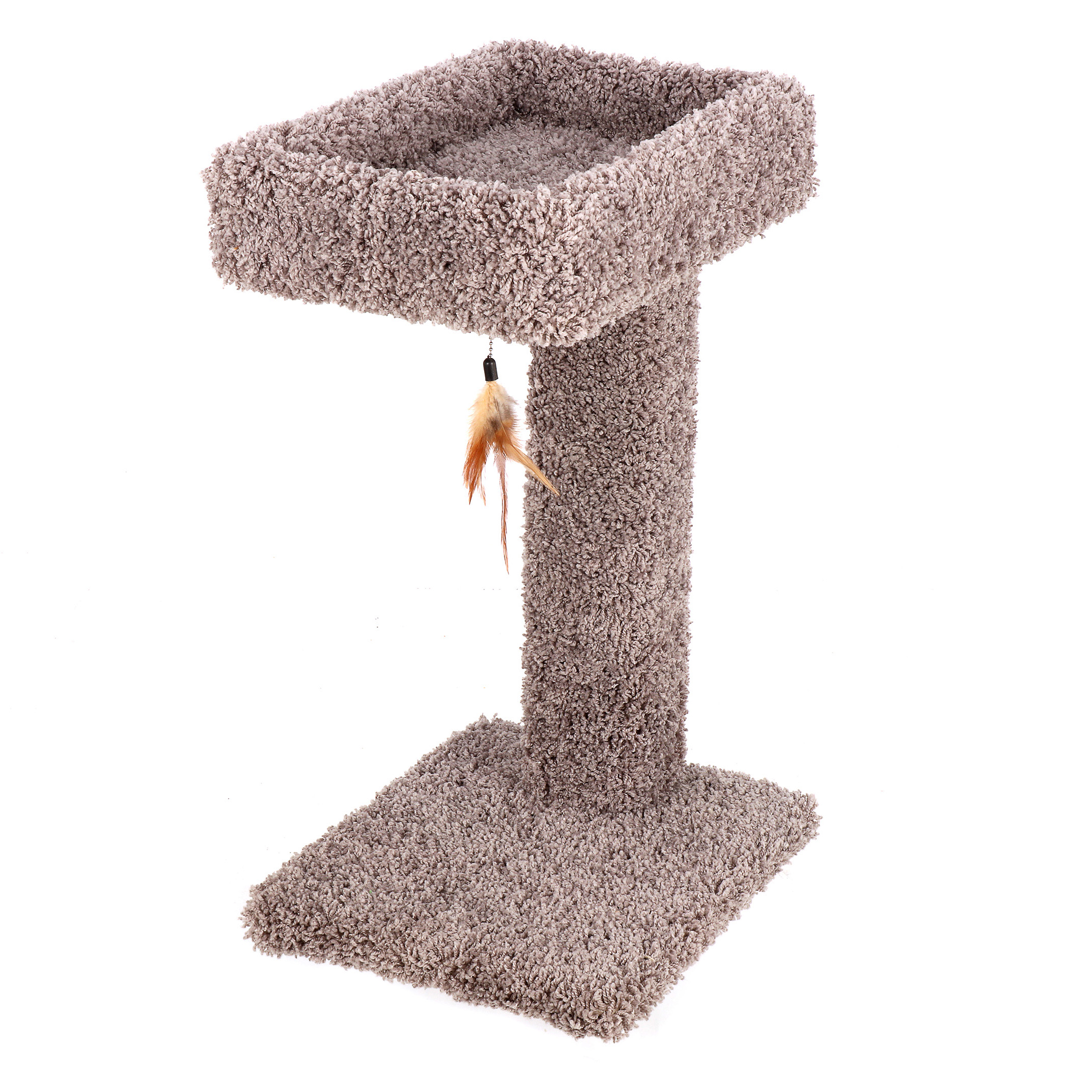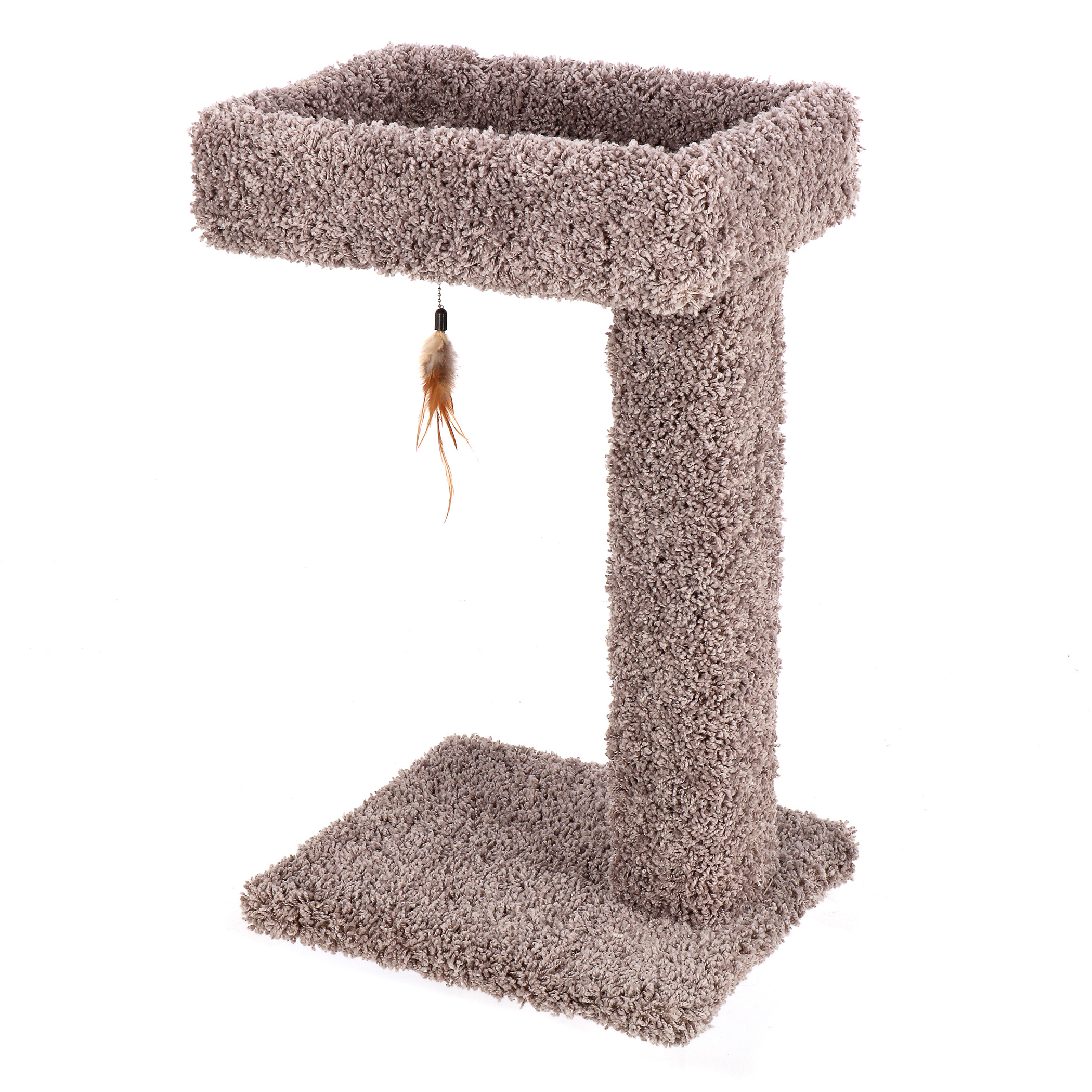 Paw pleasing carpeted scratch post includes a cozy perch on top for cats to rest and relax. Tall height allows cats to fully stretch.