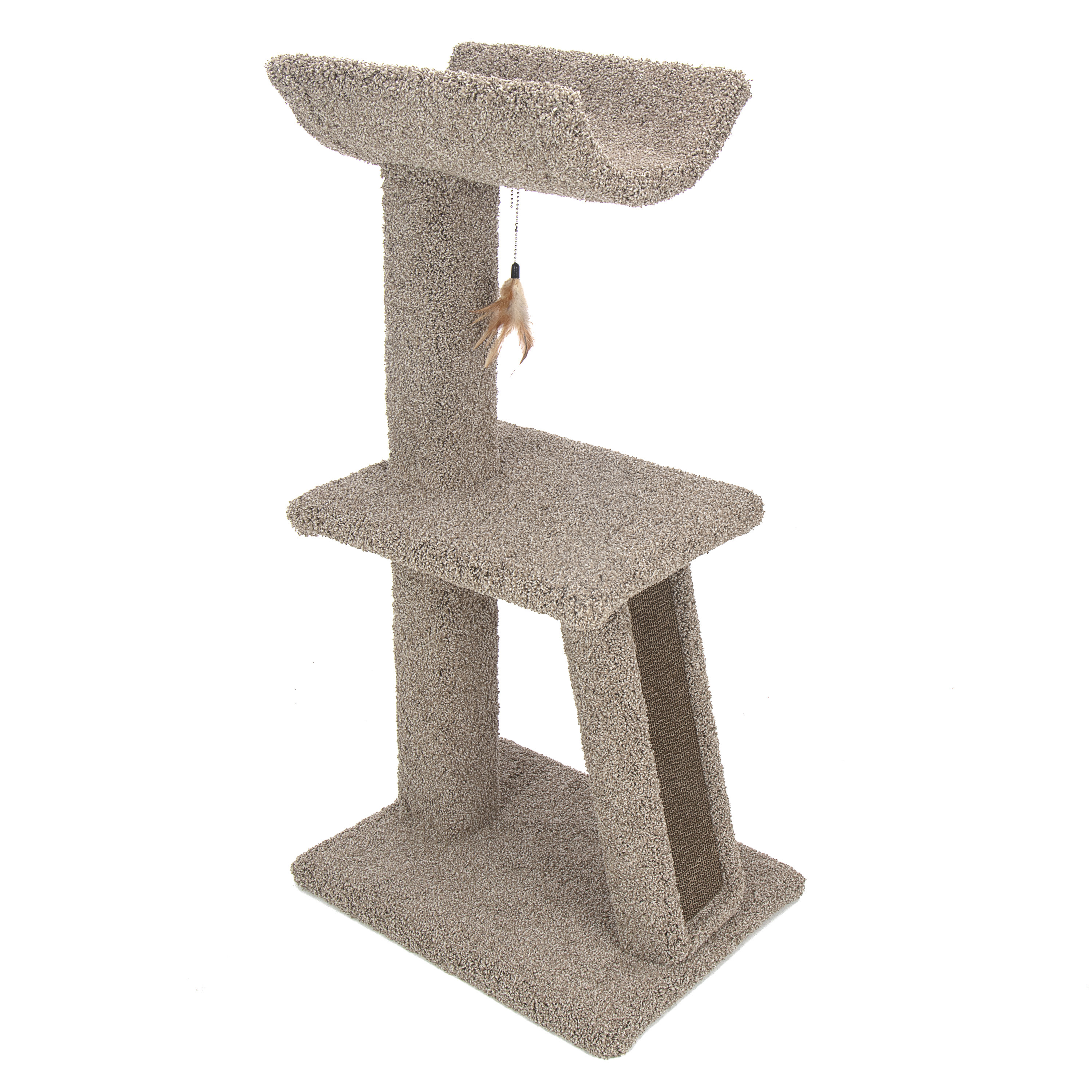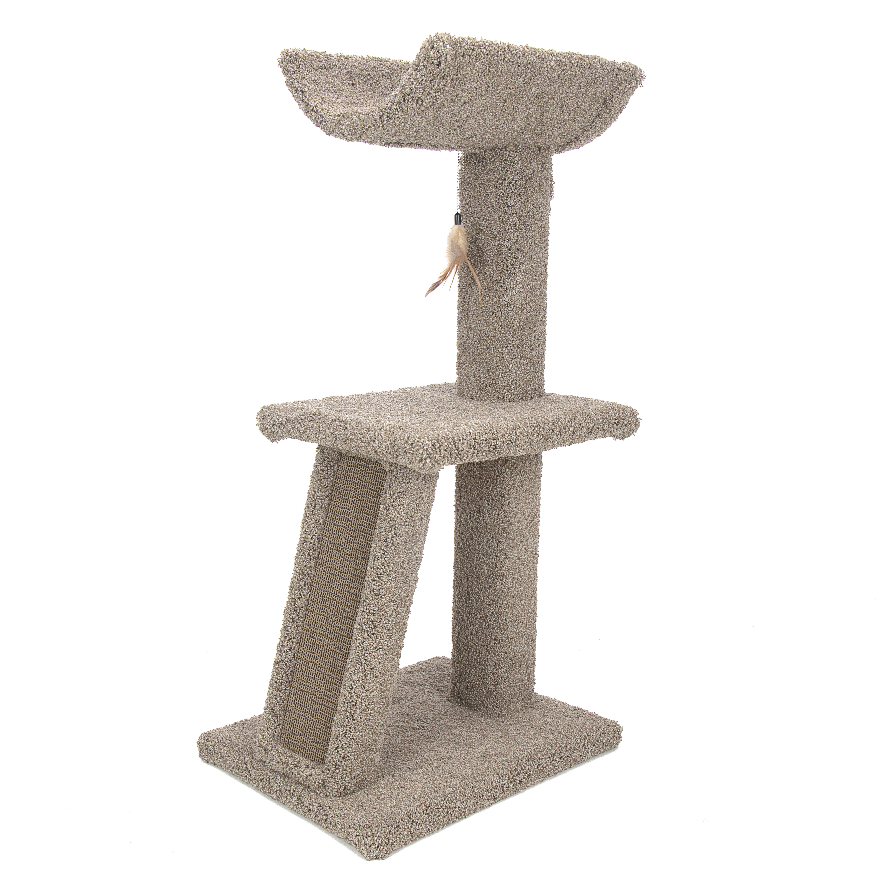 Kitty Cradle & Corrugate is cozy cat furniture that is perfect for scratching, playing and napping. Paw pleasing corrugate panel is replaceable for endless scratching fun. Cozy cradle on top is so comfortable for napping and a feather toy completes the fun.