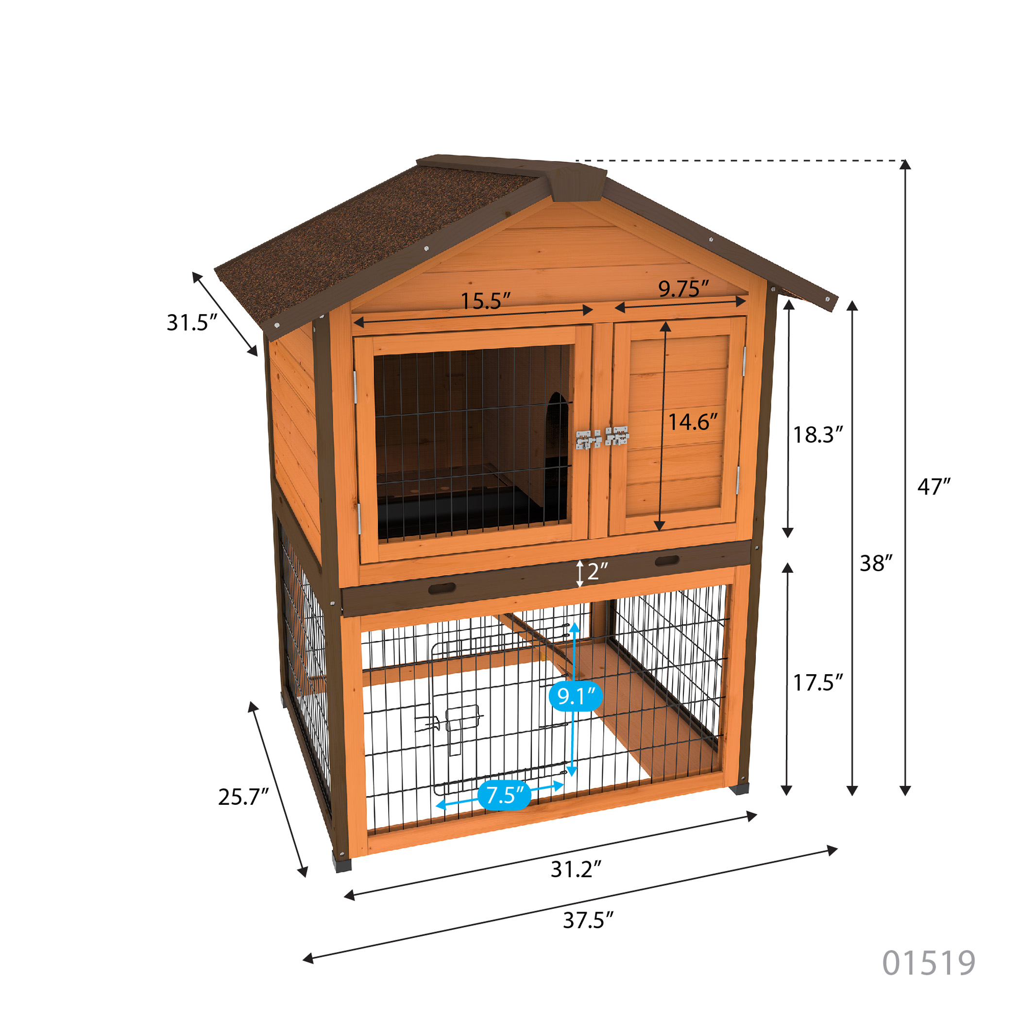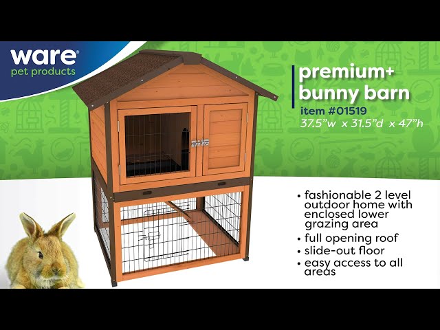 Our Premium+ Bunny Barn is the perfect shelter for your pet. This fashionable home features 2 levels with pasture access. Made from Fir wood, sealed with waterproof non-toxic stain and heavy duty powder coated wire.