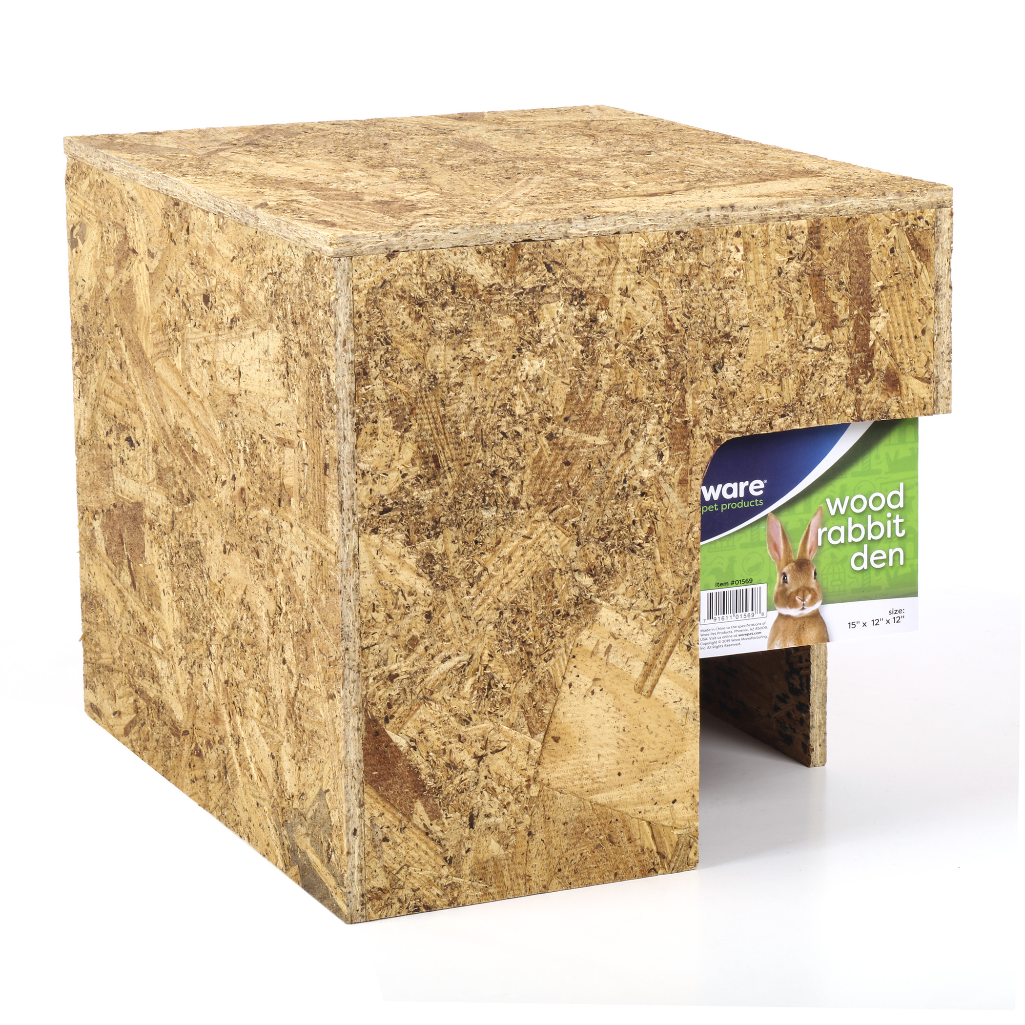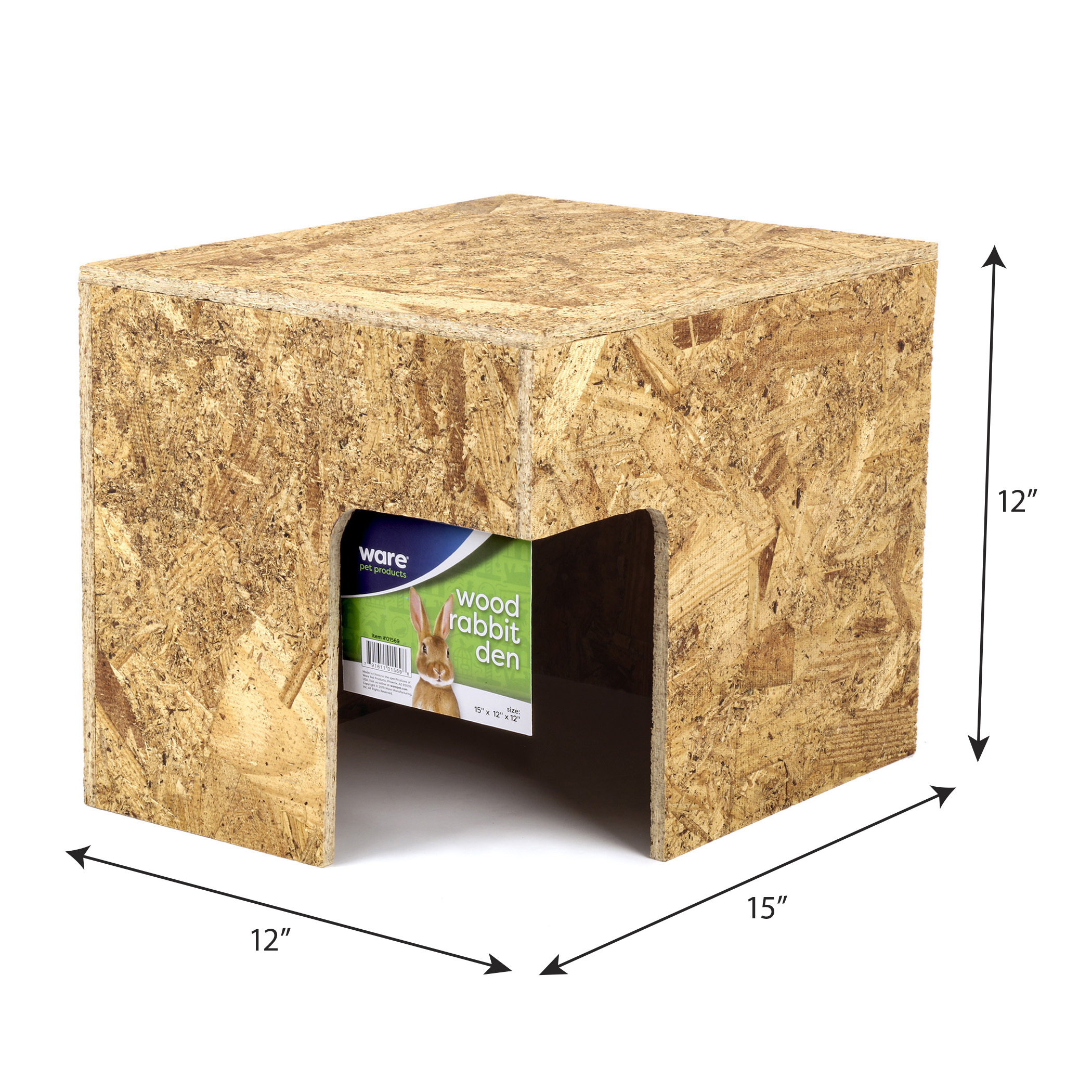 Rabbit Den is a durable hide-out that fits any cage or hutch to provide a hiding spot below and resting spot above. Made in the USA of high quality wood.