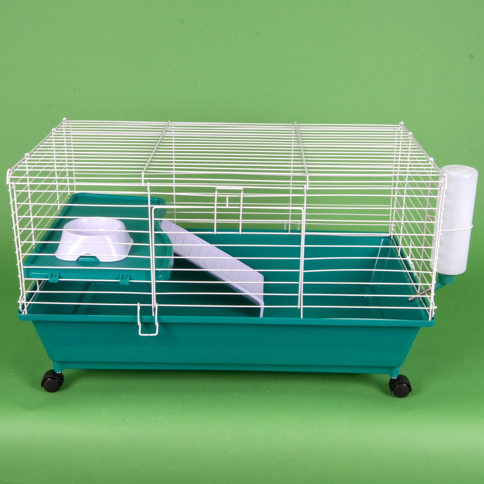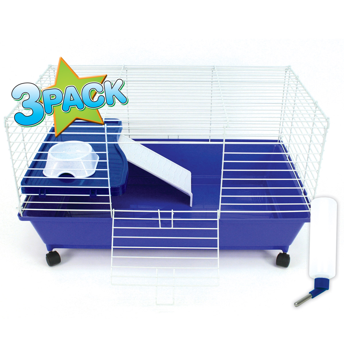 Our Home Sweet Home Large Deluxe Cage comes with a shelf, bowl, bottle, ramp and rolling casters - just add food and bedding for a complete kit. They have a deep plastic base and an easy snap-on top made of durable powder coated wire. They come in a colorful informative box for a great display.