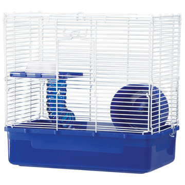 Our Home Sweet Home Hamster Cage Two Level Multi Pack (3 to a pack) comes with a shelf, bottle, bowl, ramp, wheel and tube. It has a deep plastic base and an easy snap-on top made of durable powder coated wire. Available in three colors.