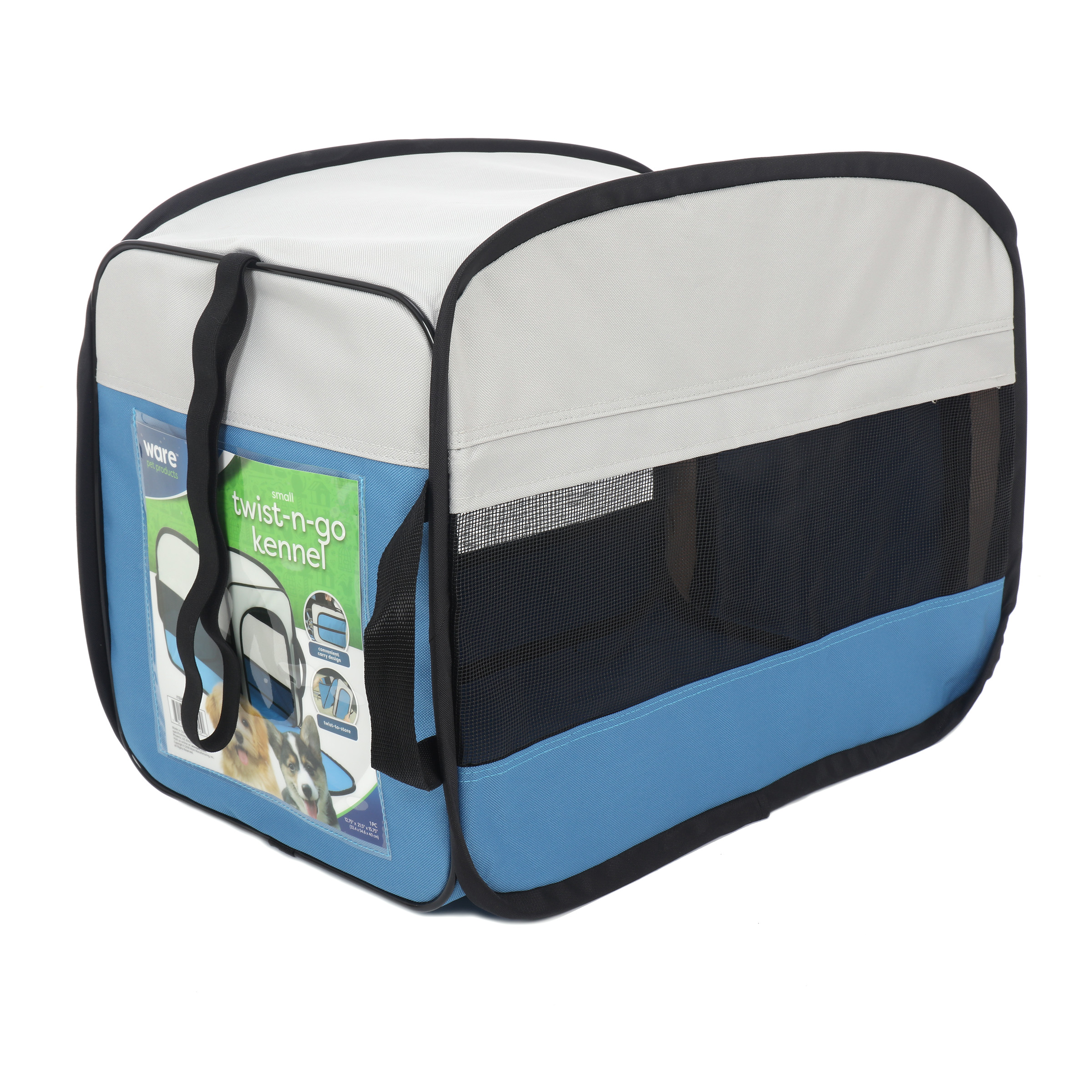 Our Twist-N-Go Kennel works great at home and on the go. Twists open and pops up fully assembled. Easily folds for travel or storage.