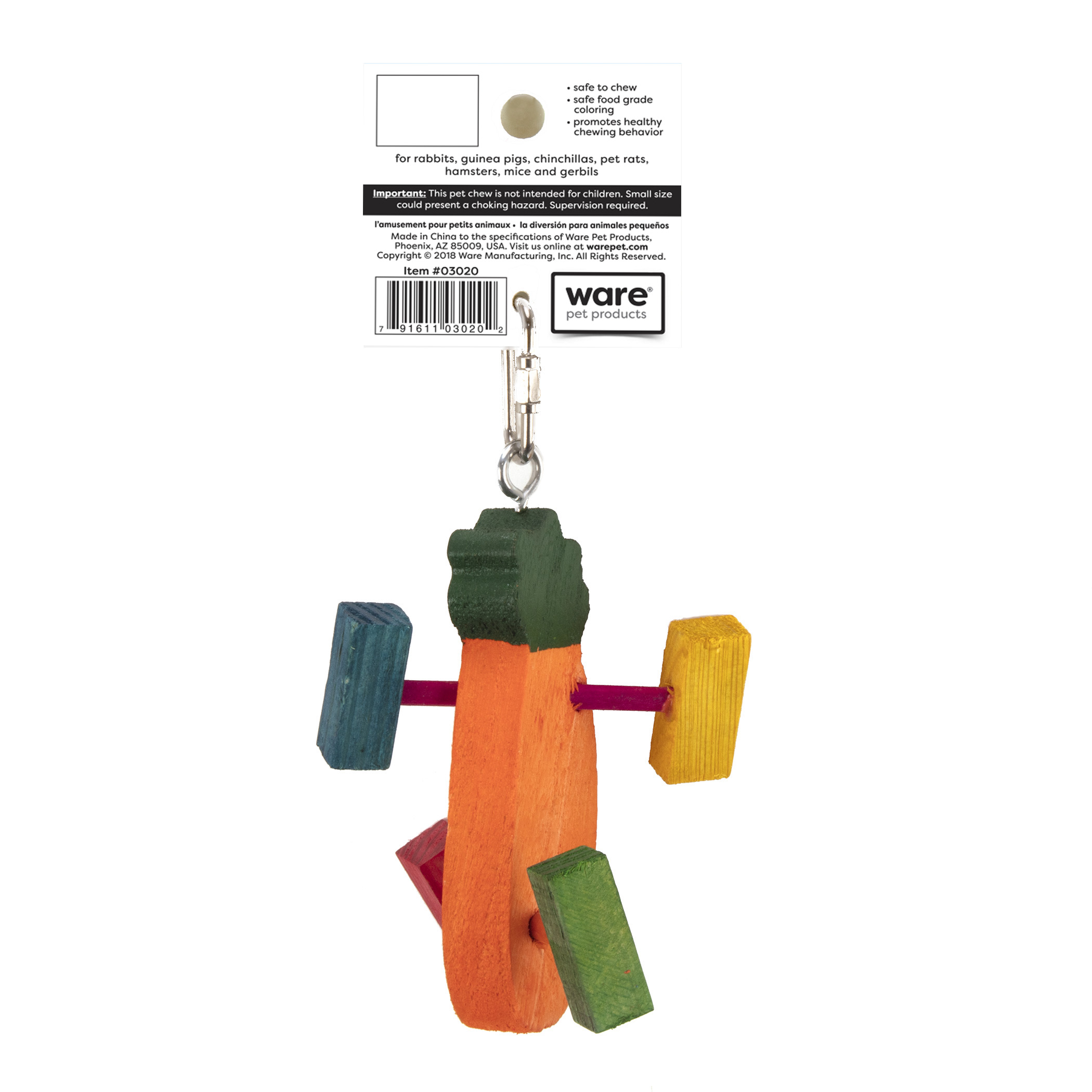 The Krazy Karrot Toy gives a new twist to playtime! It is made of all natural pine with safe, food grade coloring. Critters love the twist-n-turn chew-n-fun this Krazy Karrot Toy provides. Wood chew toys help keep teeth trimmed and helps relieve cage boredom.