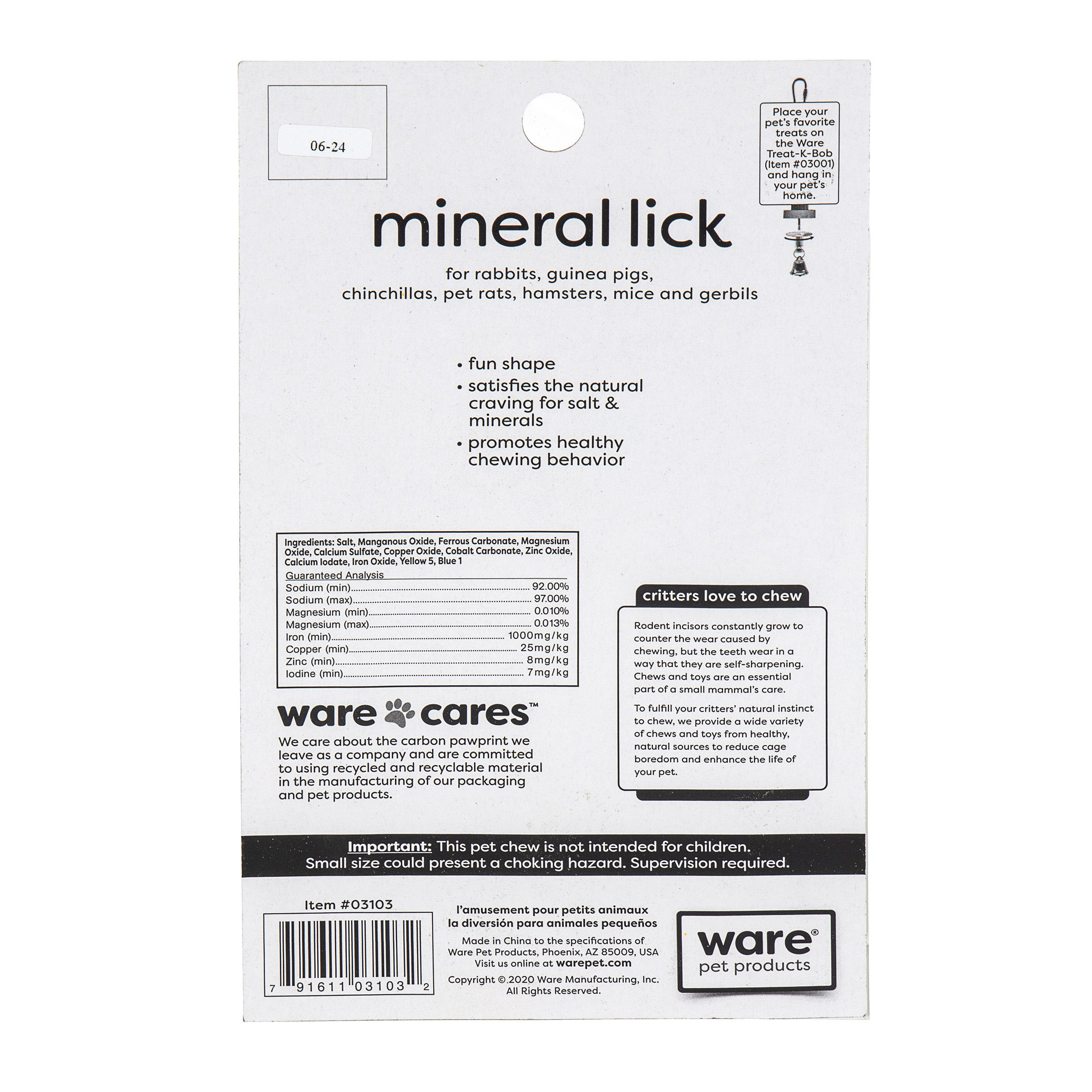 Our Salt and Mineral Chews are safe, natural and fun treats for small pets. They satisfy the natural craving for salt and supply essential minerals. Free holder included which fits any wire cage. Other shapes available.