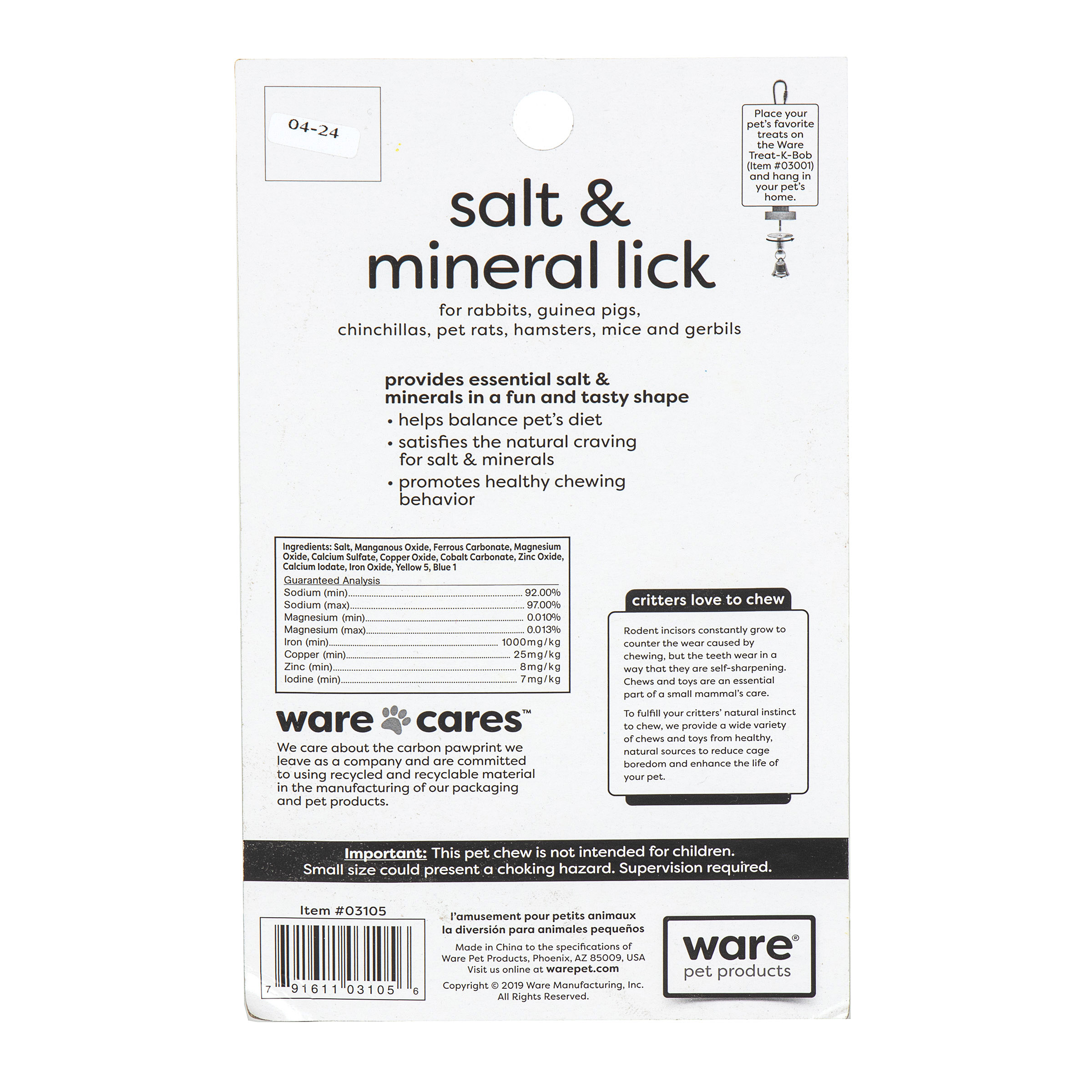 Our Salt and Mineral Chews are safe, natural and fun treats for small pets. They satisfy the natural craving for salt and supply essential minerals. Fits Treat-K-Bob or use as refill to Carrot Salt with Holder (03102) or Apple Mineral with holder (item 03103).