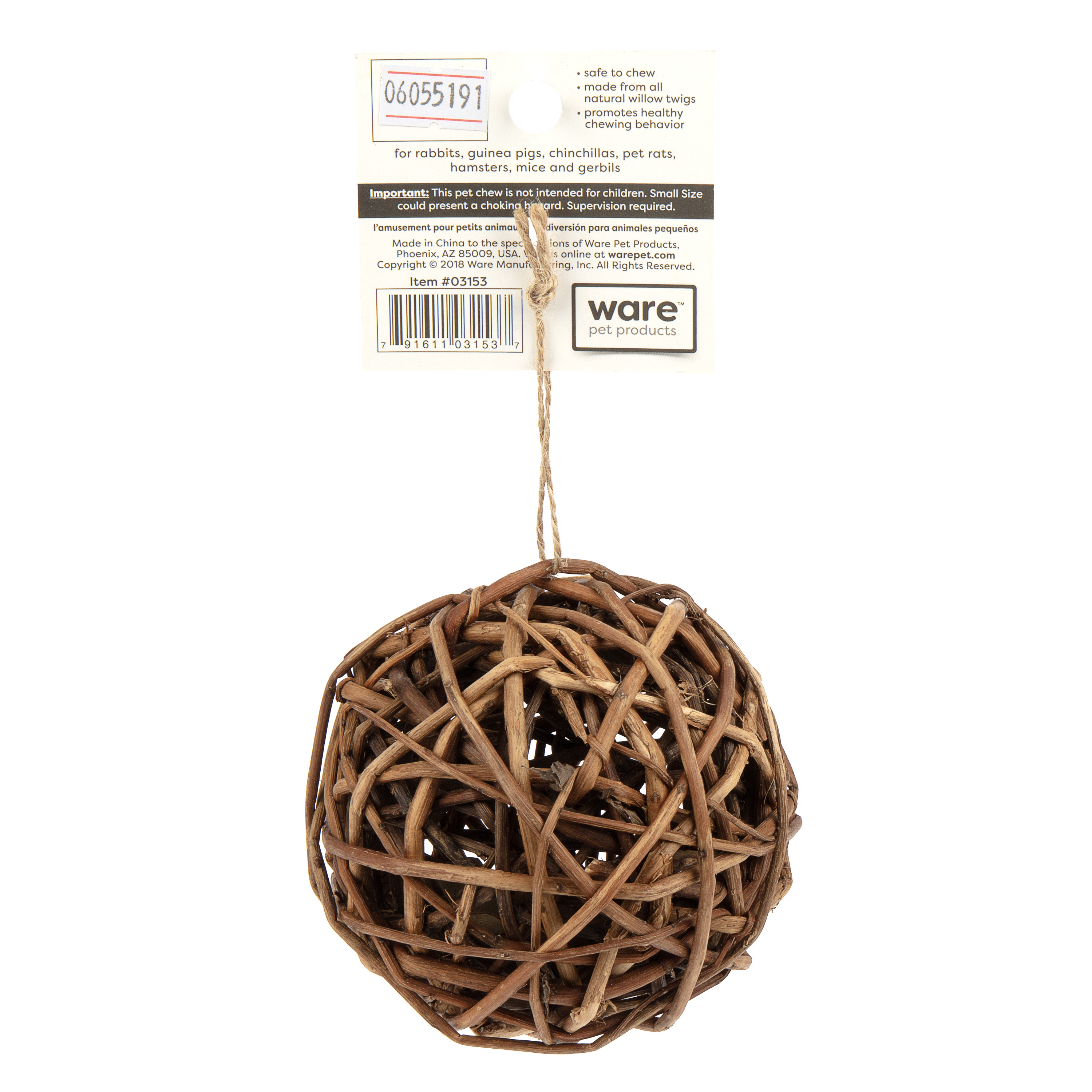 Willow Branch Ball adds a naturally fun flavor to playtime. All natural willow branch chew is perfect for tooth trimming and playtime for small pets.