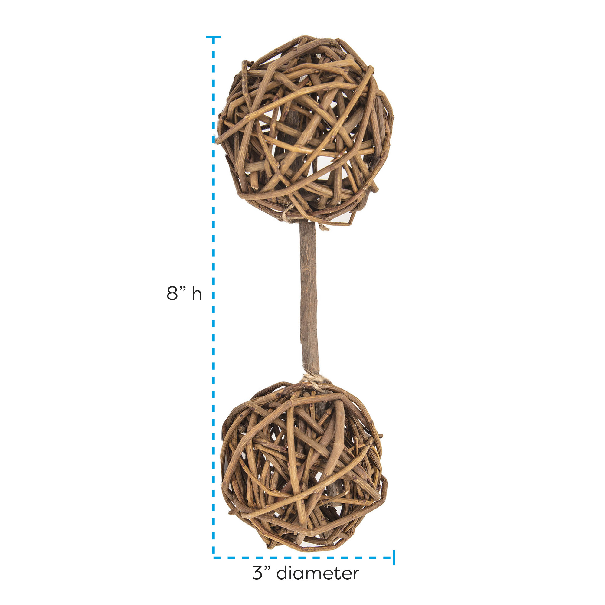 The Willow Barbell is made of all natural willow twigs and has a fun playtime bell inside. Pets will nibble, gnaw, toss and chase for hours of playtime fun and exercise. Great "work out" fun and made from the best wood chew material for small pets, available in two sizes.