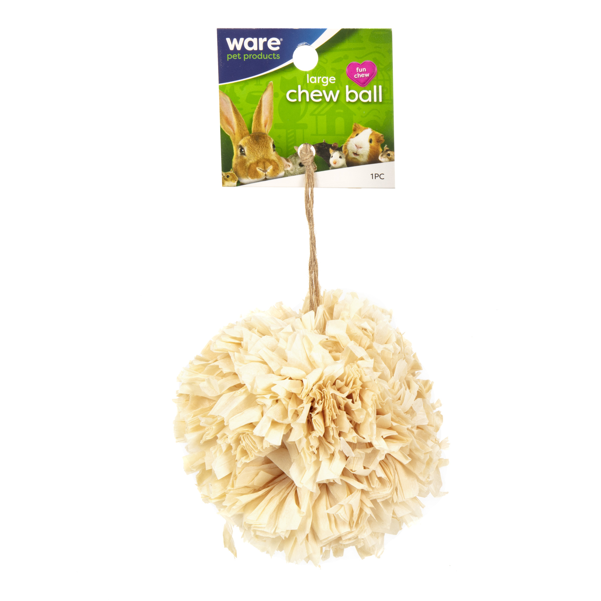 Chew Ball (Large 3 1/2") is a chew toy that provides safe and healthy play time for rabbits, guinea pigs, chinchillas and pet rats.