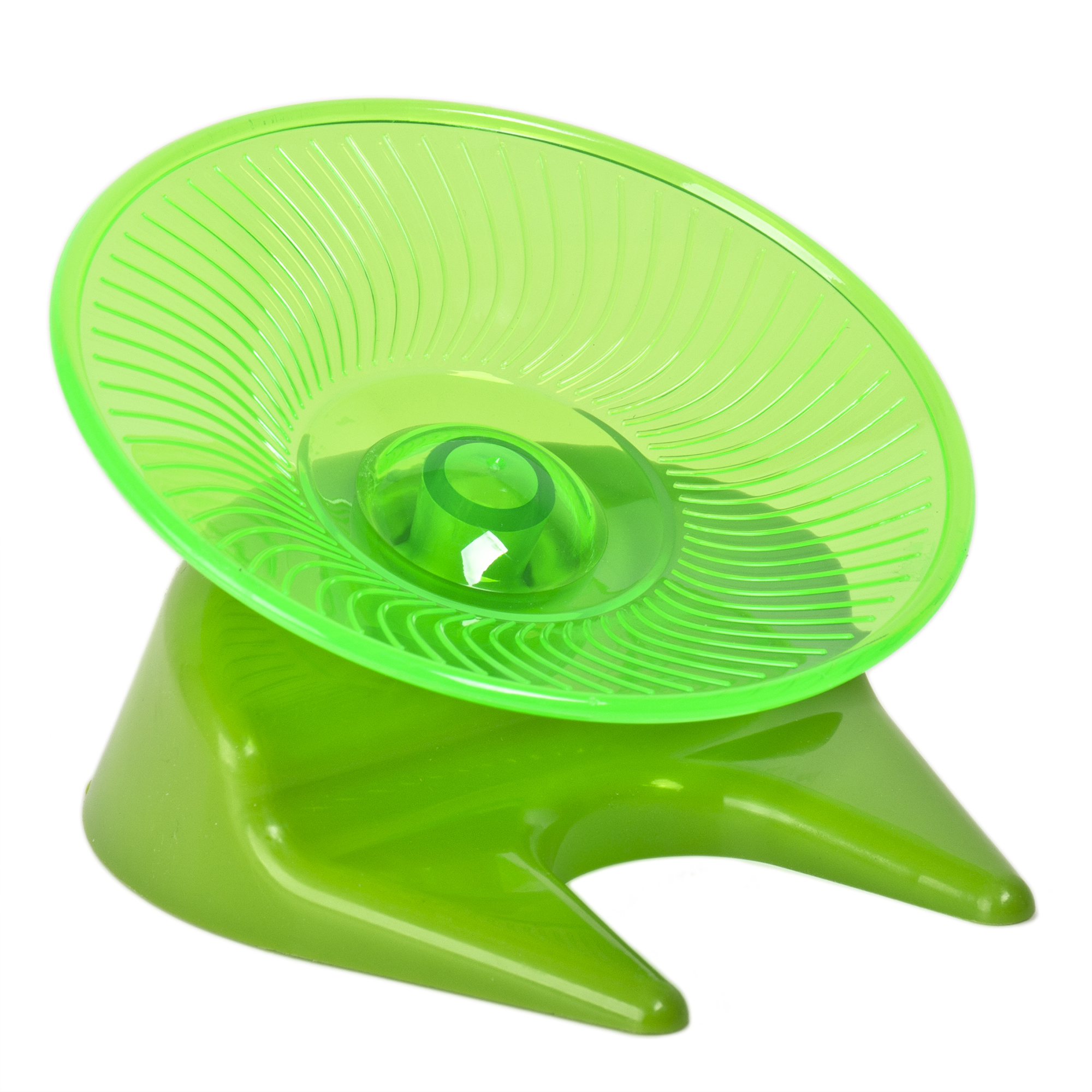 The one of a kind Flying Saucer is the safest and quietest exercise wheel available. The Flying Saucer has a unique quiet, smooth turning acetyl plastic hub. Small pets love the unique solid running surface and owners love the super silent spinner! Available sizes small, medium or large.