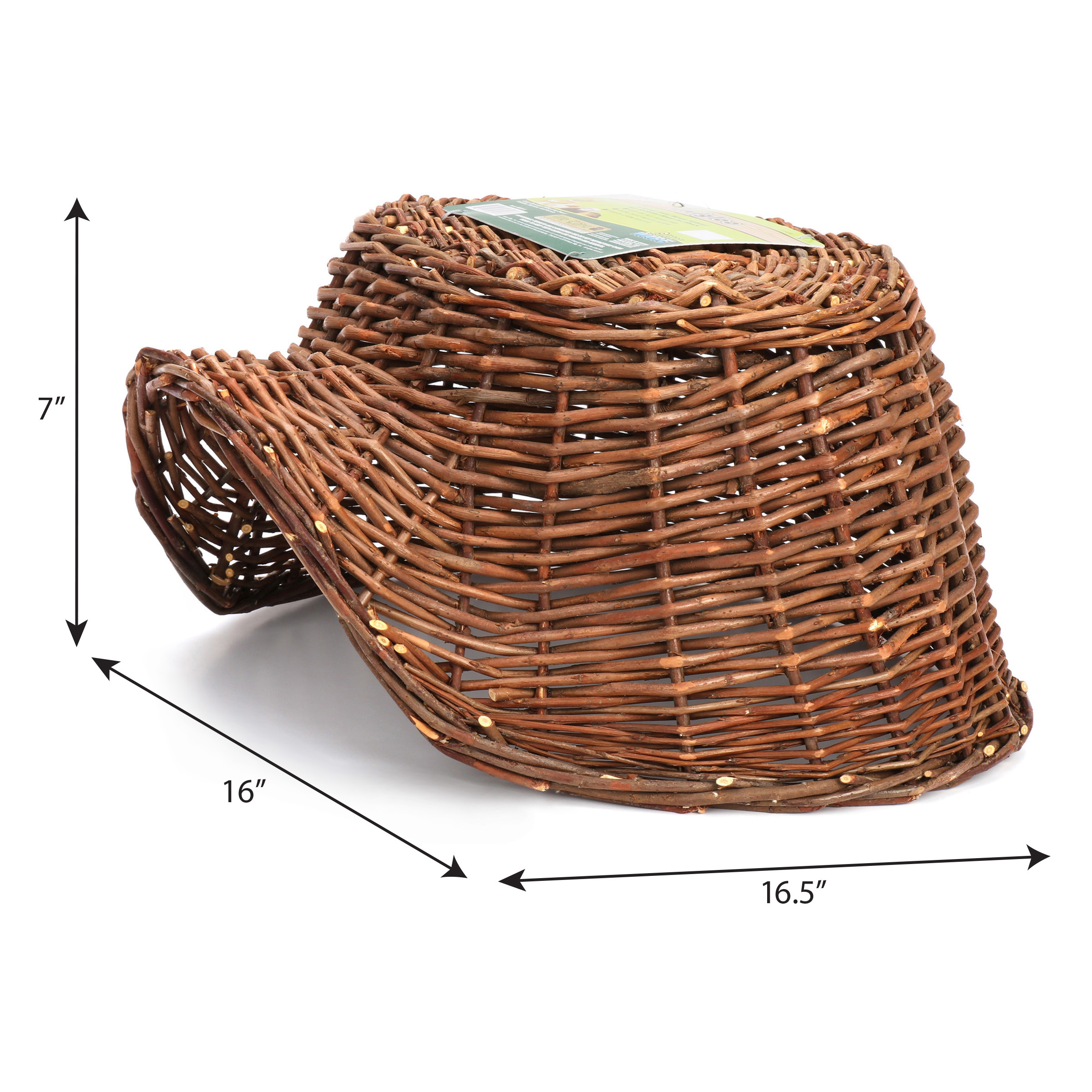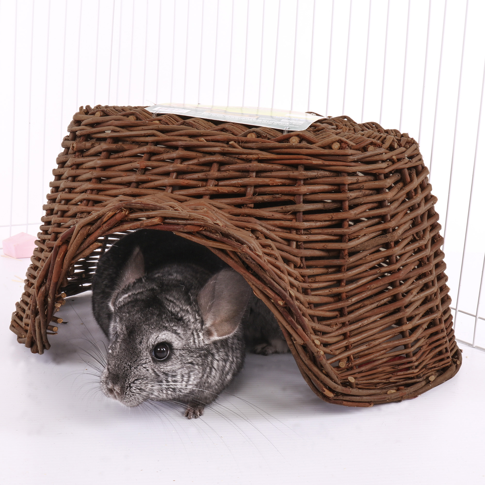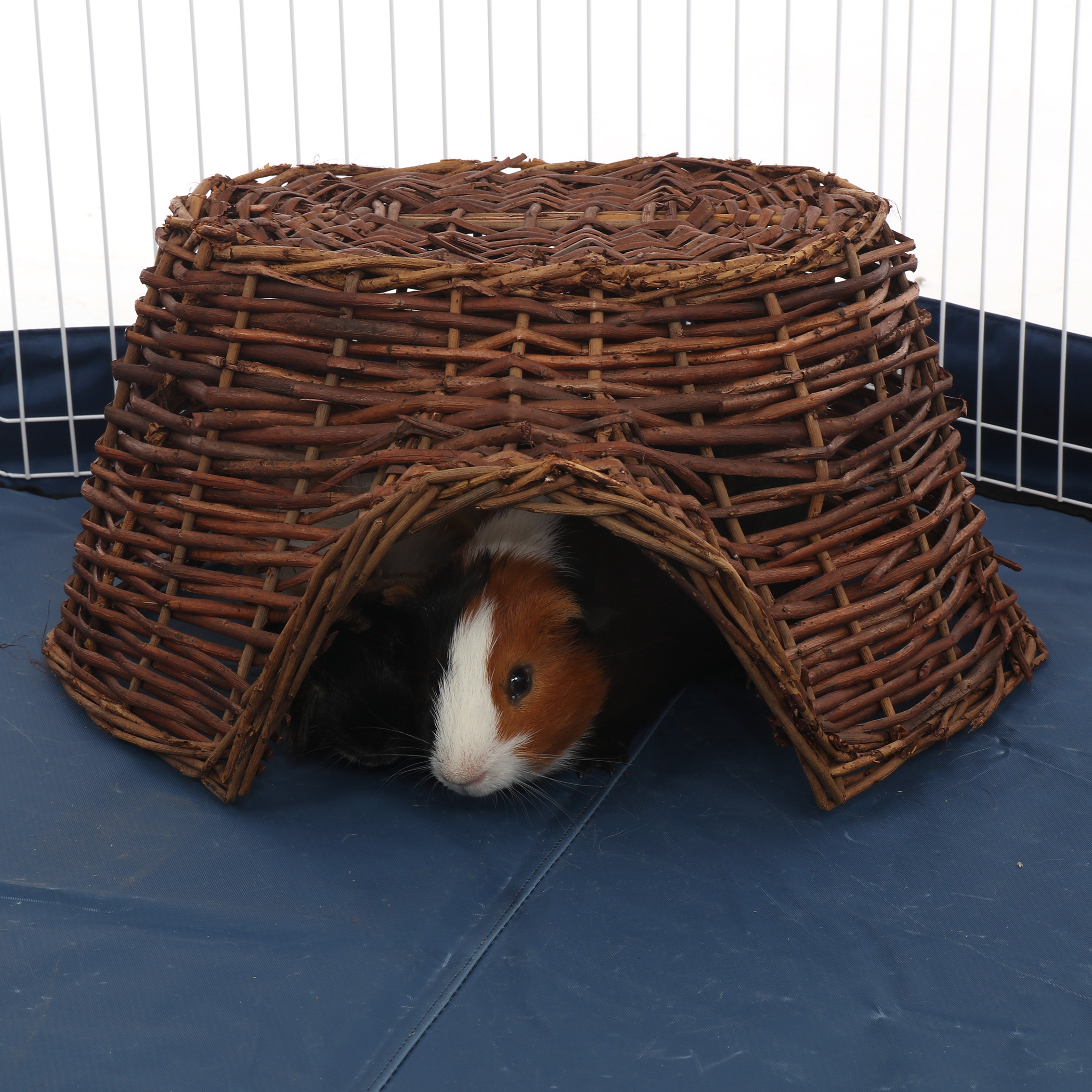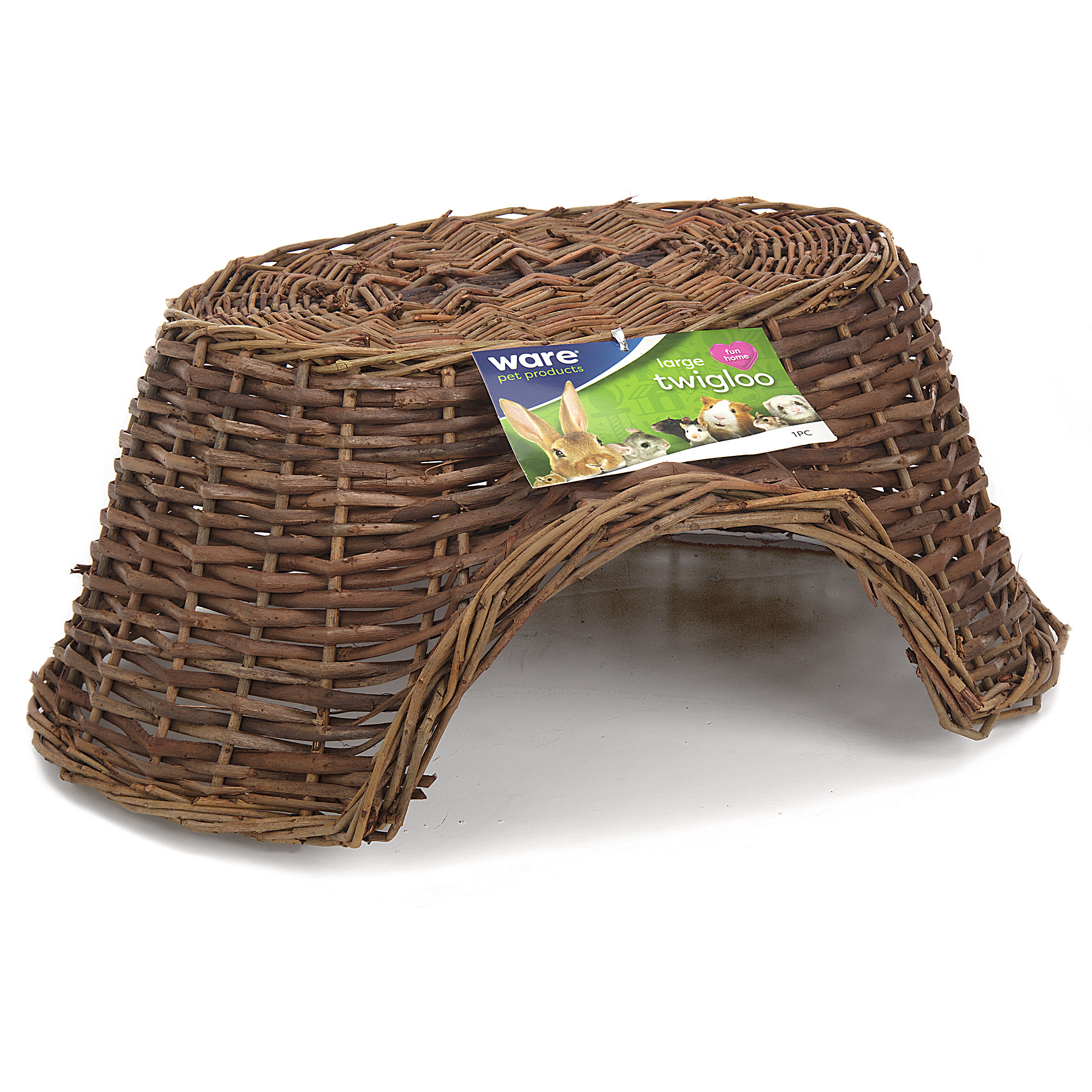 All new edible Twigloo. Made from a renewable source, these hand woven willow hideouts provide the perfect spot for napping and nibbling. It's a chew source for critters that gnaw. Ideal for rabbits and other rodents.