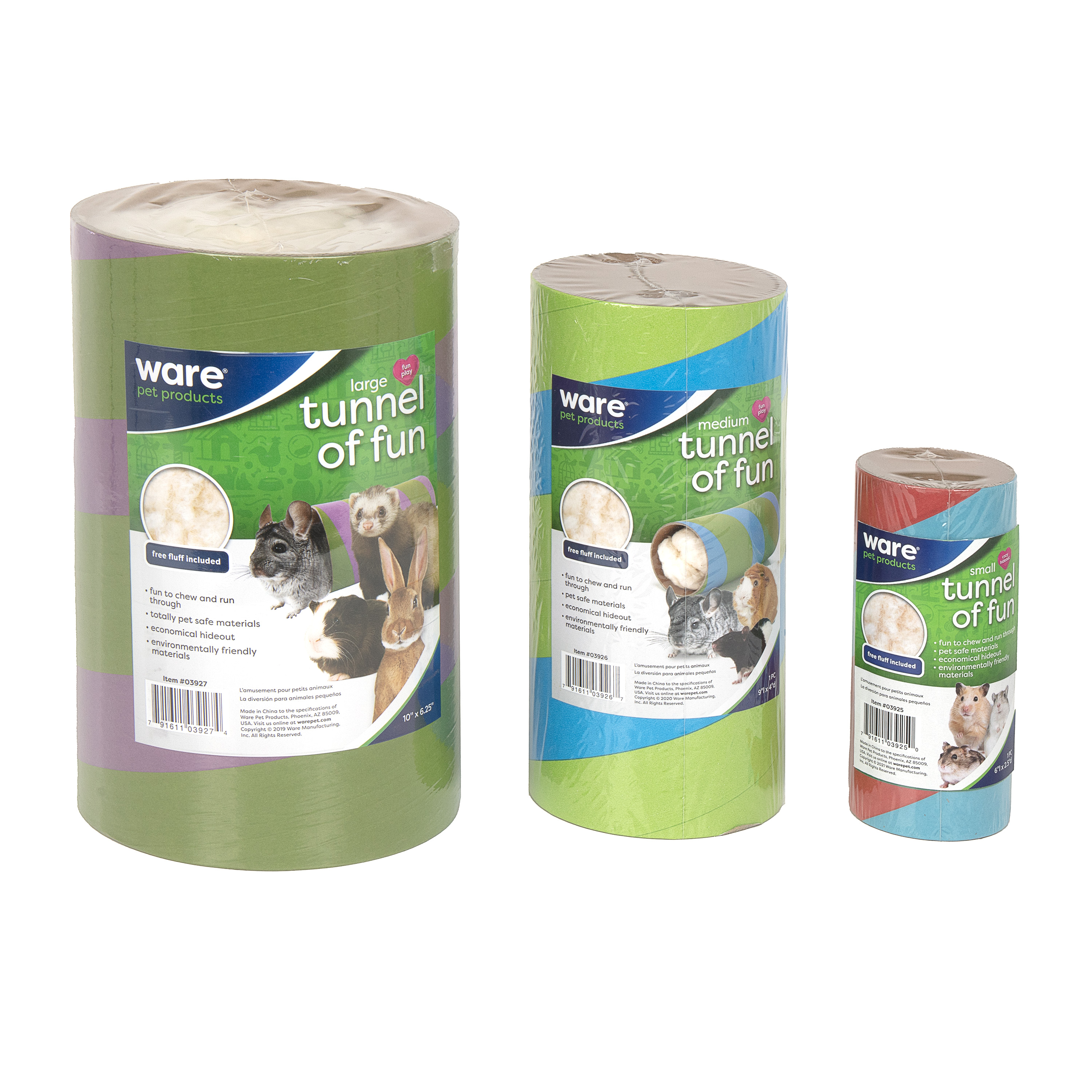 Tunnels of Fun (Med) are safe cardboard tubes that provide exercise and a hideaway for your pet. Available in 3 sizes, each tunnel contains a FREE sample of nesting fluff inside.
