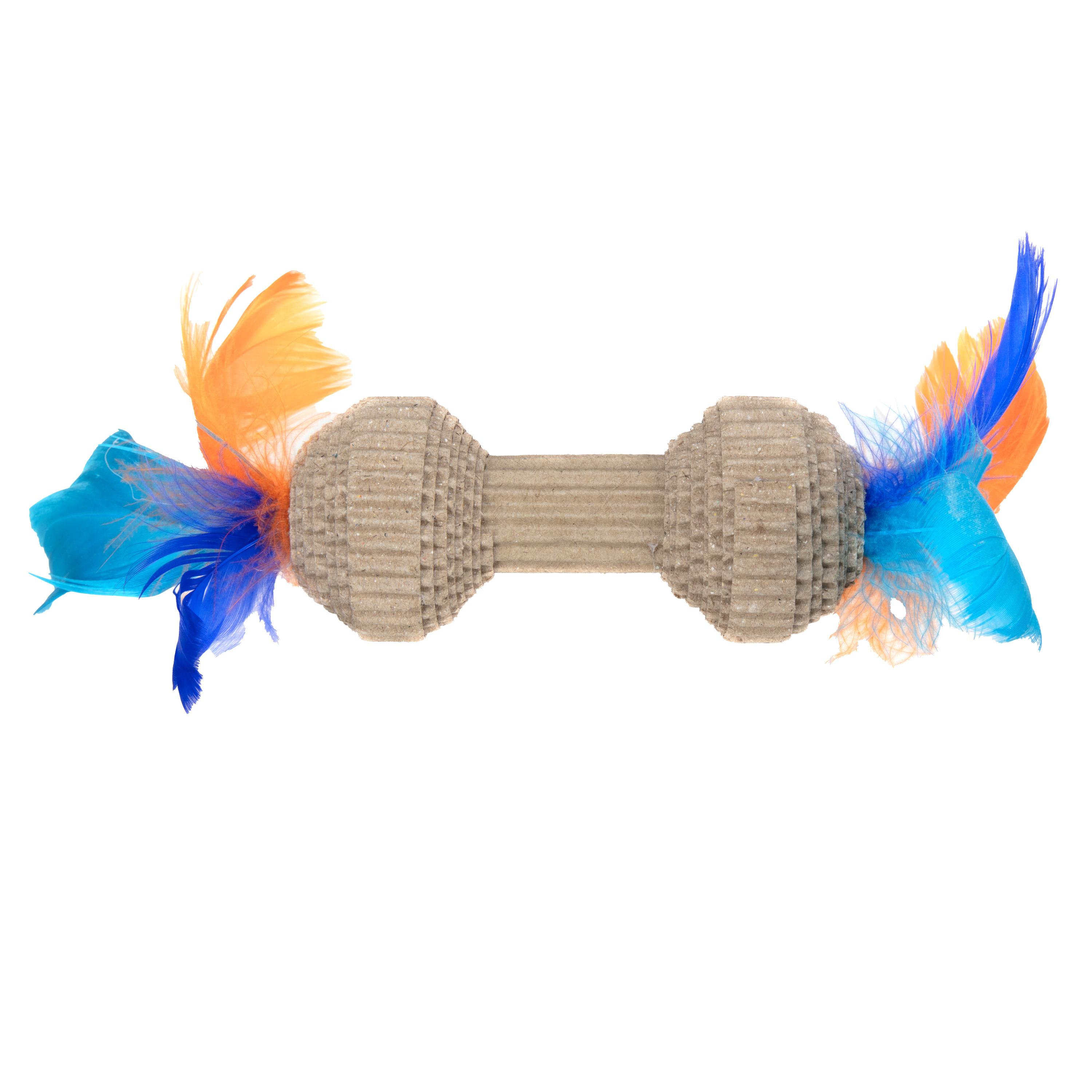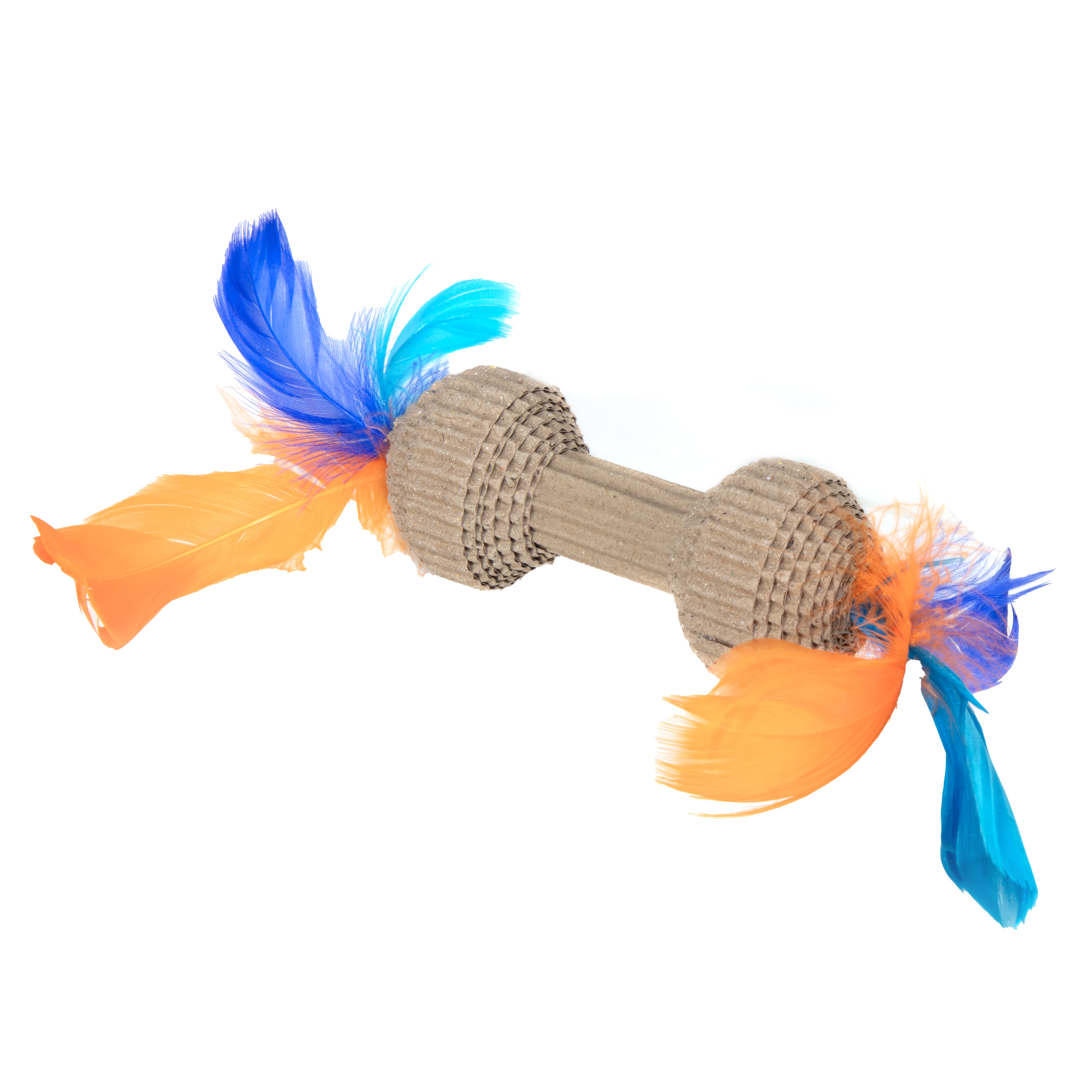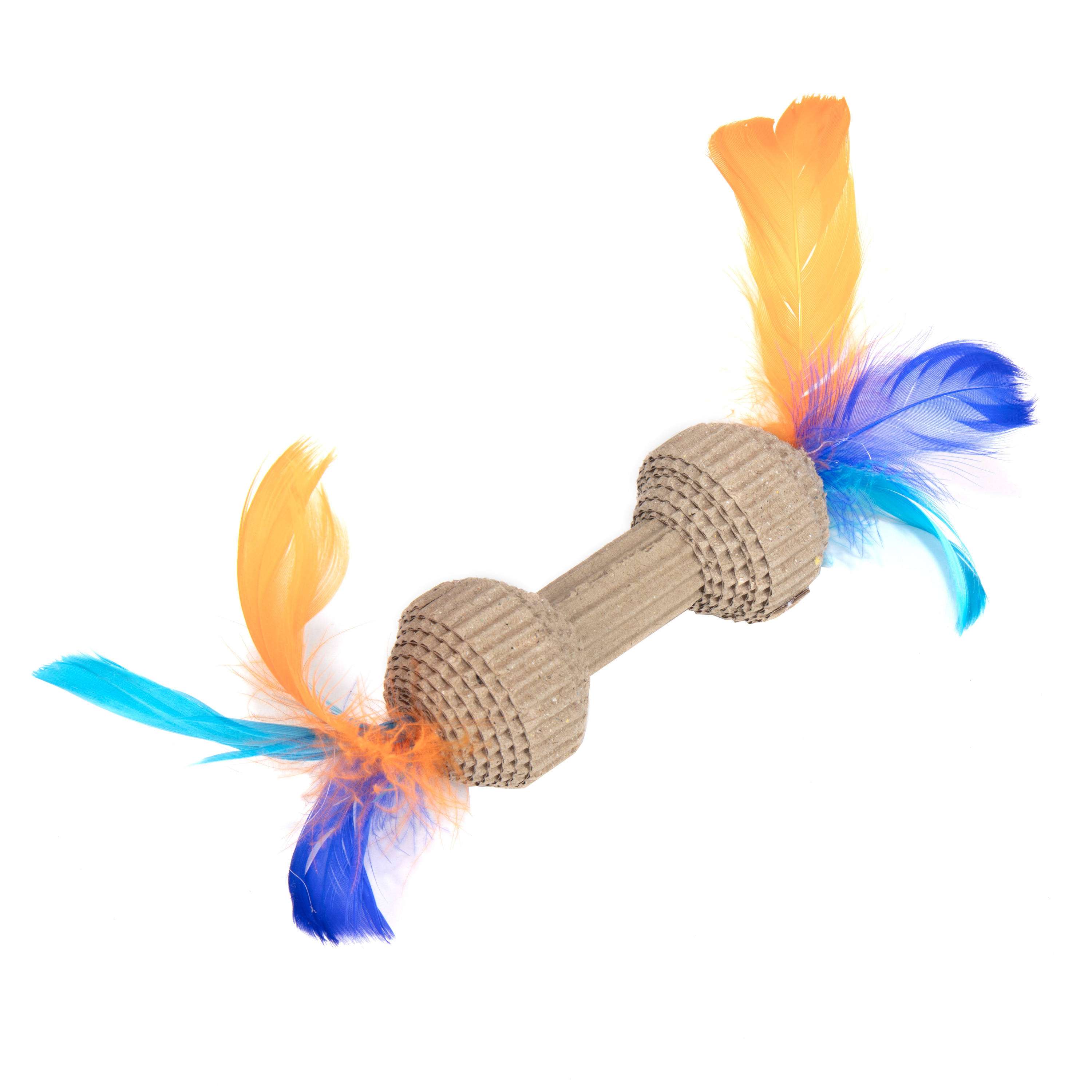Made of corrugated paper that encourages activity and healthy exercise. Perfect size for pouncing playtime The cute shape design and colorful feathers that will appeal to your pet to play with it.