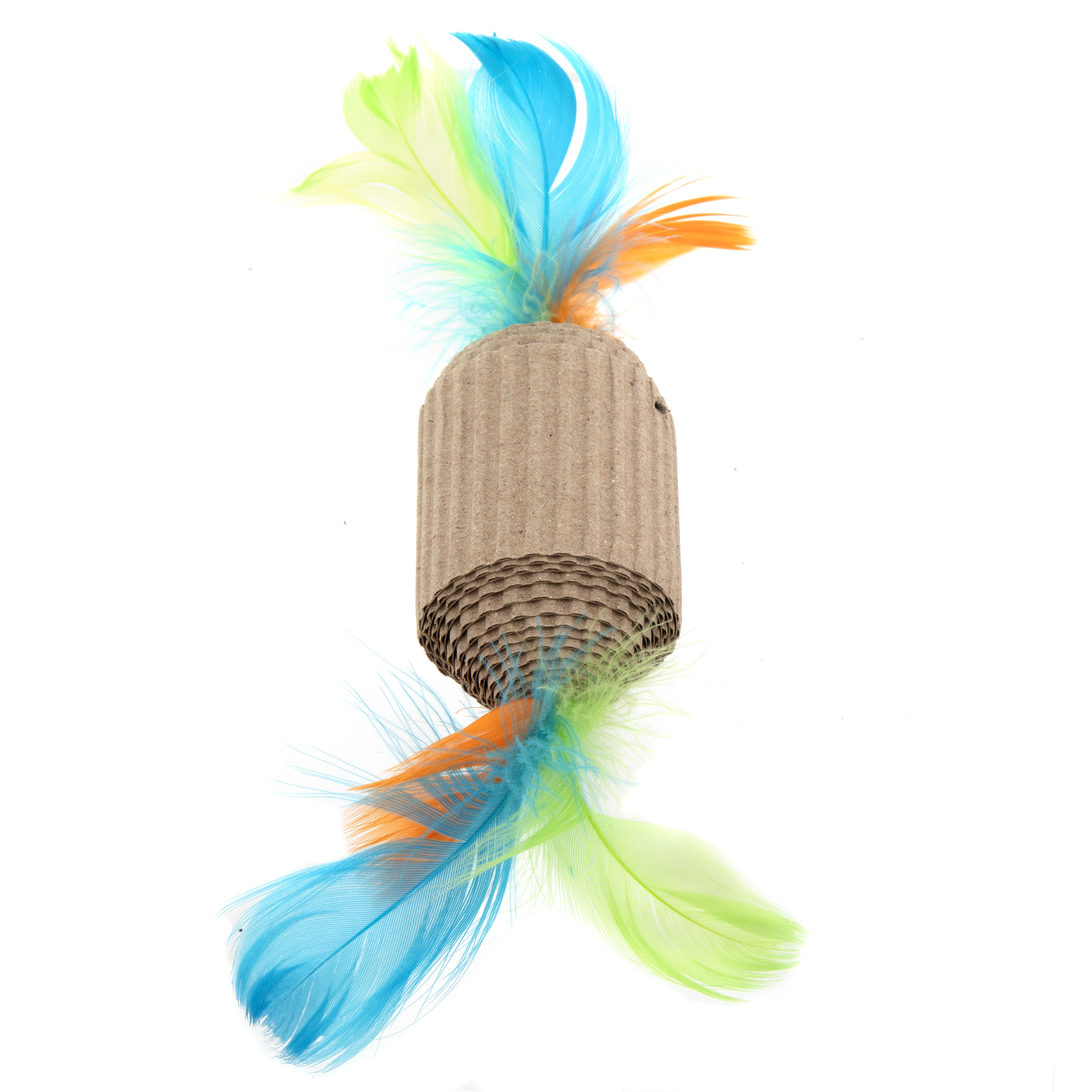 Made of corrugated paper that encourages activity and healthy exercise. Perfect size for pouncing playtime. The cute shape design and colorful feathers will appeal to your pet.