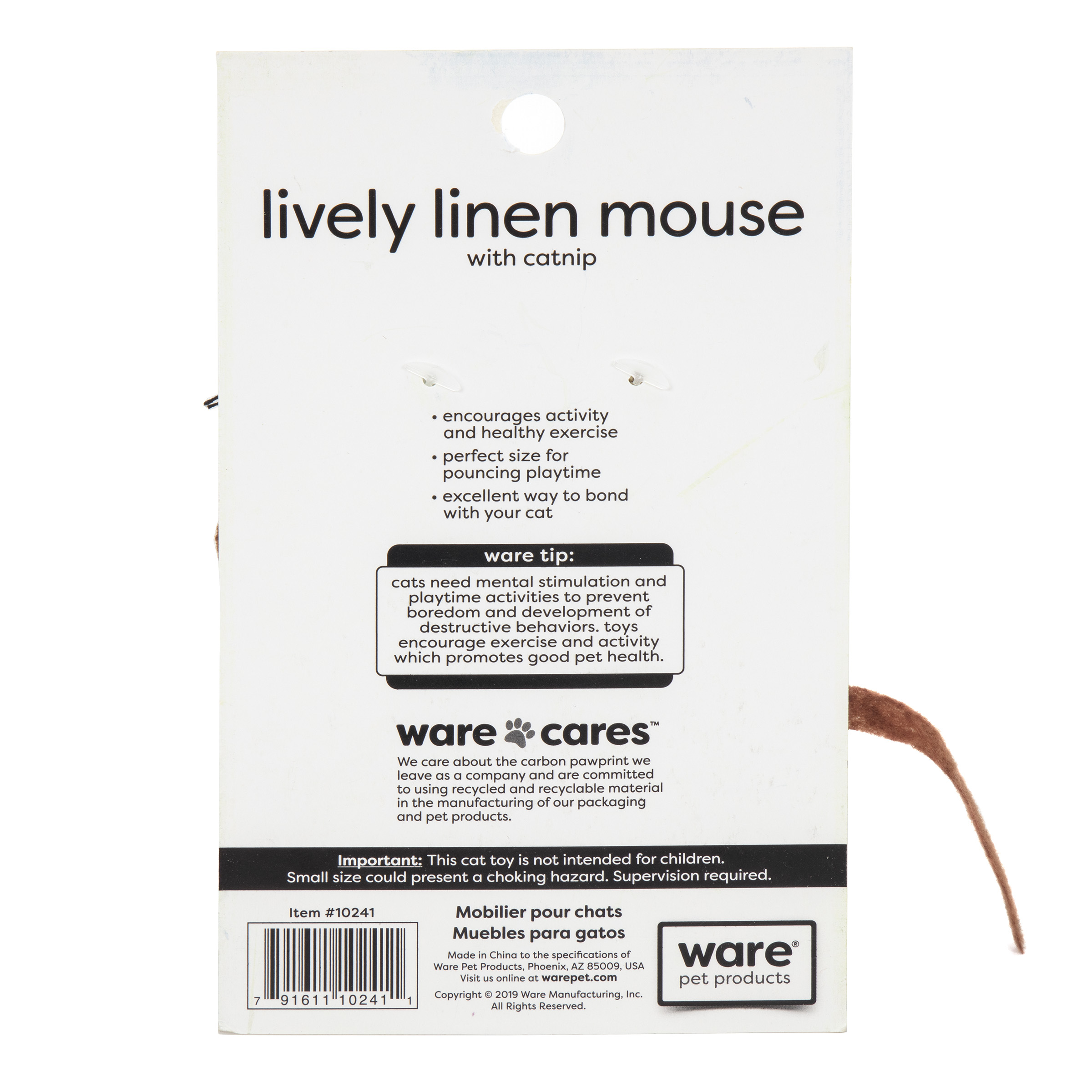 Fashionable fabric coloring with catnip inside. Encourages activity and healthy exercise. Perfect size for pouncing playtime. Excellent way to bond with your cat.