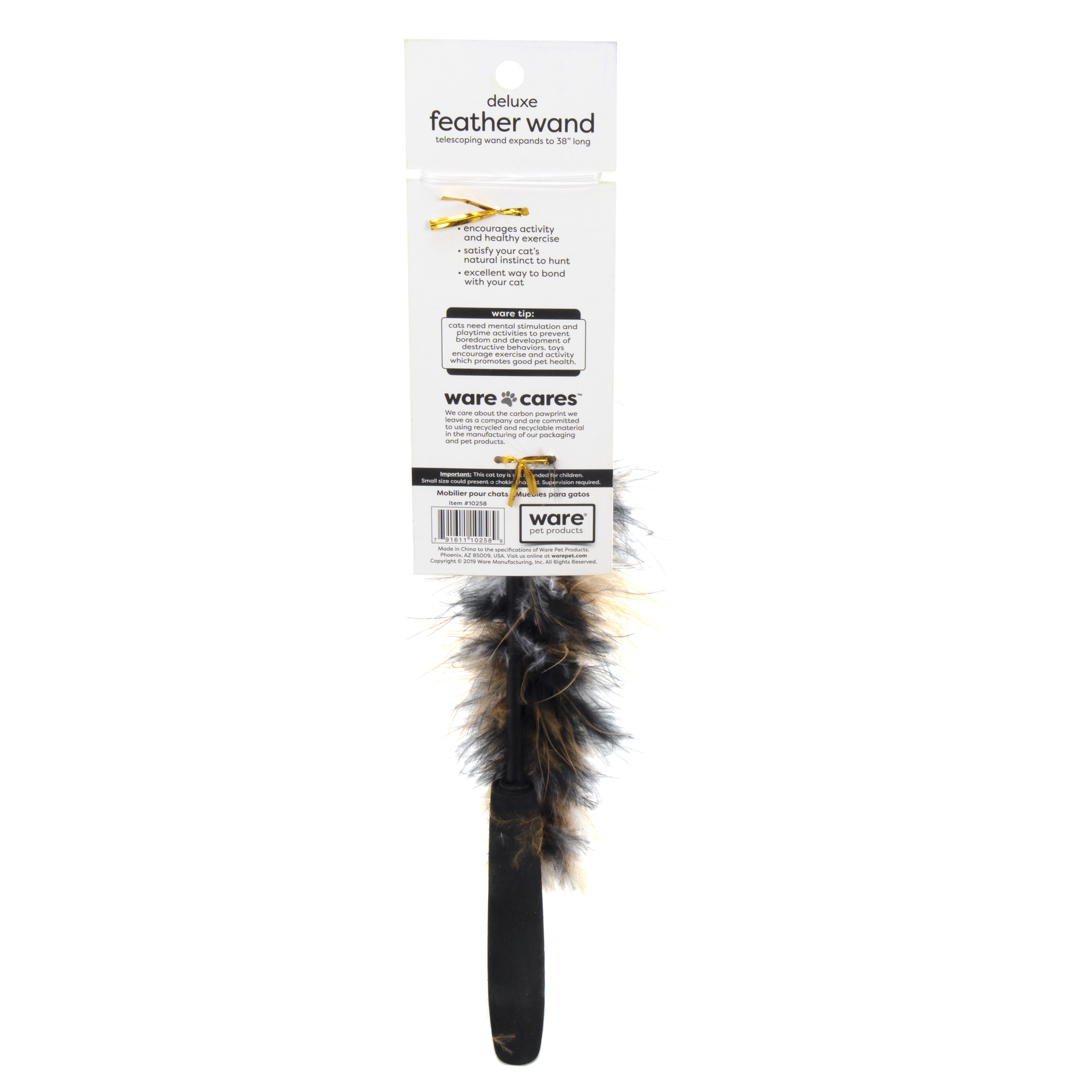 Telescoping wand expands to 38" long. Helps entice your cat into playful activity. Excellent way to bond with your feline.