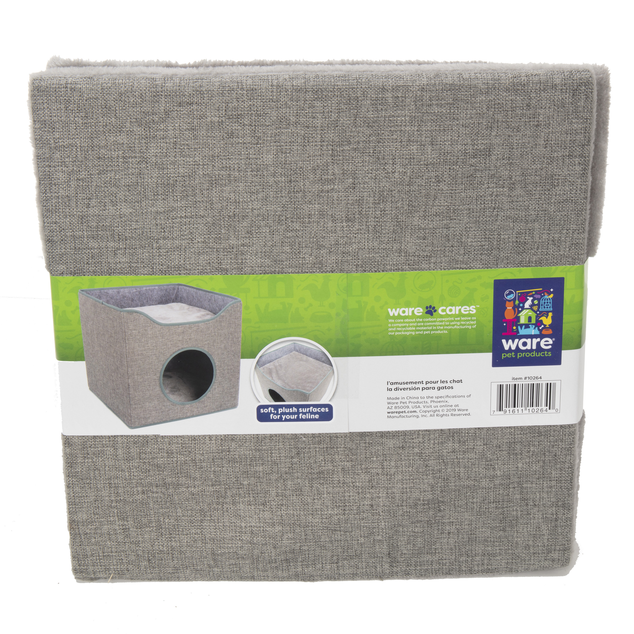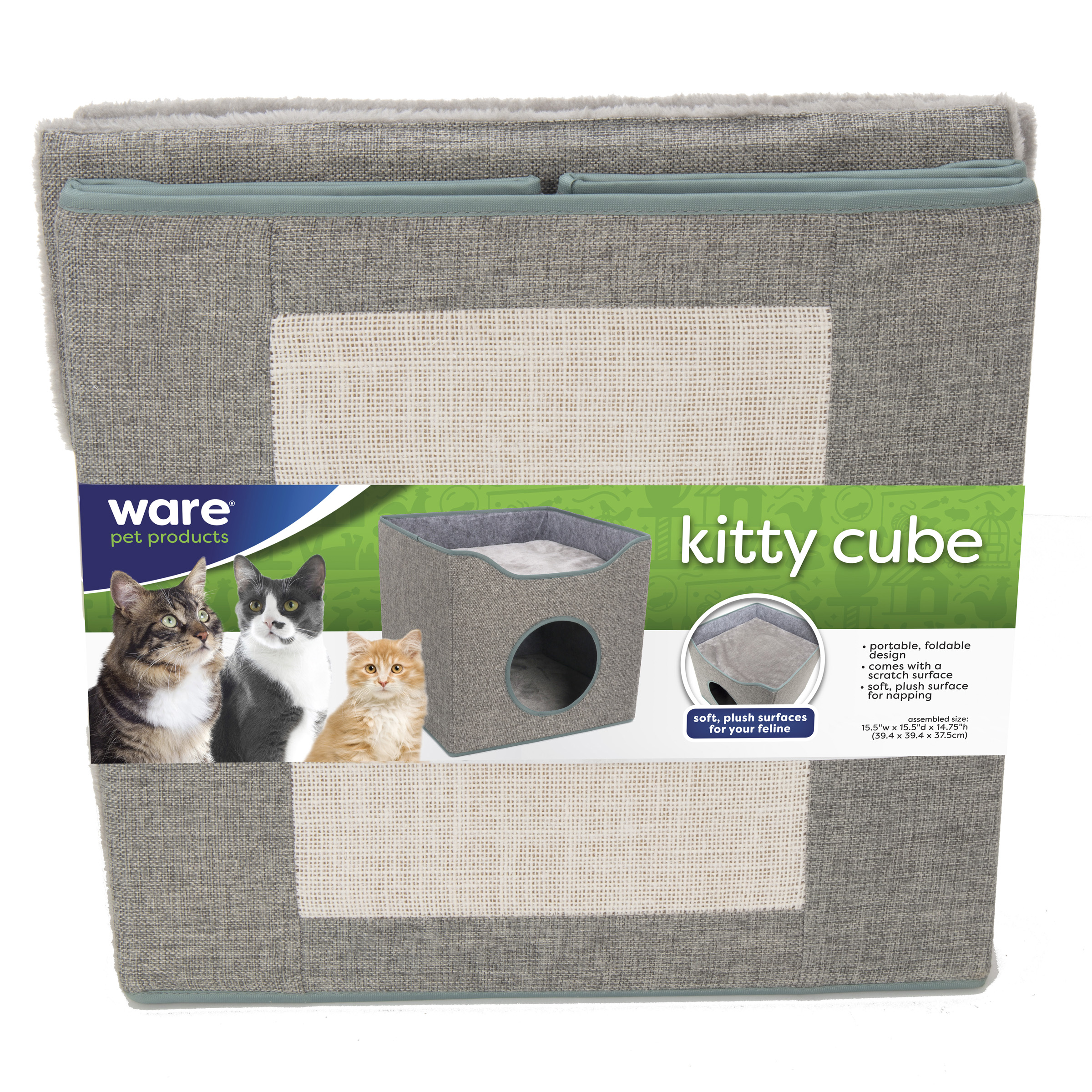The Ware Kitty Cube is an enclosed private hideaway for your feline friend. It features two levels of lounging with removable plush pads and a sisal scratching pad to help sharpen their claws
