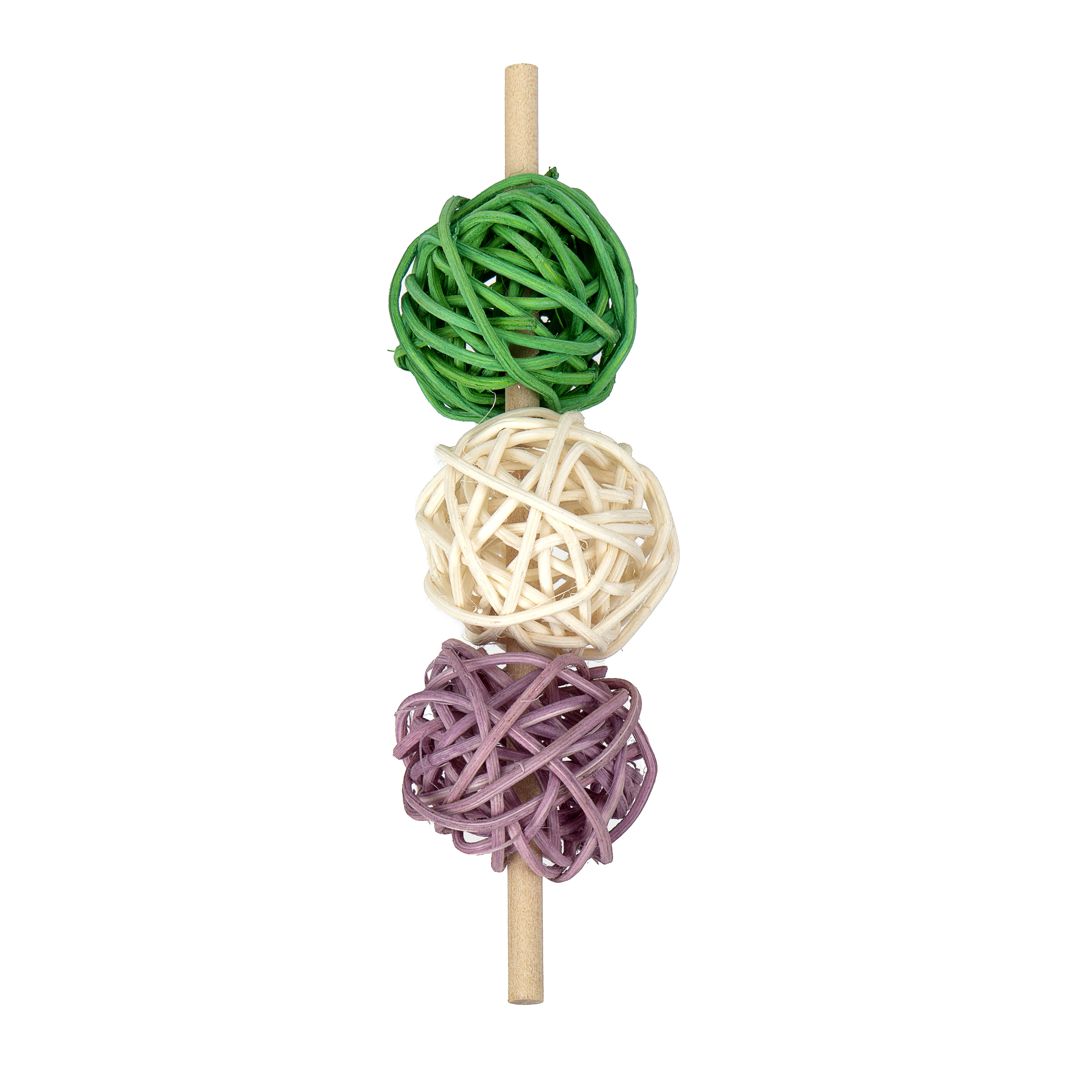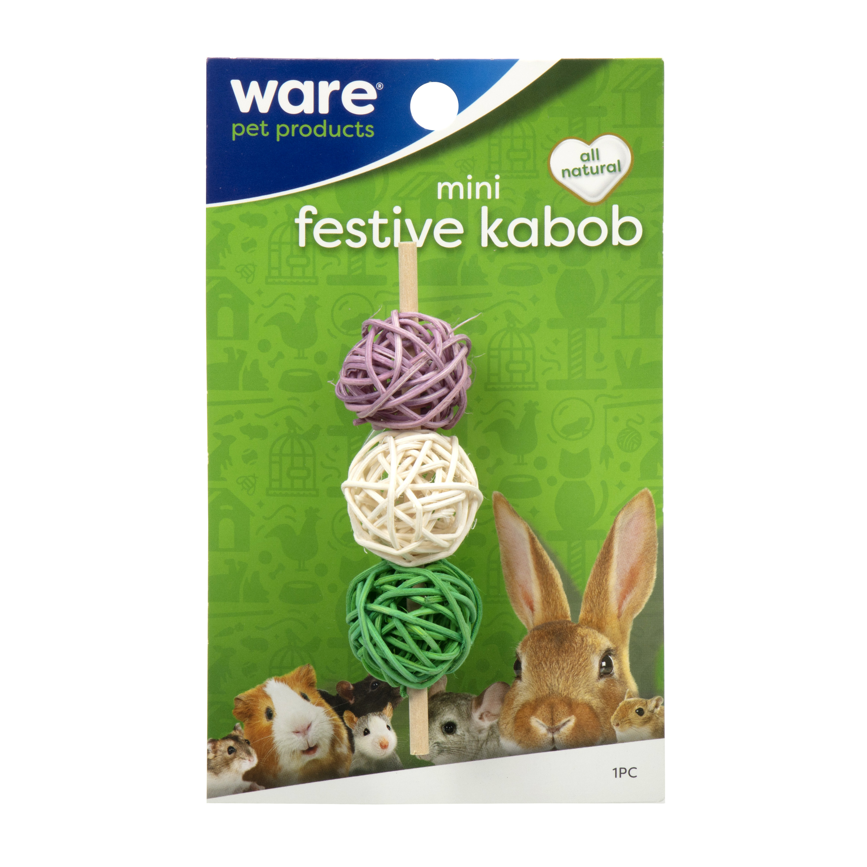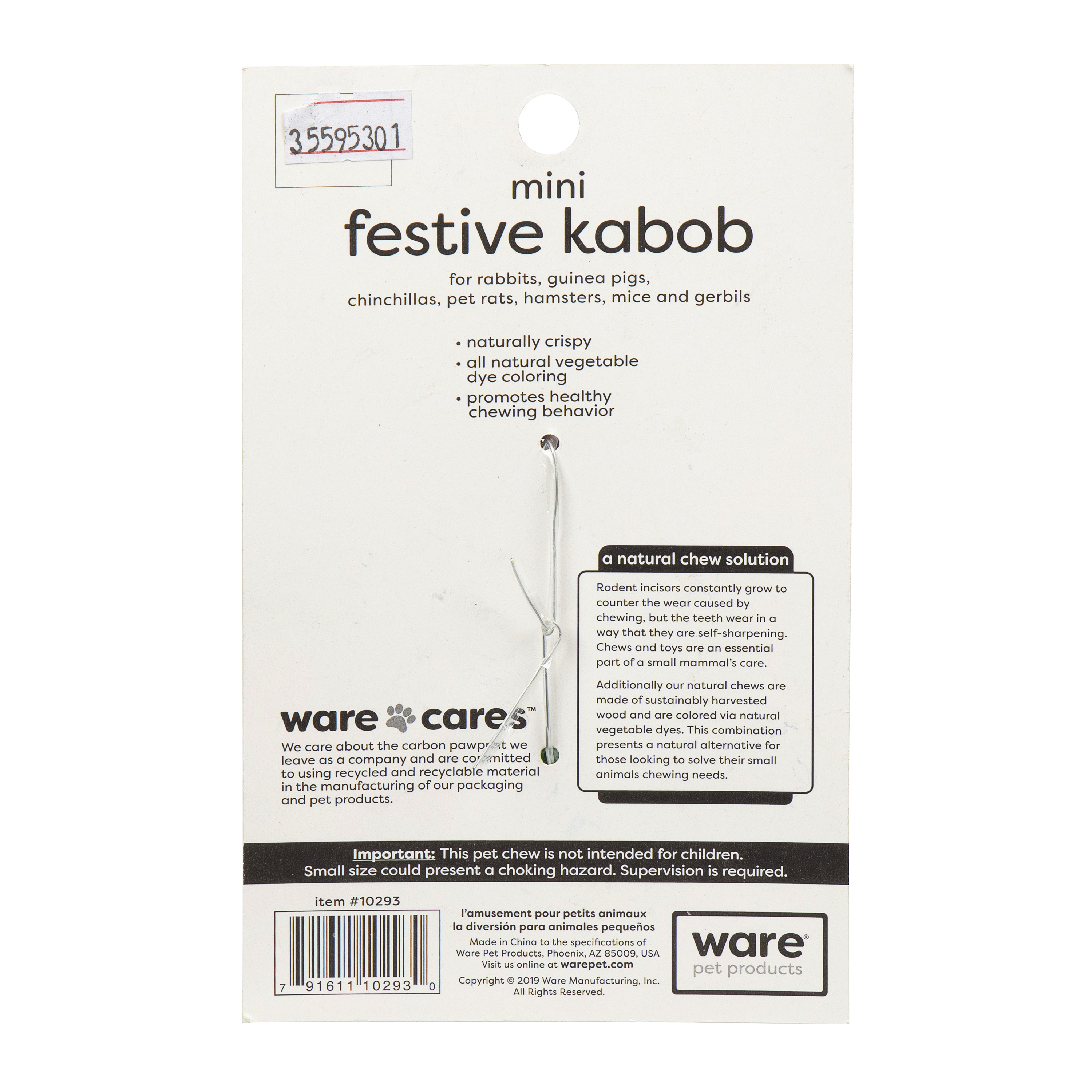 All natural treat made with wood and all natural dye coloring is safe for critters to chew. Comes in a fun kabob shape that is sure to entertain.