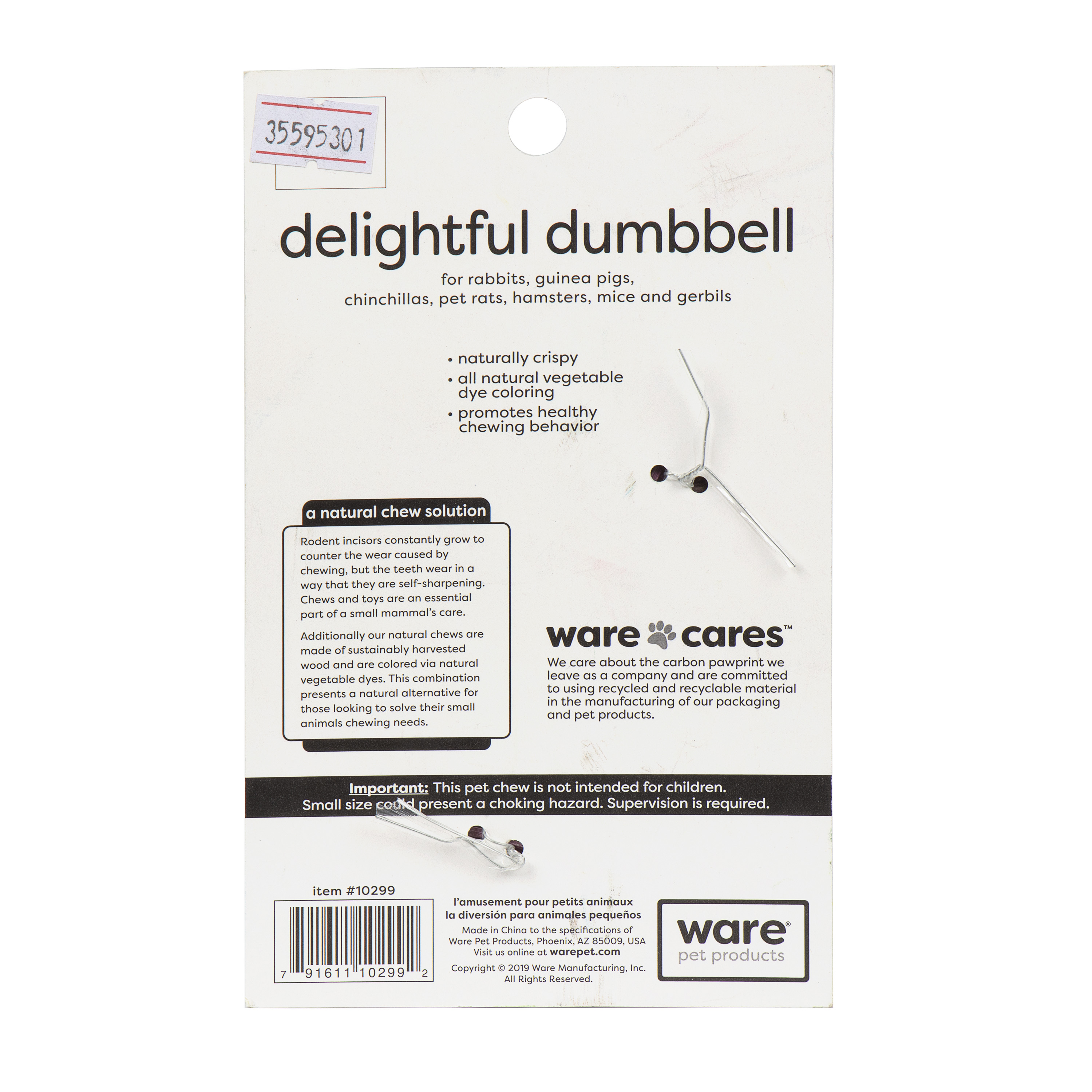 Natural wood construction that comes in a fun shape. All natural vegetable dye coloring is safe to consume. Crunchy textures are irresistible to small animals. Helps keep teeth clean and trimmed.