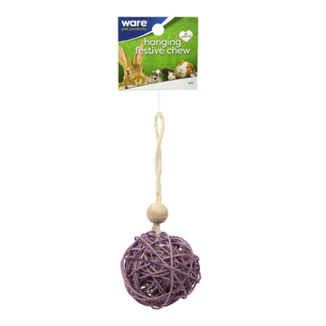 The Hanging Festive Chew is made with all natural materials and safe vegetable dye coloring. Helps to promote healthy chewing behaviors and provides a playtime element to fight cage boredom.