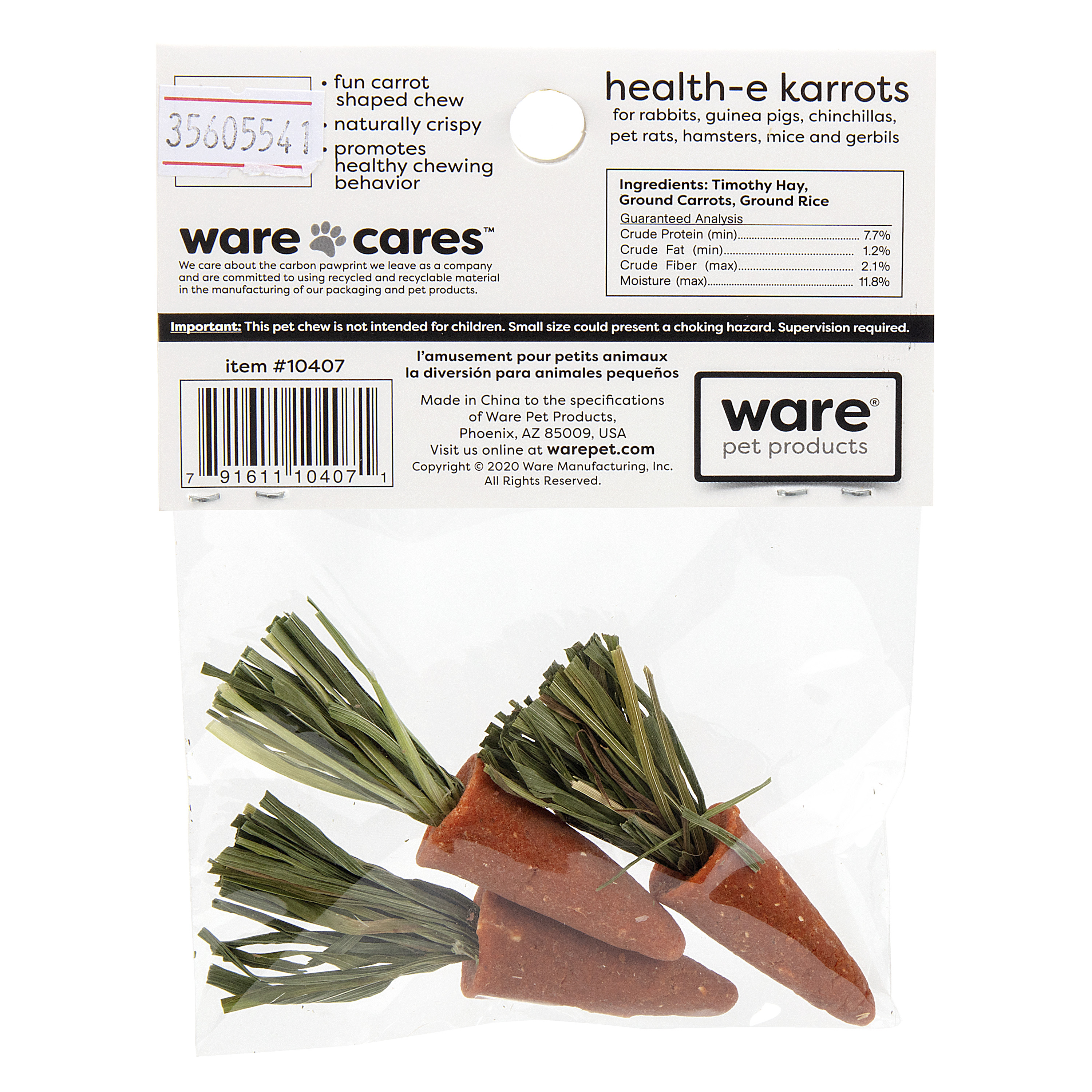 - Made with ground carrots and timothy hay