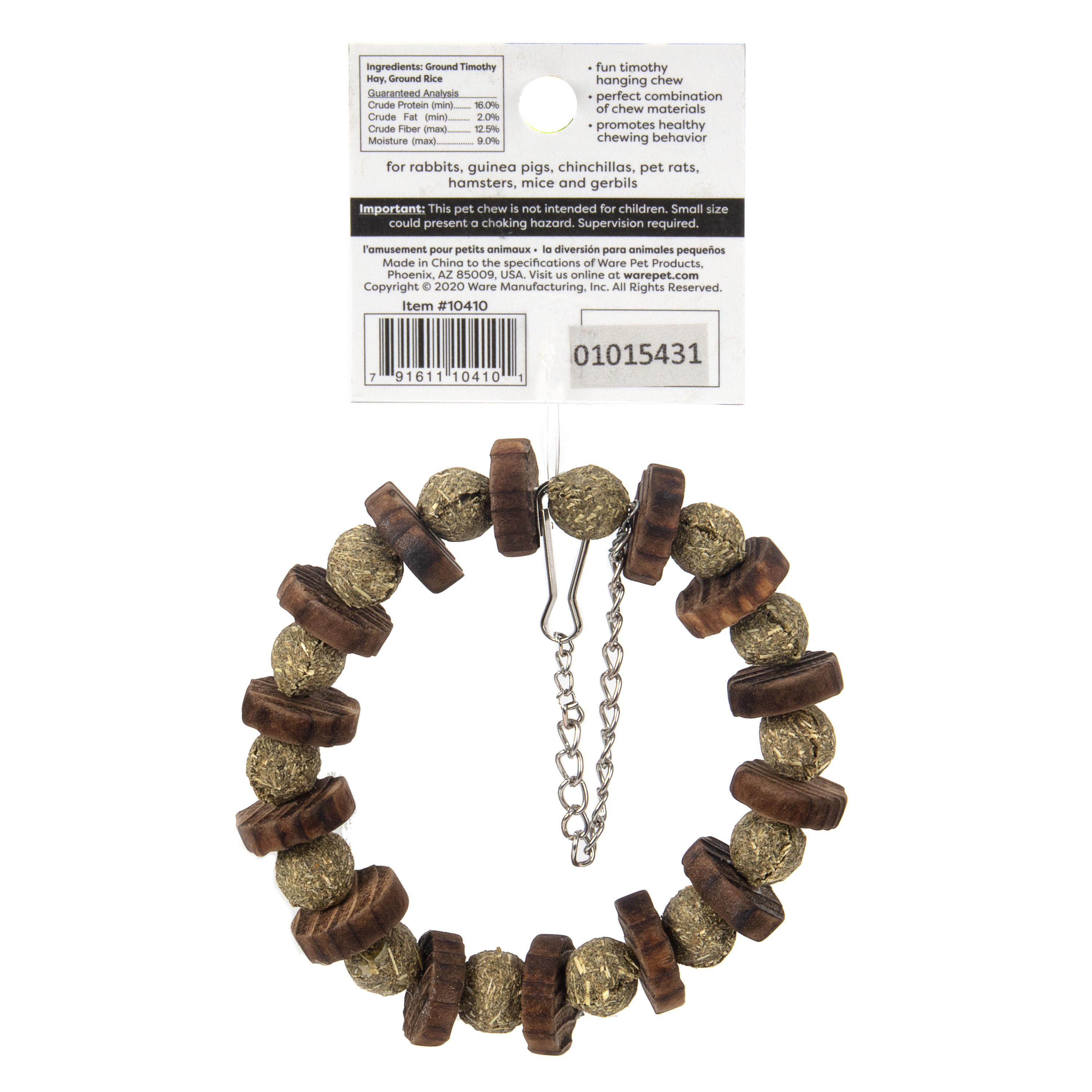 The Health-E Wreath is a safe, fun chew for small animals. Chews keep teeth trimmed and provide a fun activity that relieves cage boredom. Easily hangs anywhere in cage