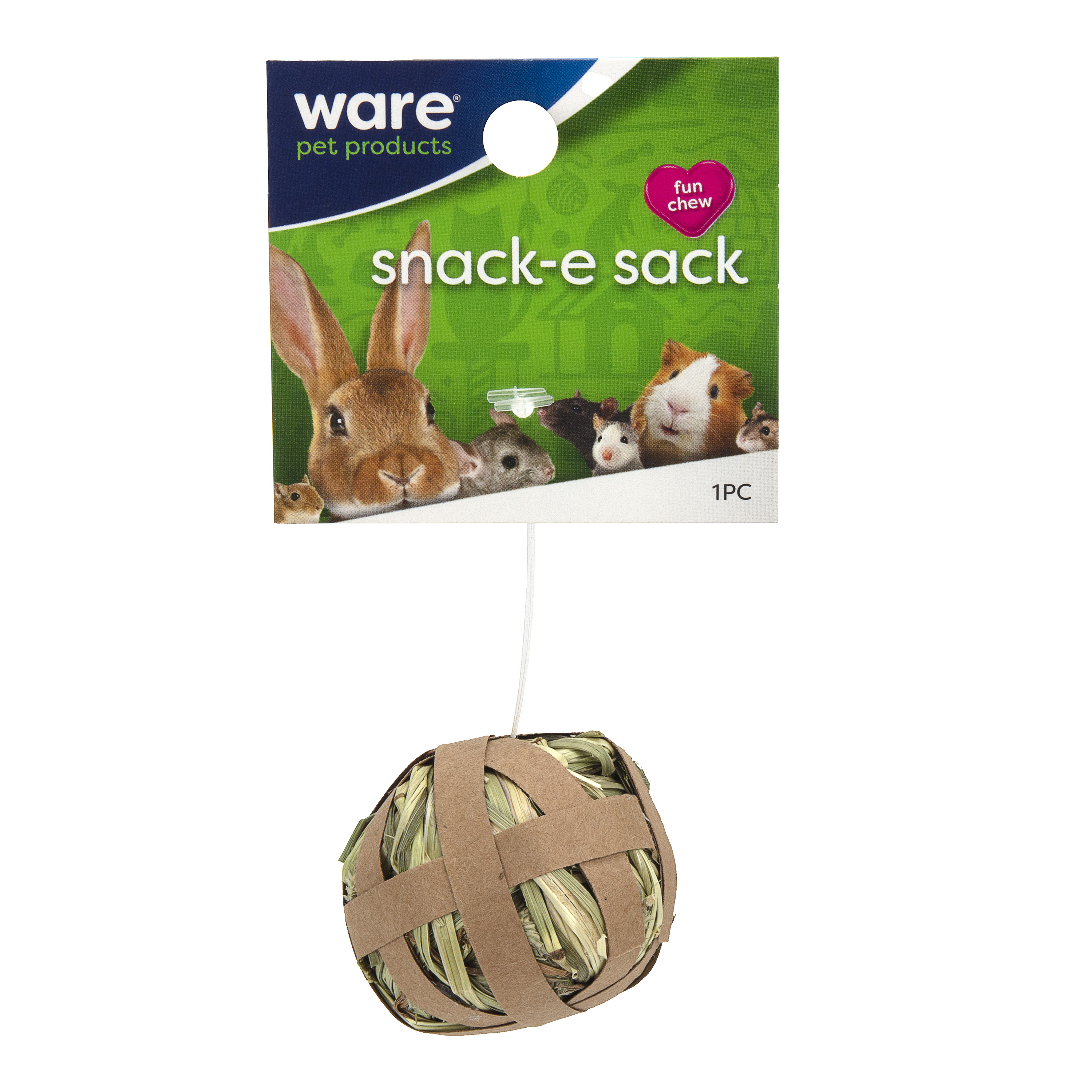 The Snack-e Sack is a safe, fun chew for small animals. Chews keep teeth trimmed and provide a fun activity that relieves cage boredom. Supervision is recommended.
