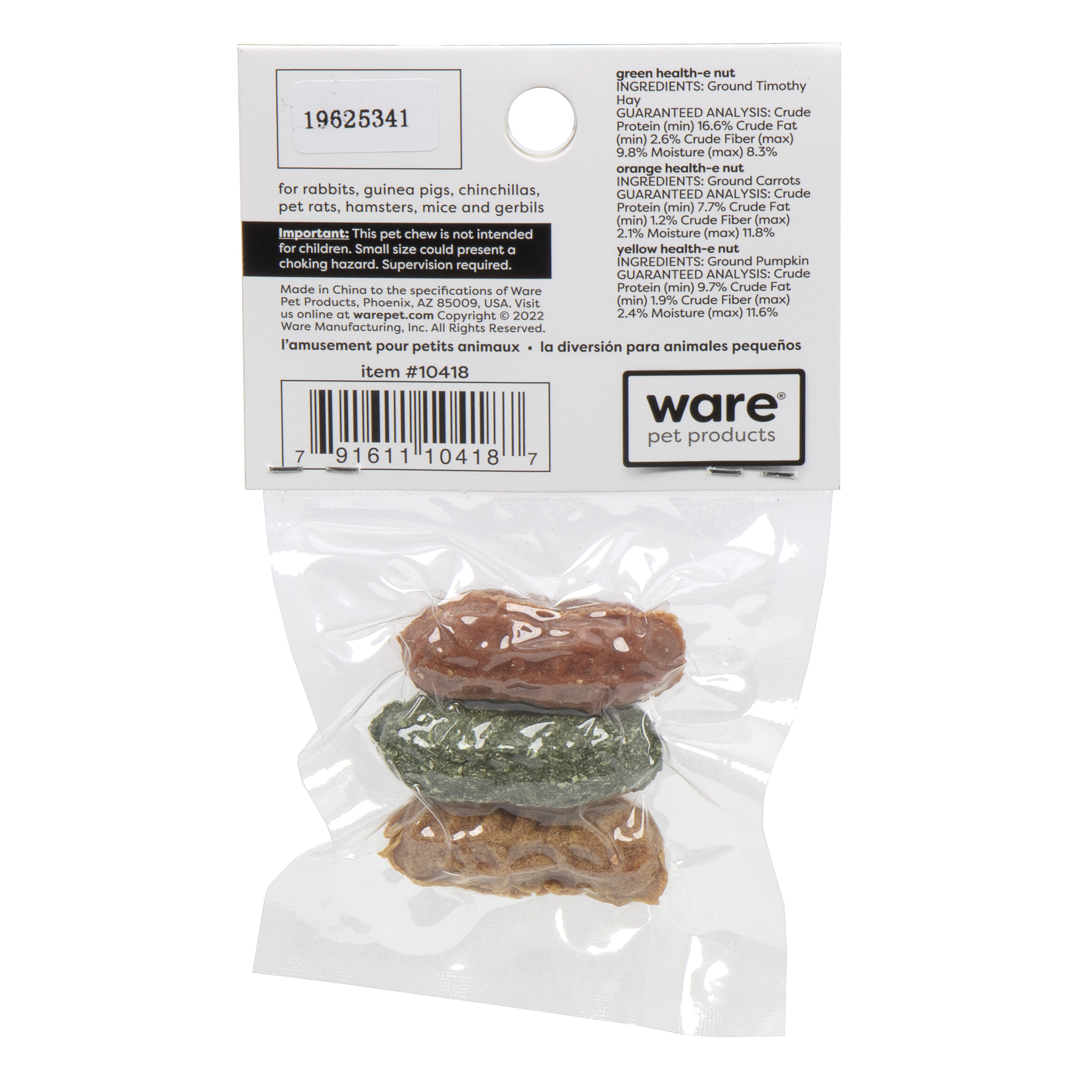 The appealing shape and design provide a healthy outlet for small animals. A variety of tantalizing textures are ideal for the instinctual habit to chew. textures are too tempting to resist. Helps keep teeth clean and trimmed.