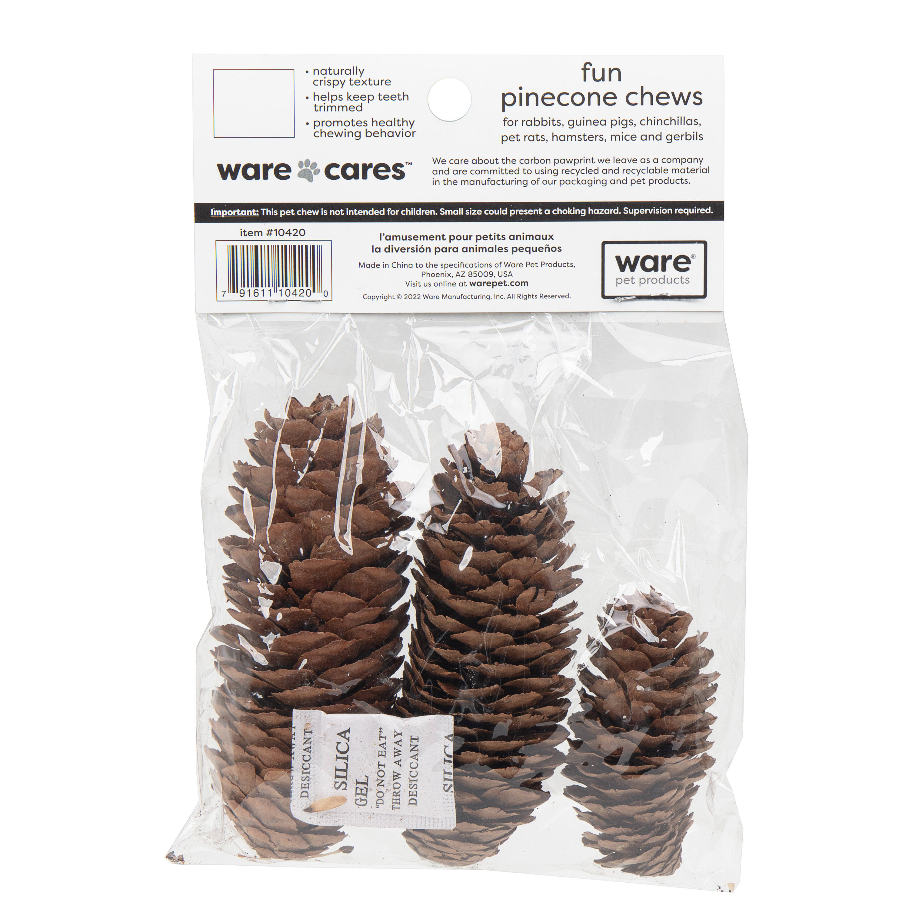 All natural pinecones are an excellent enrichment toy-and-chew for all small animals. They appeal to a small animals natural instincts and help clean and file down teeth.