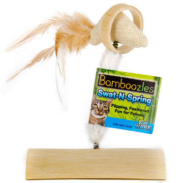 Swat-N-Spring is a natural bamboo toy with an enticing springy critter on top for bat-about fun. It is made from earth friendly bamboo with feather and catnip accents to tantalize any kitty.
