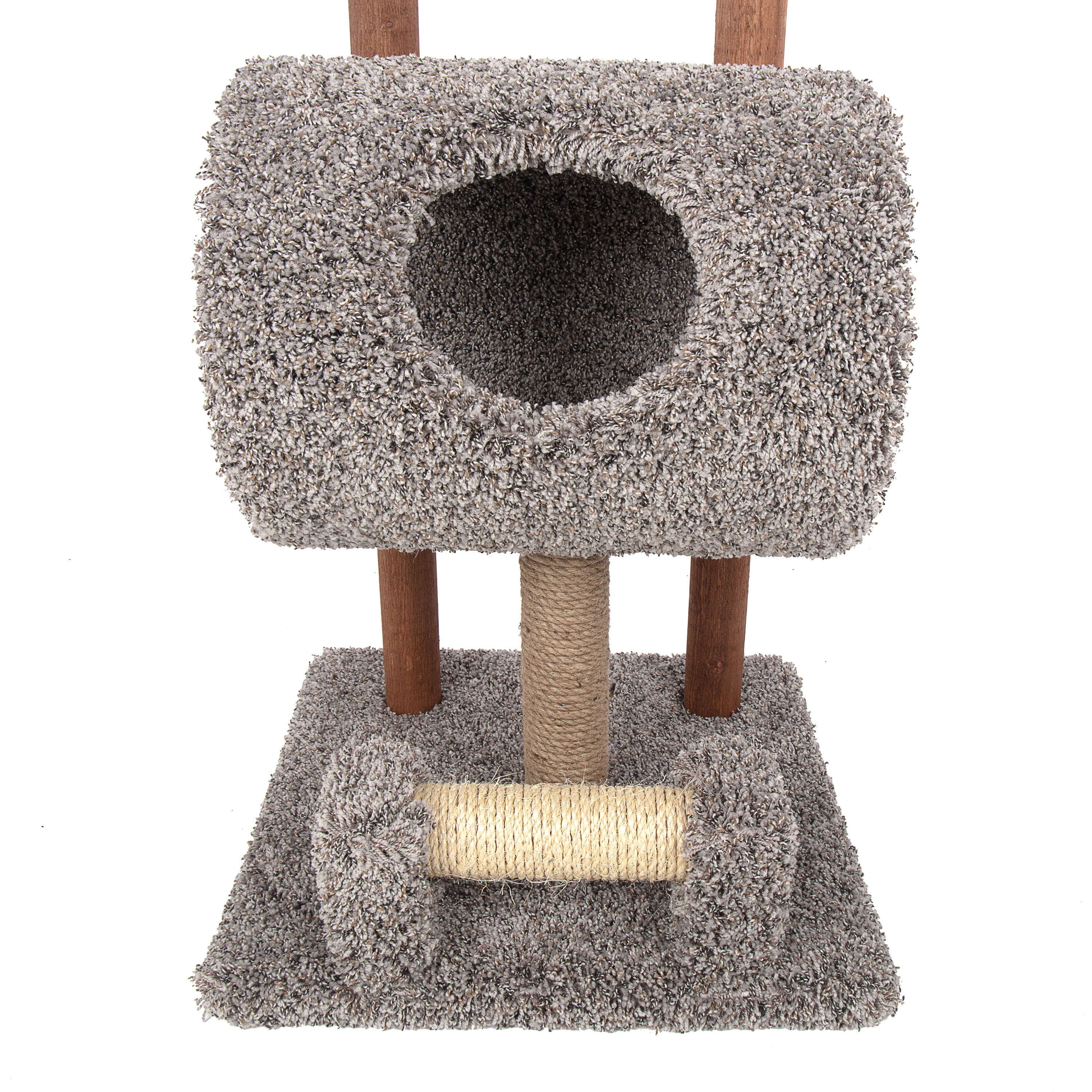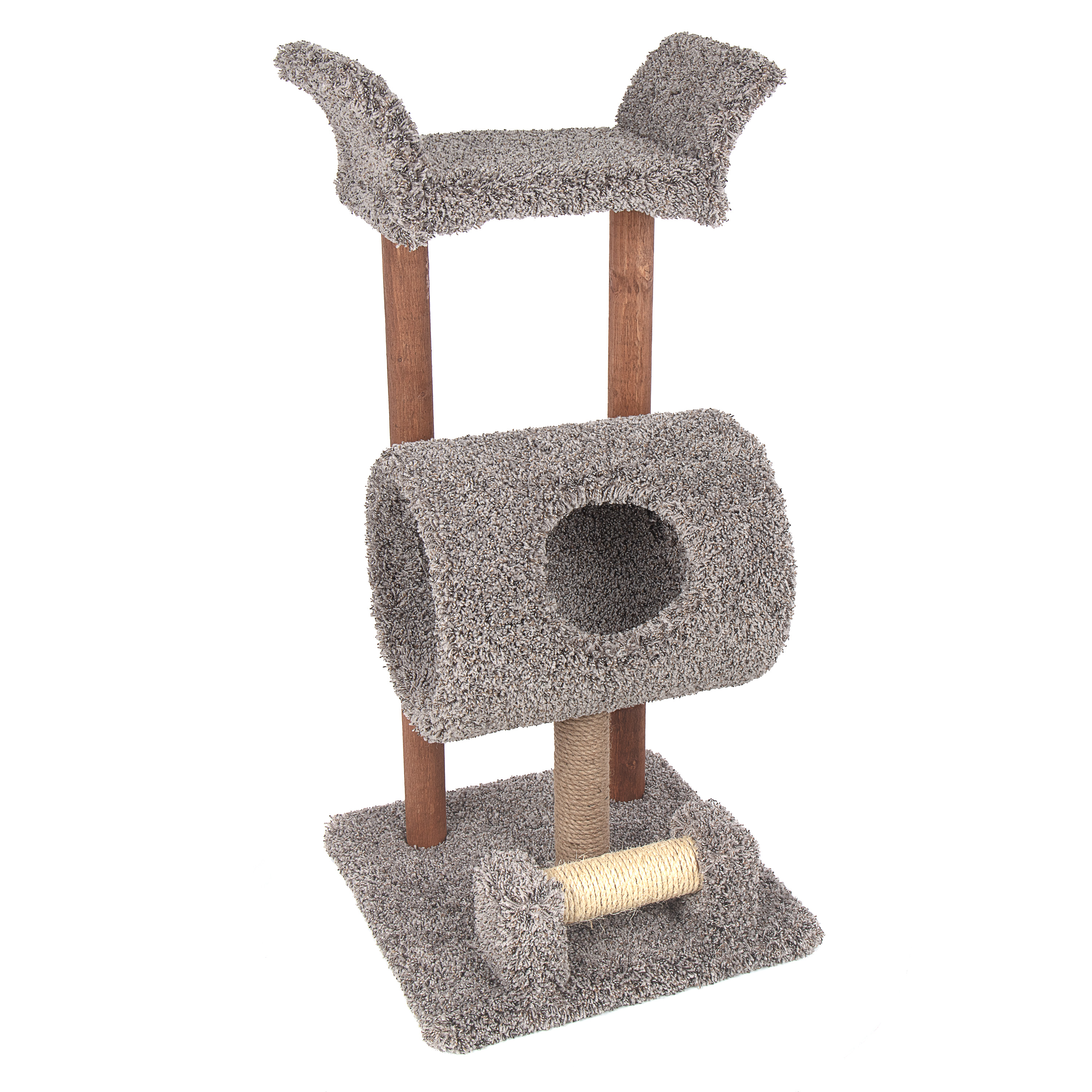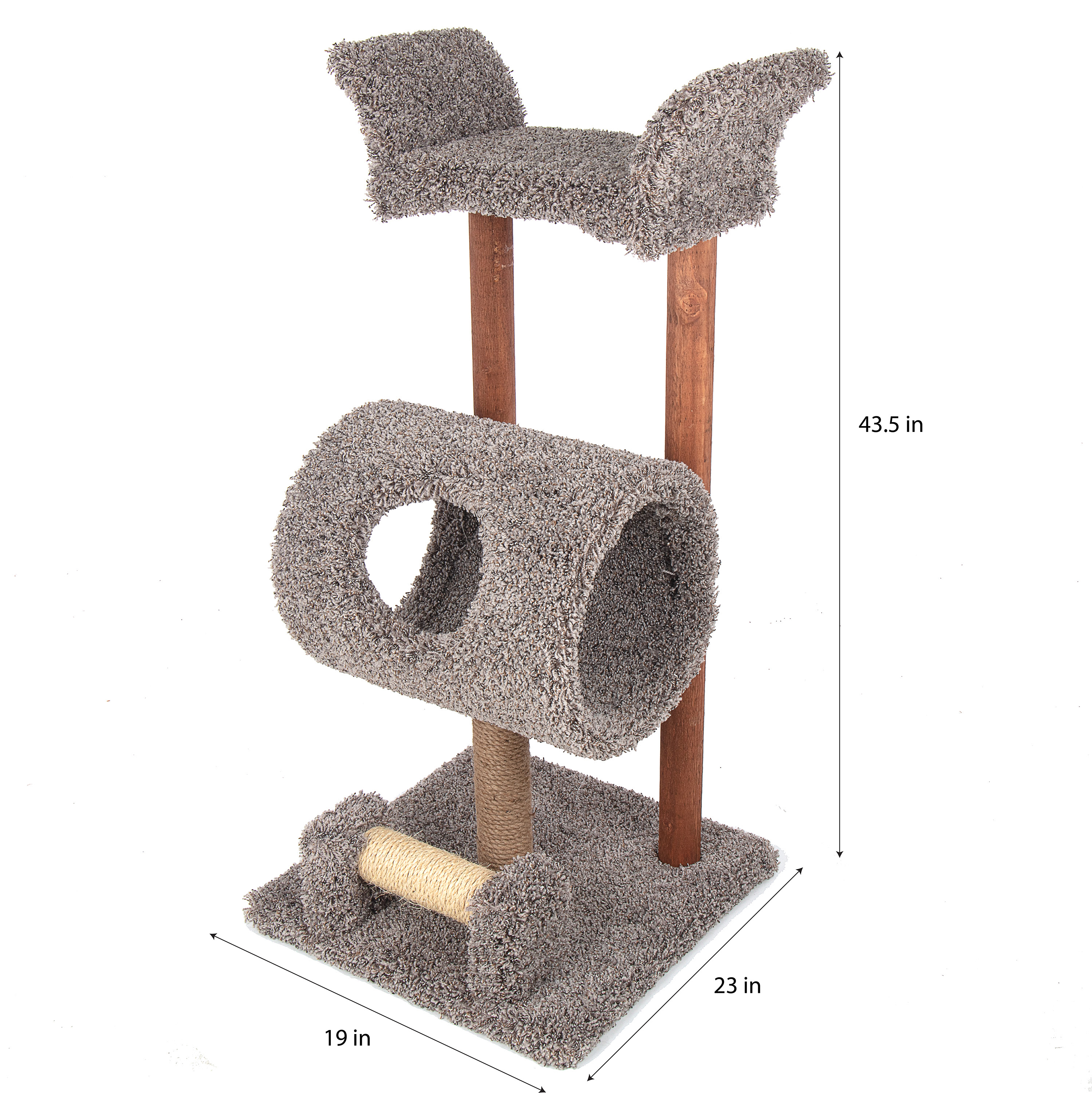 Lounge Around-N-Scratch provides the perfect combination of sisal and wood scratch surfaces. A cozy hideout tunnel and lofty lounger on top provides plenty of space to rest and relax.
