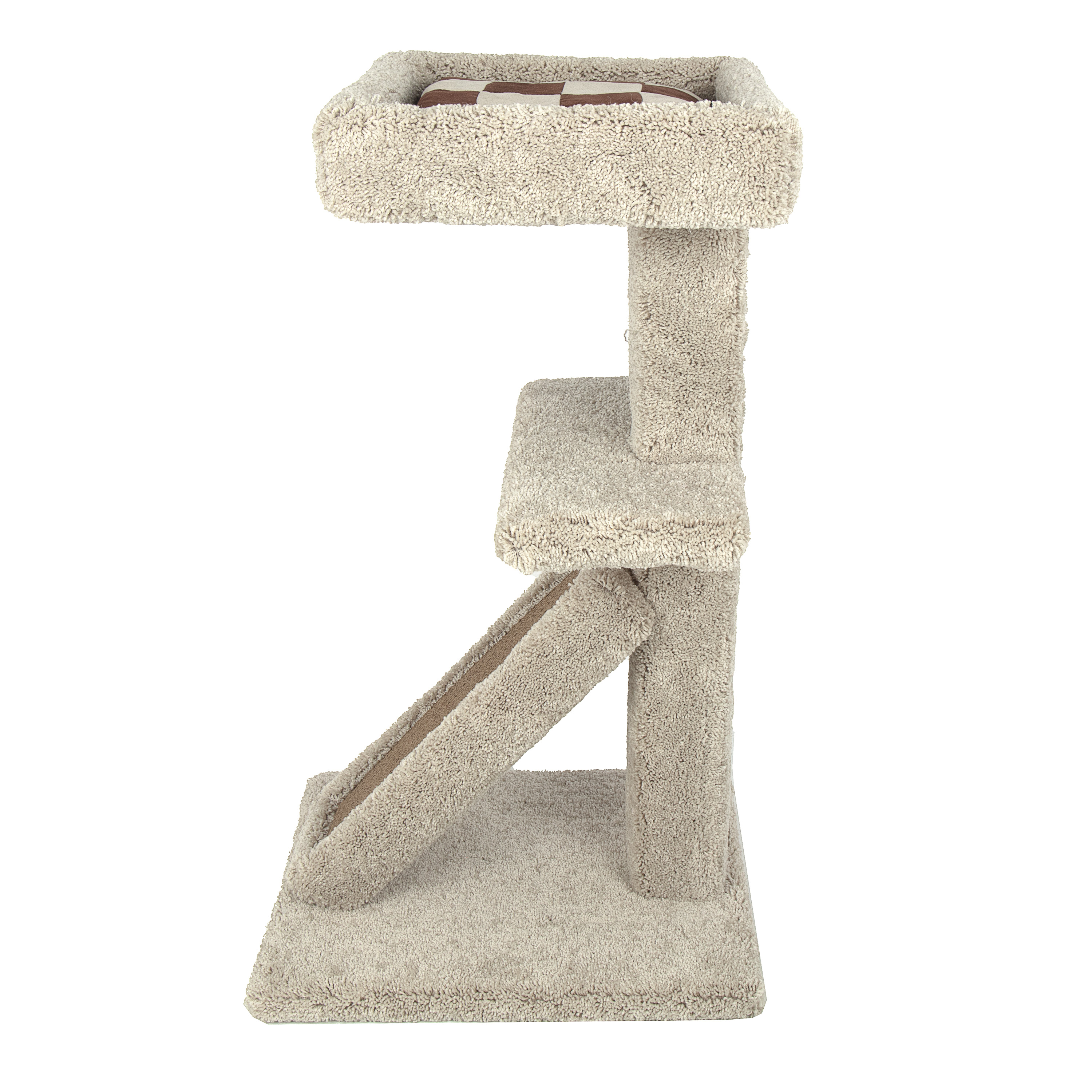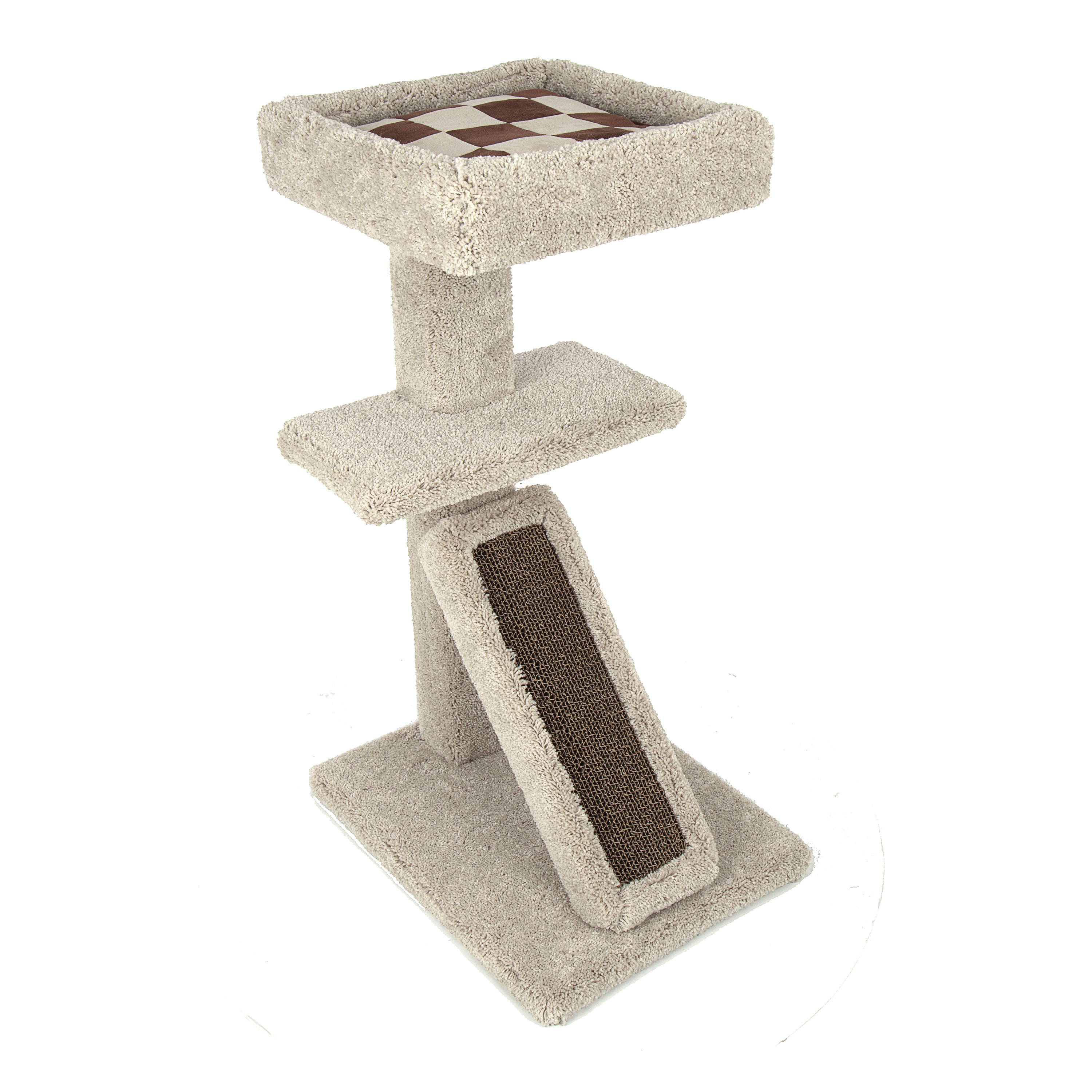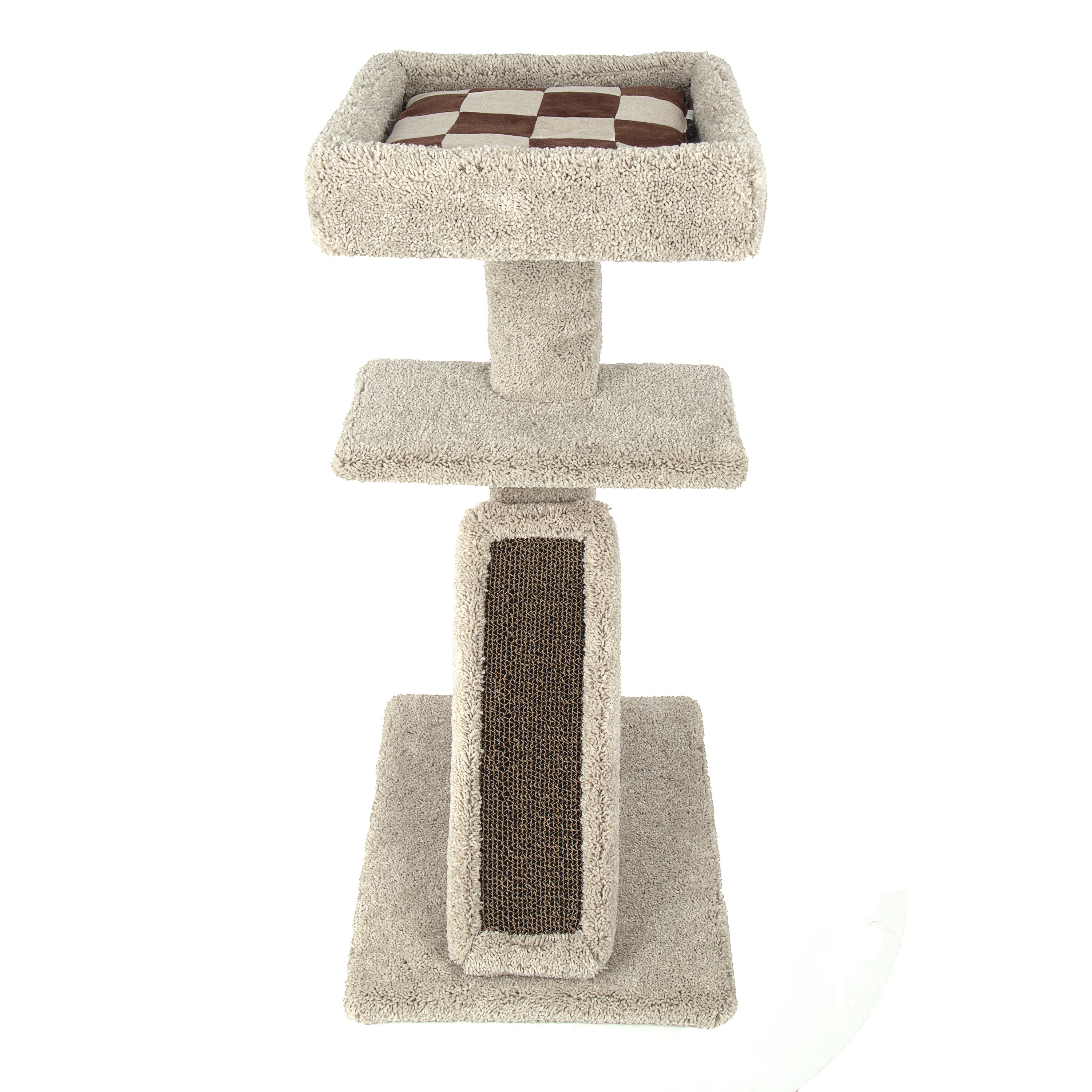 A soft pillow bed awaits atop this versatile cat furniture with corrugated scratching pad. Cats can relax in comfort and style as they survey their surroundings.