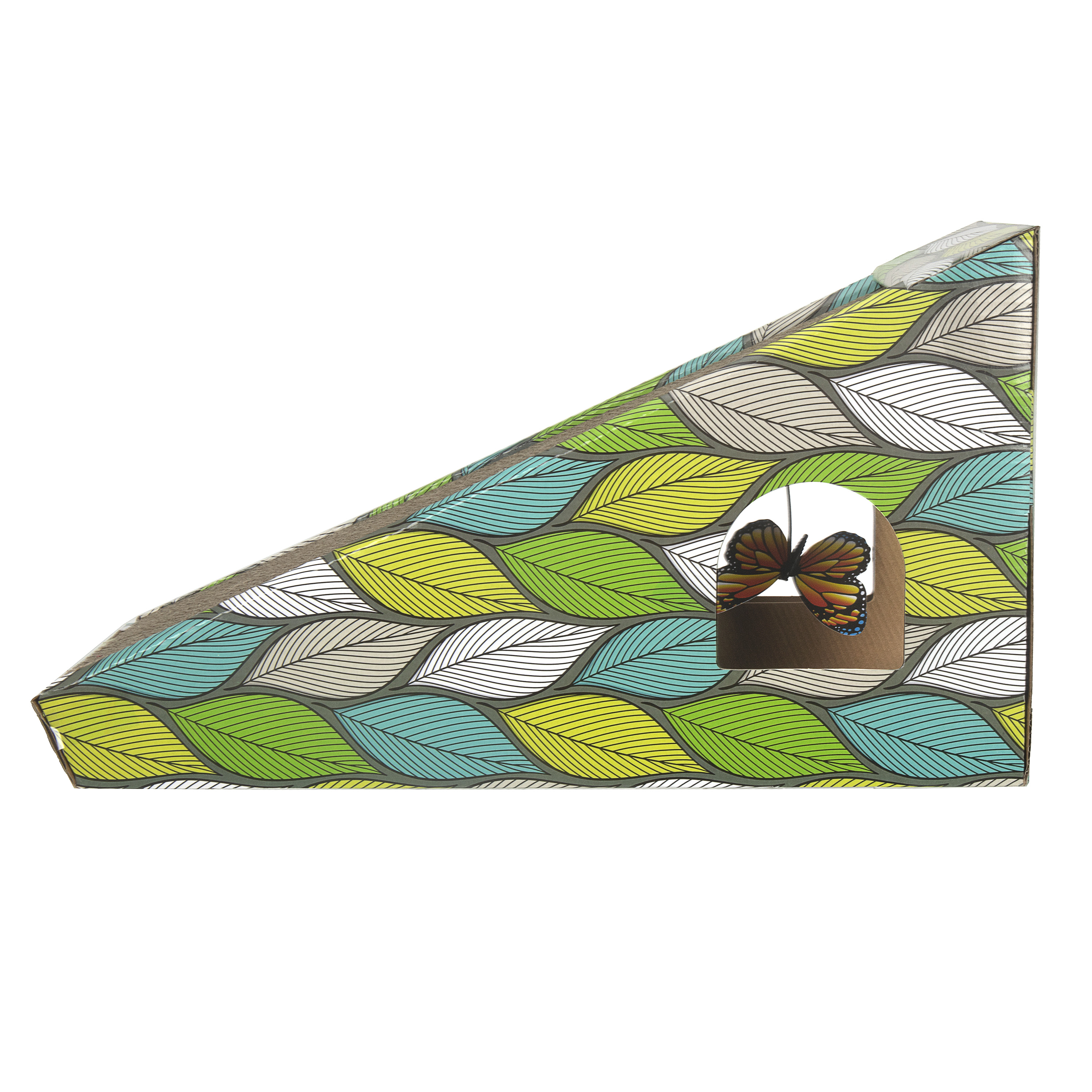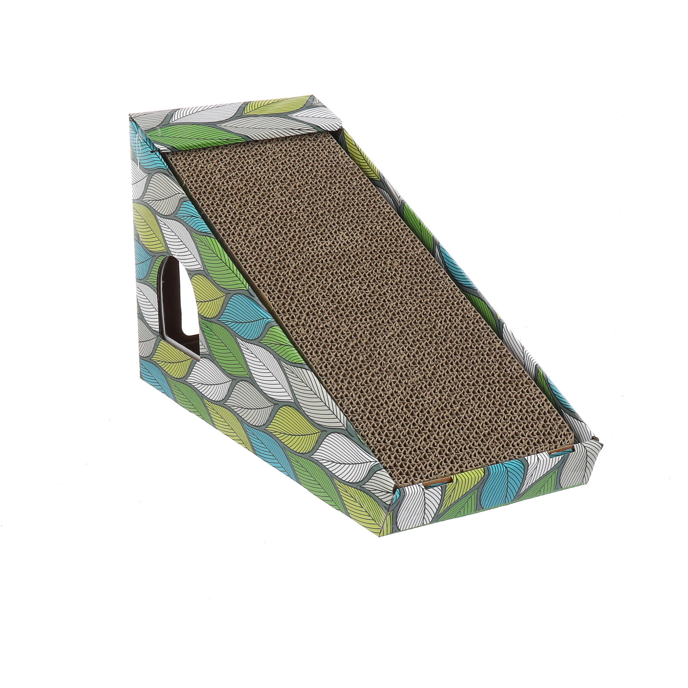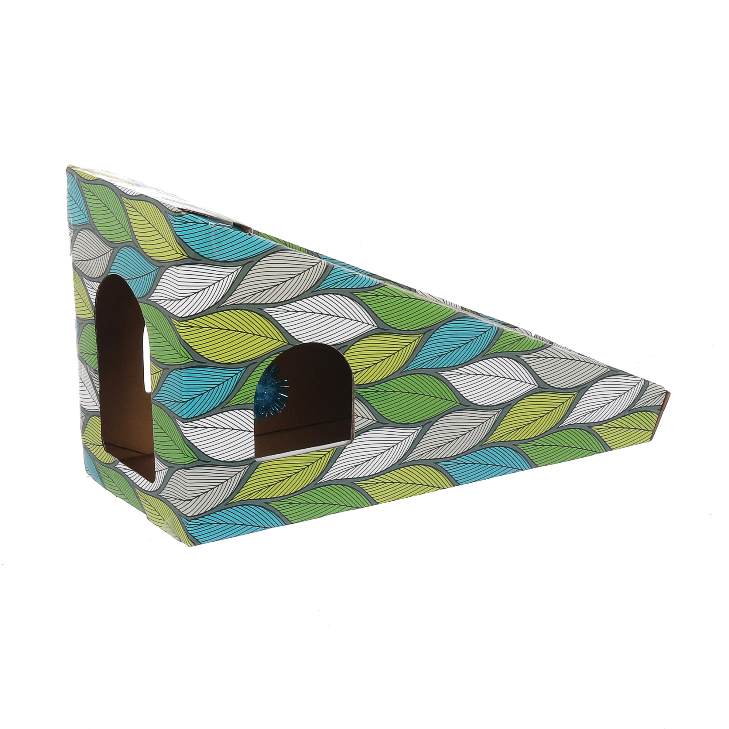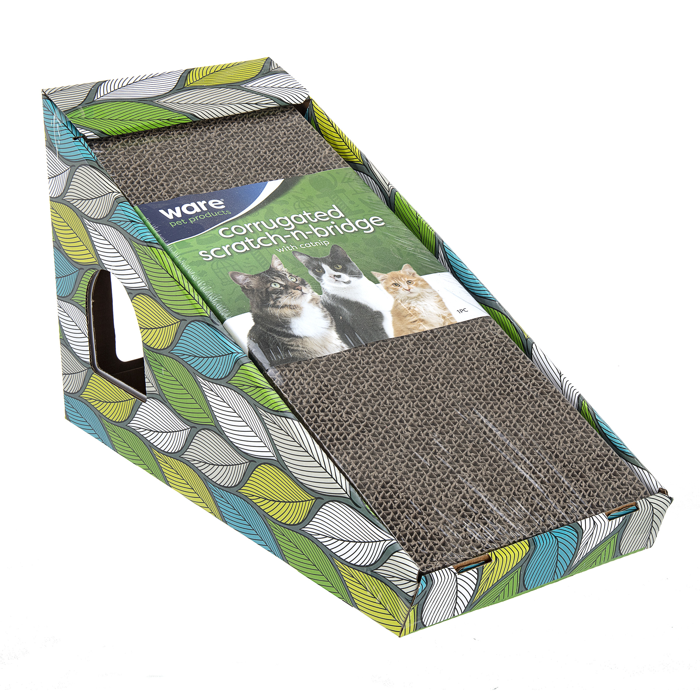 Curious kitties love to scratch the bridge on top and play in the hide-out underneath. Cats will love scratching the slanted corrugated cardboard surface and finding the irresistible crinkle sound toy under the bridge.