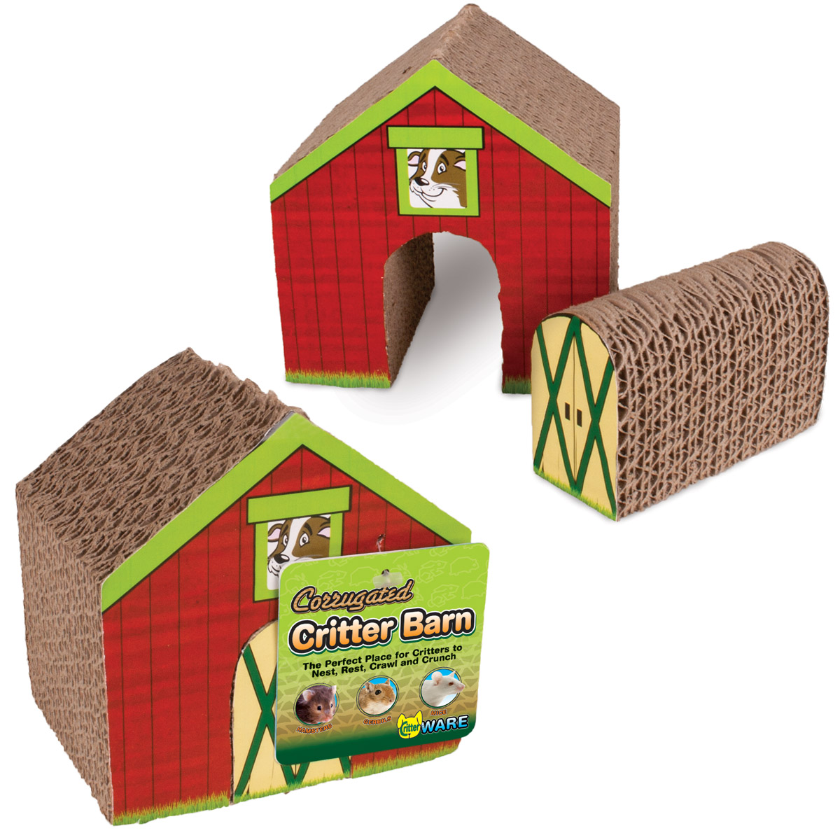 Corrugated Critter Barn is the perfect chew-time toy that offers small pets a spot to nest, rest, crawl and crunch. This safe, shreddable hideout is eco-friendly and offers chewtime and exercise fun activities.