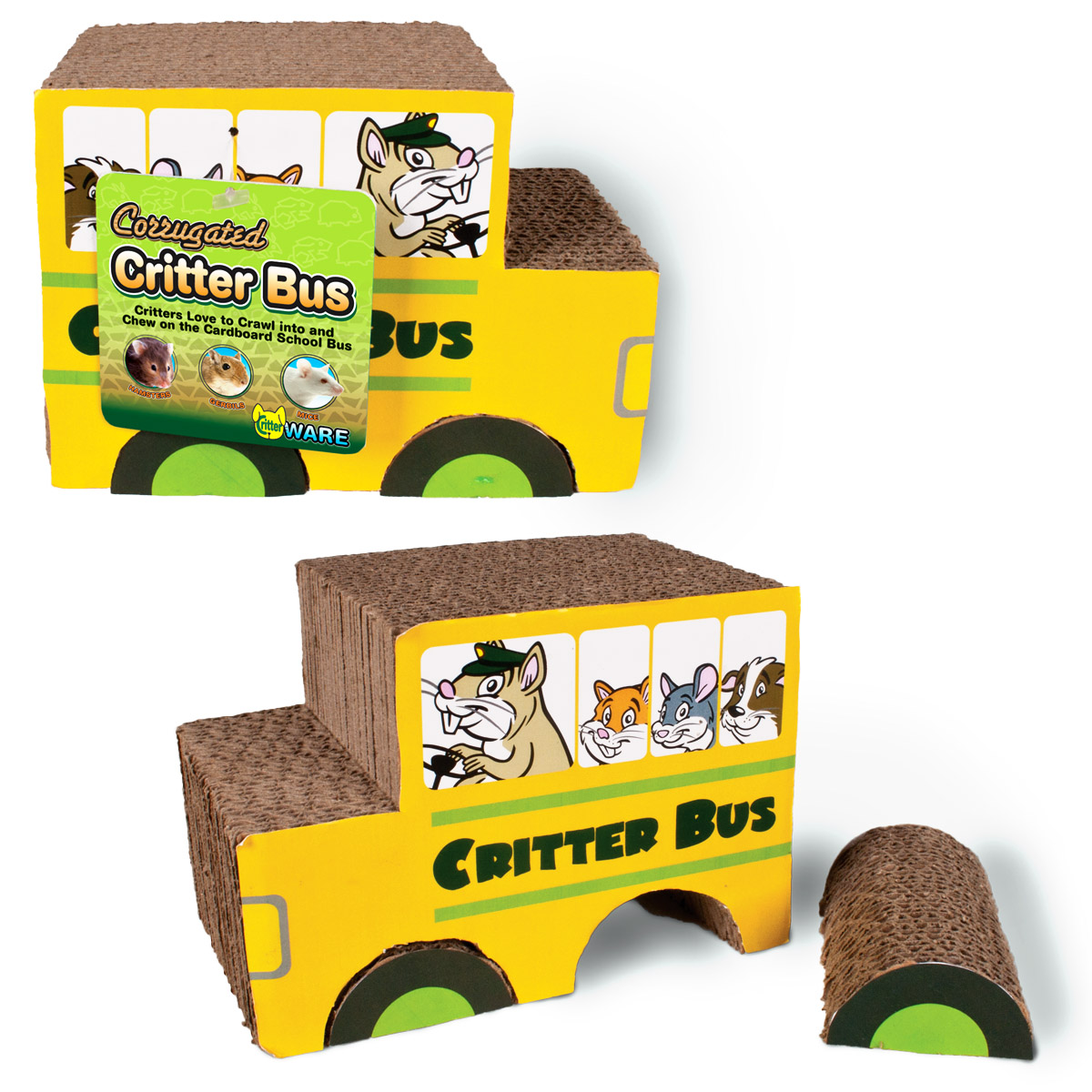 Critters love to crawl into and chew on the cardboard school bus. Shreddable corrugated cardboard is totally safe for critters to chew, and offers a safe and fun chew time activity.