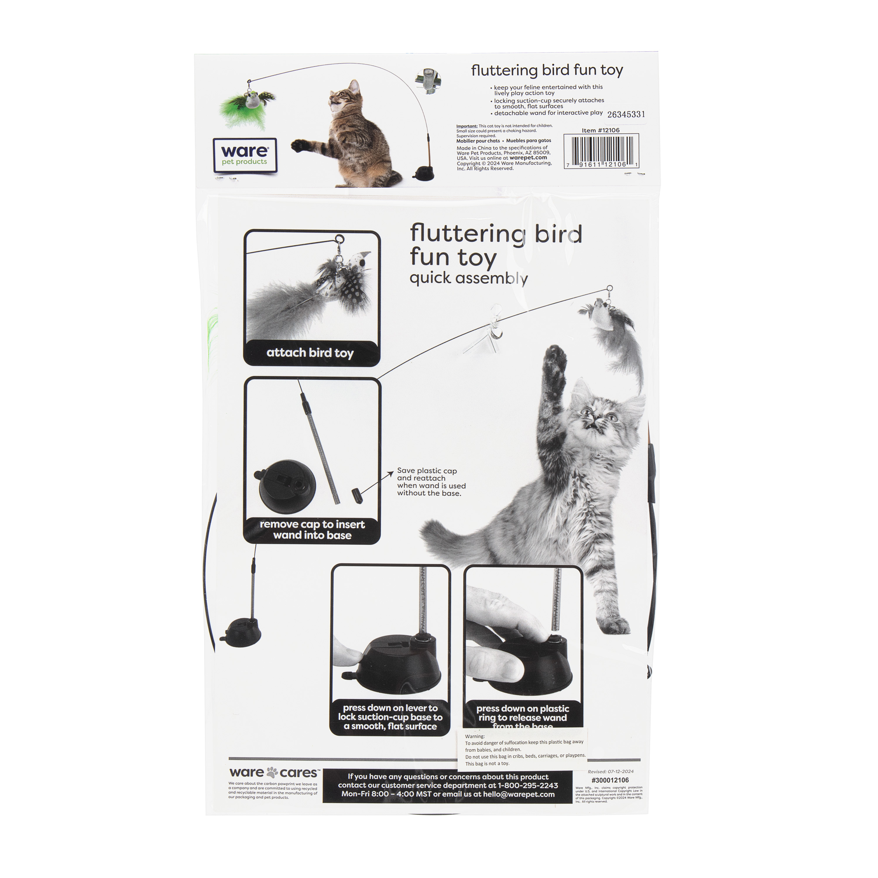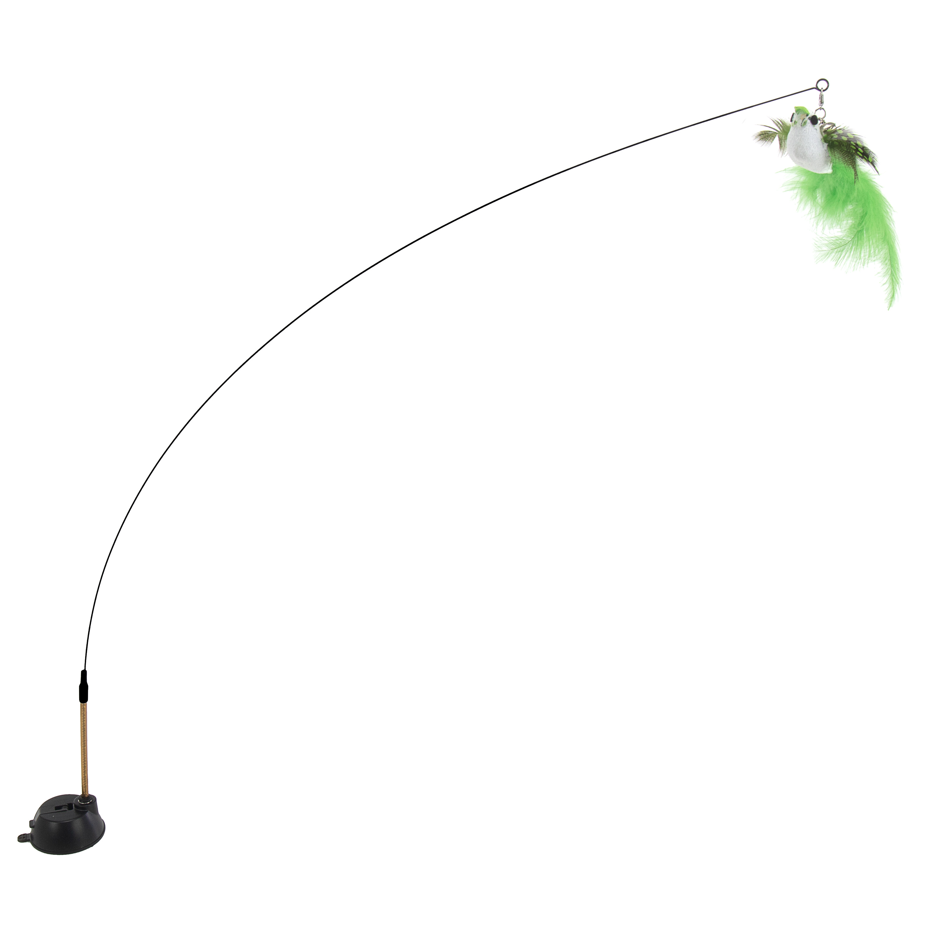 Keep your feline entertained with this 2-in-1 toy that can easily attach to smooth, flat surfaces or used as a stand alone cat toy wand.