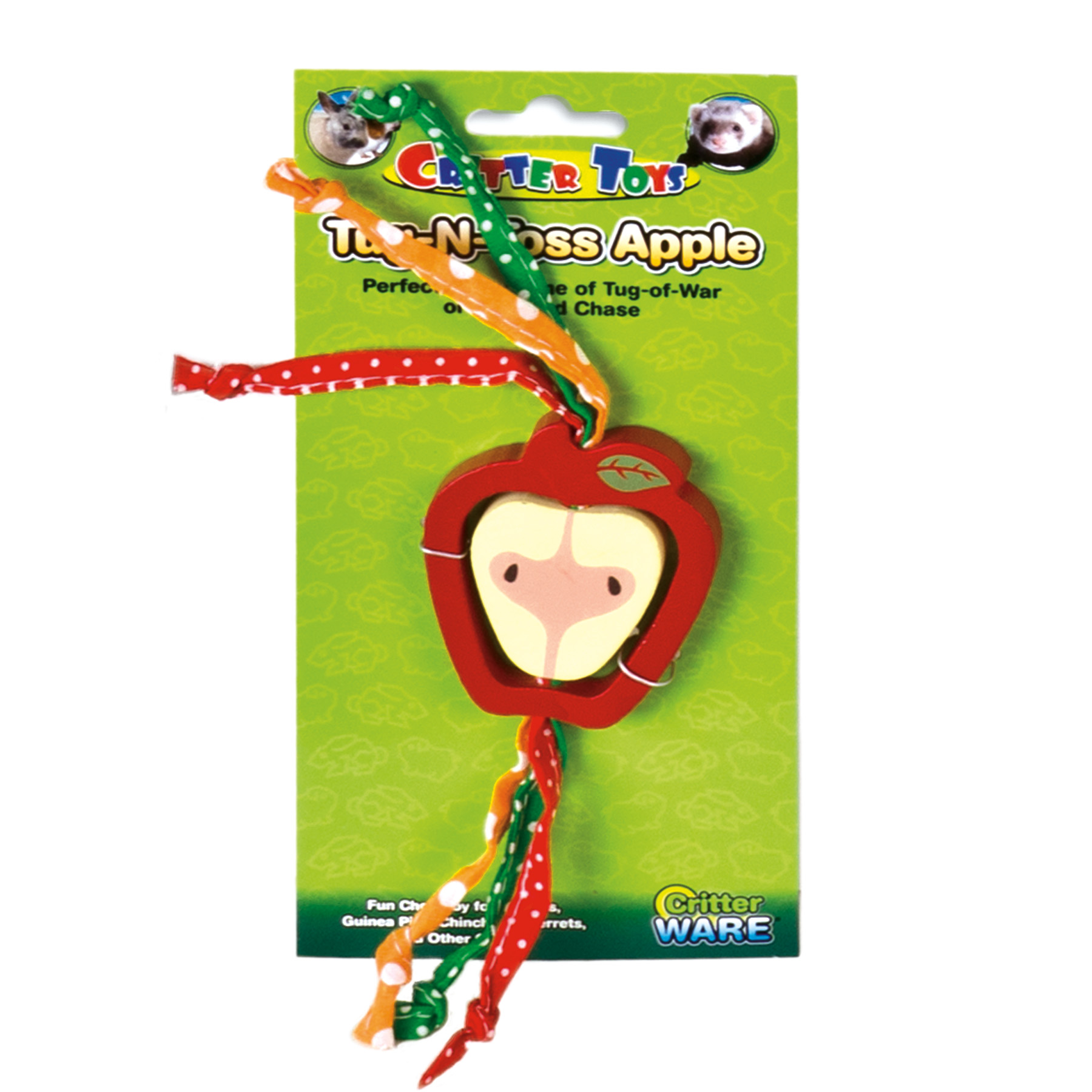 Tug-N-Toss Apple is the perfect toy to promote positive playtime behavior for any small pet. Solid wood construction has durable cotton ropes that make it easy for critters to pick up and toss the toy, encouraging healthy activity.