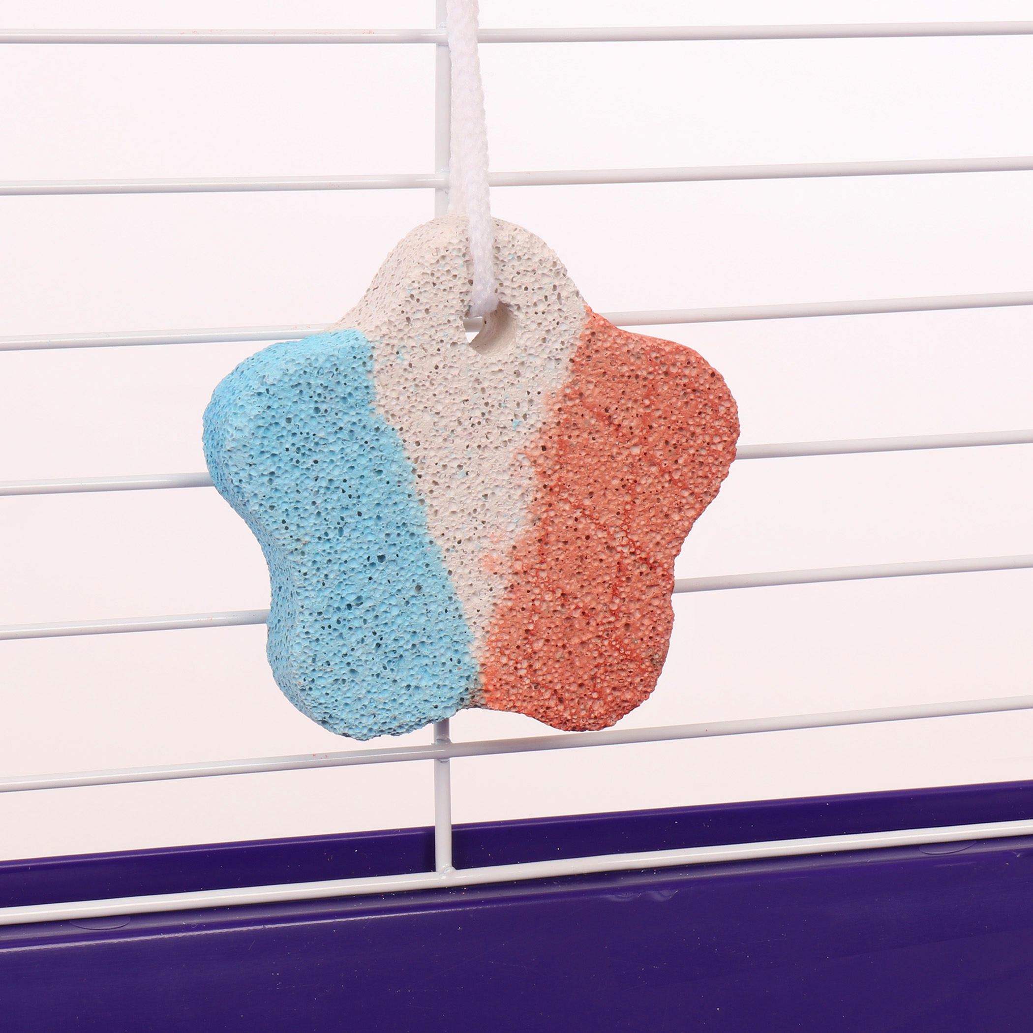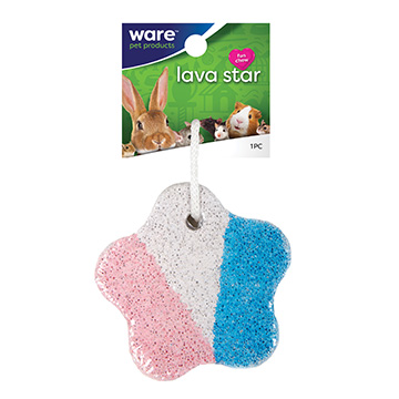 Lava Star is a lasting natural lava stone chew for chinchillas, rabbits, guinea pigs, pet rats and other small animals. Natural pumice is rich in minerals and keeps teeth trimmed and healthy. Hangs anywhere in the cage on a natural cotton rope.