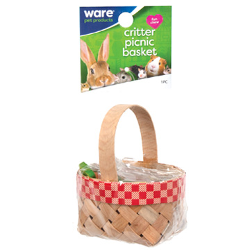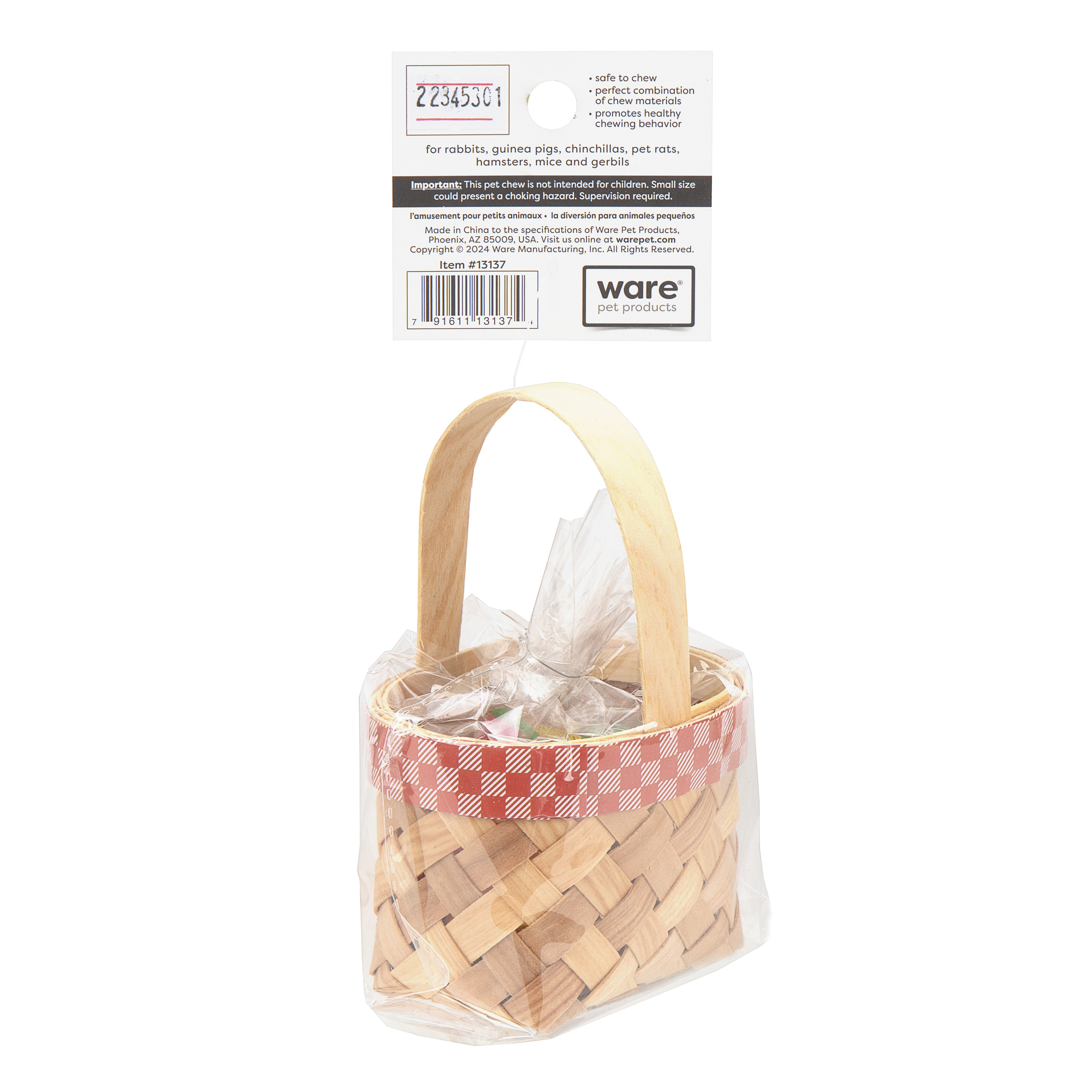 A basket filled with critter delights. A variety of chews made from wood and pumice shaped like picnic items. Watching your favorite critter nibble and chew never looked so fun.