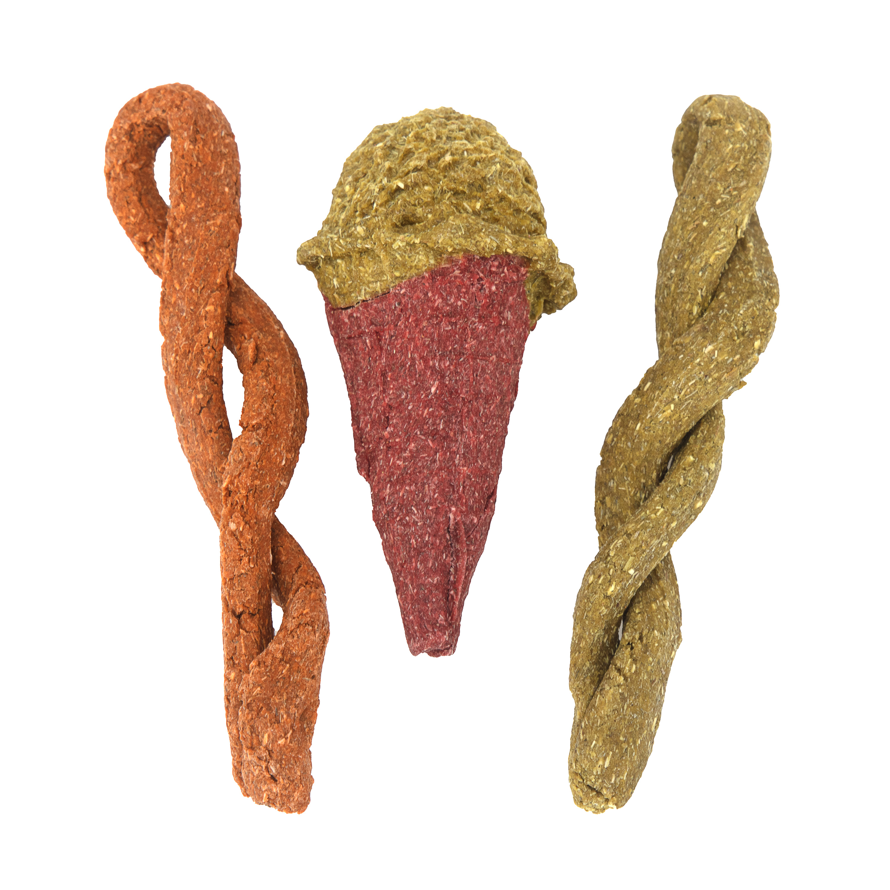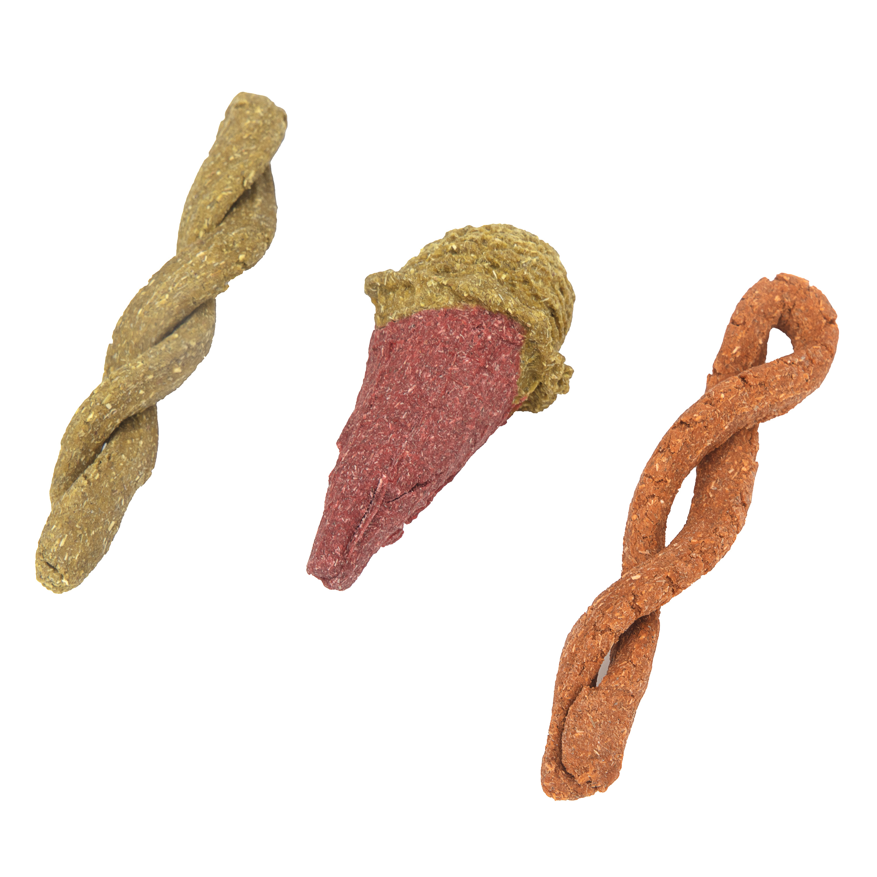 Hand feeding your favorite critter has never been more fun. Made from ground timothy hay, ground pumpkins and ground carrots formed into fun shapes.