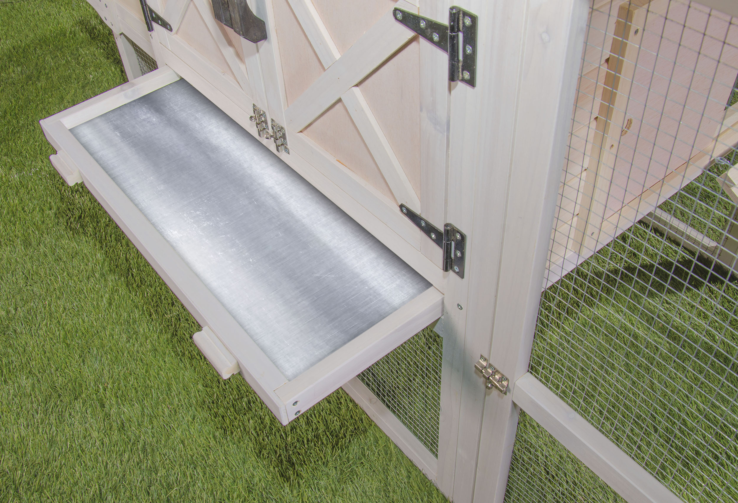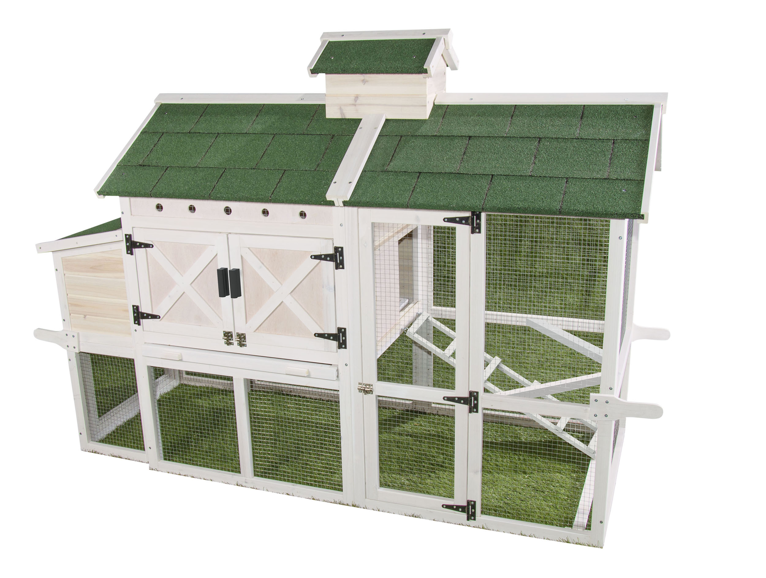 The Premium+ Chicken Chateau provides ample space for your chickens to roam safely. The country chic design will brighten up any backyard and the craftmanship is sure to be admired. Features include full size pull pan, interior nest box and secure ladder from hutch to pen.