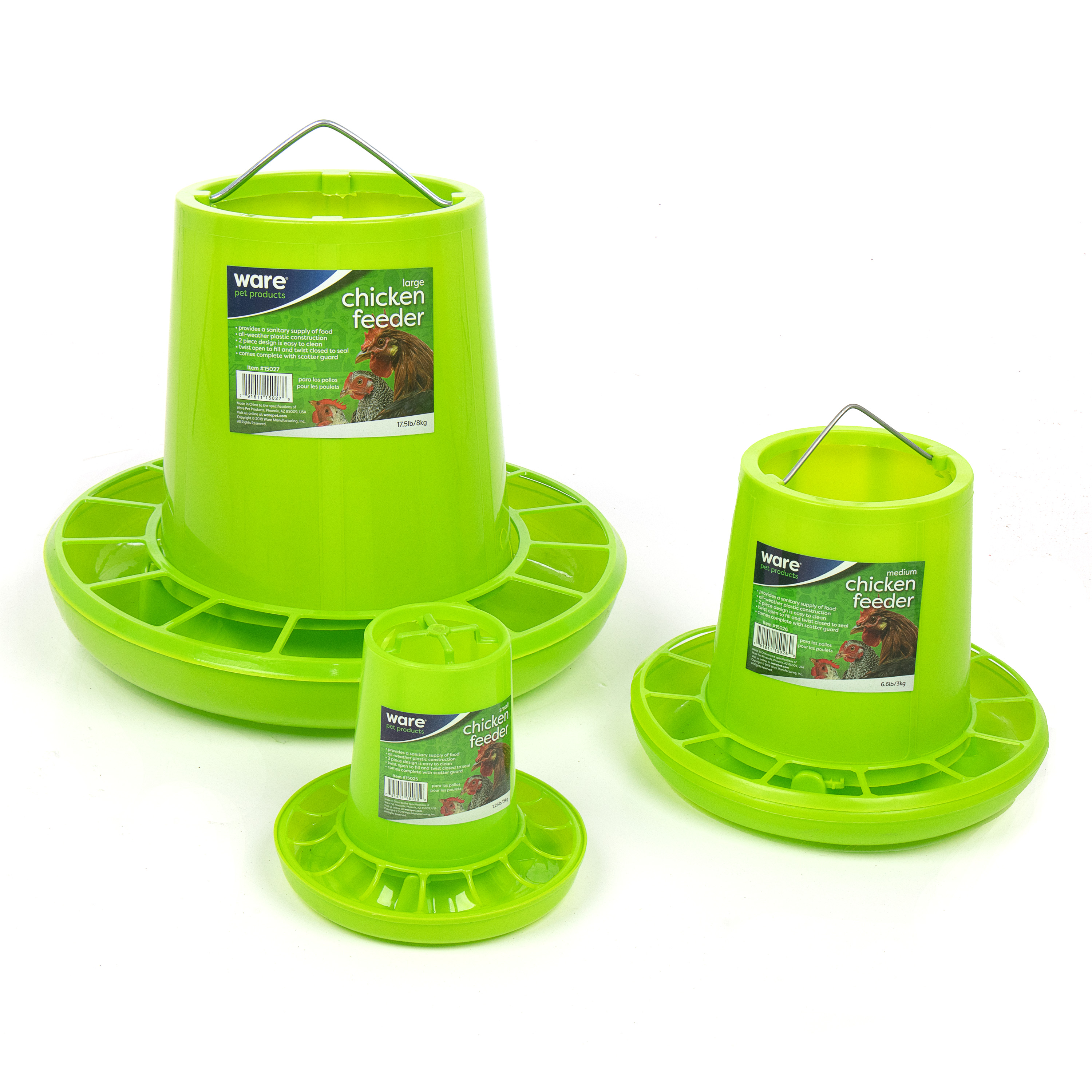 Chick-N-Feeders offer a versatile design for feeding the backyard flock. They may be hung or sit on the ground and include a scratch ring to prevent wasted food. Available in 3 sizes.
