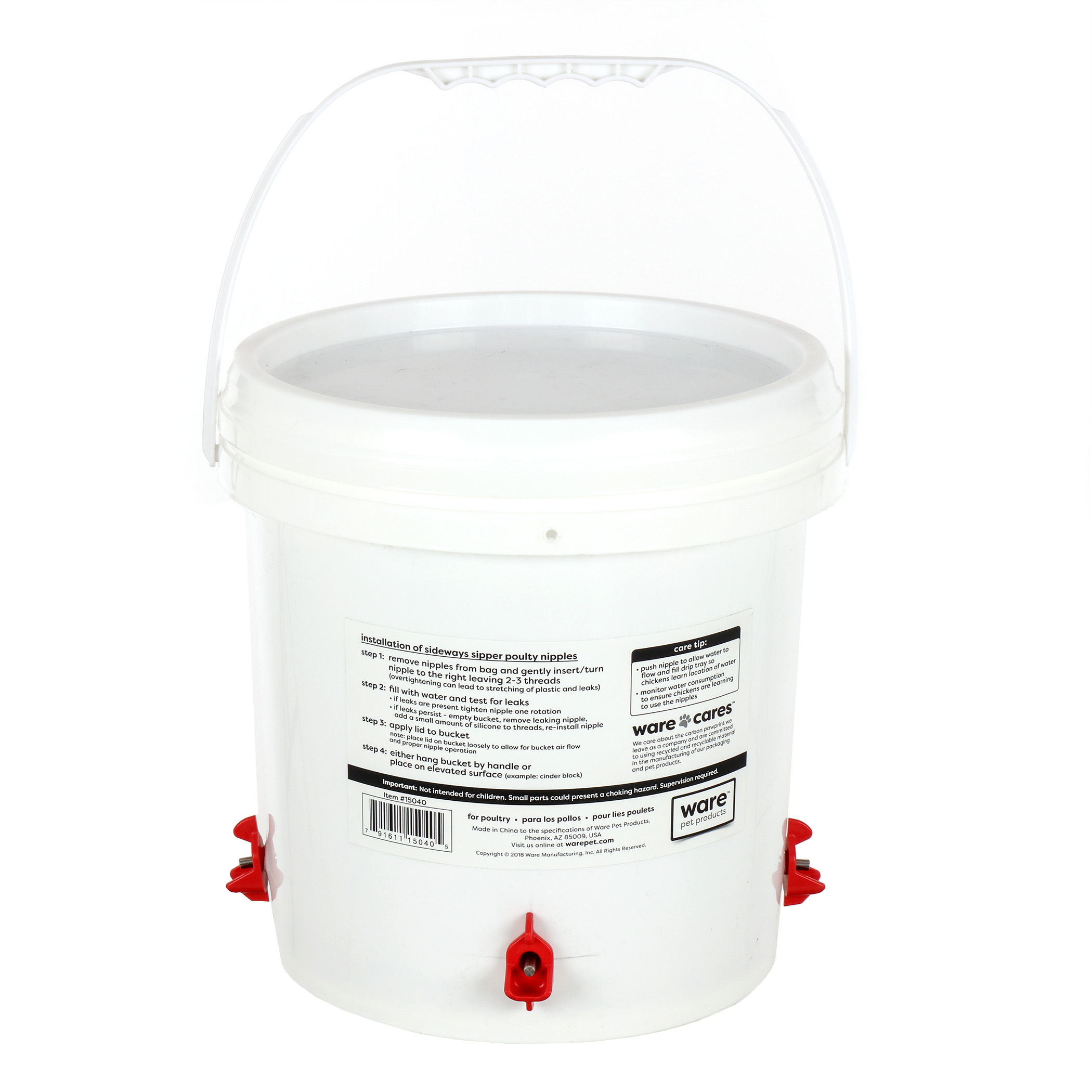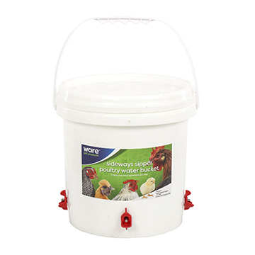 The Sideways Sipper Poultry Water Bucket provides a sanitary supply of water for your backyard flock. Featuring 2.5 gallon capacity and an all-weather plastic construction that is easy to clean and fill.
