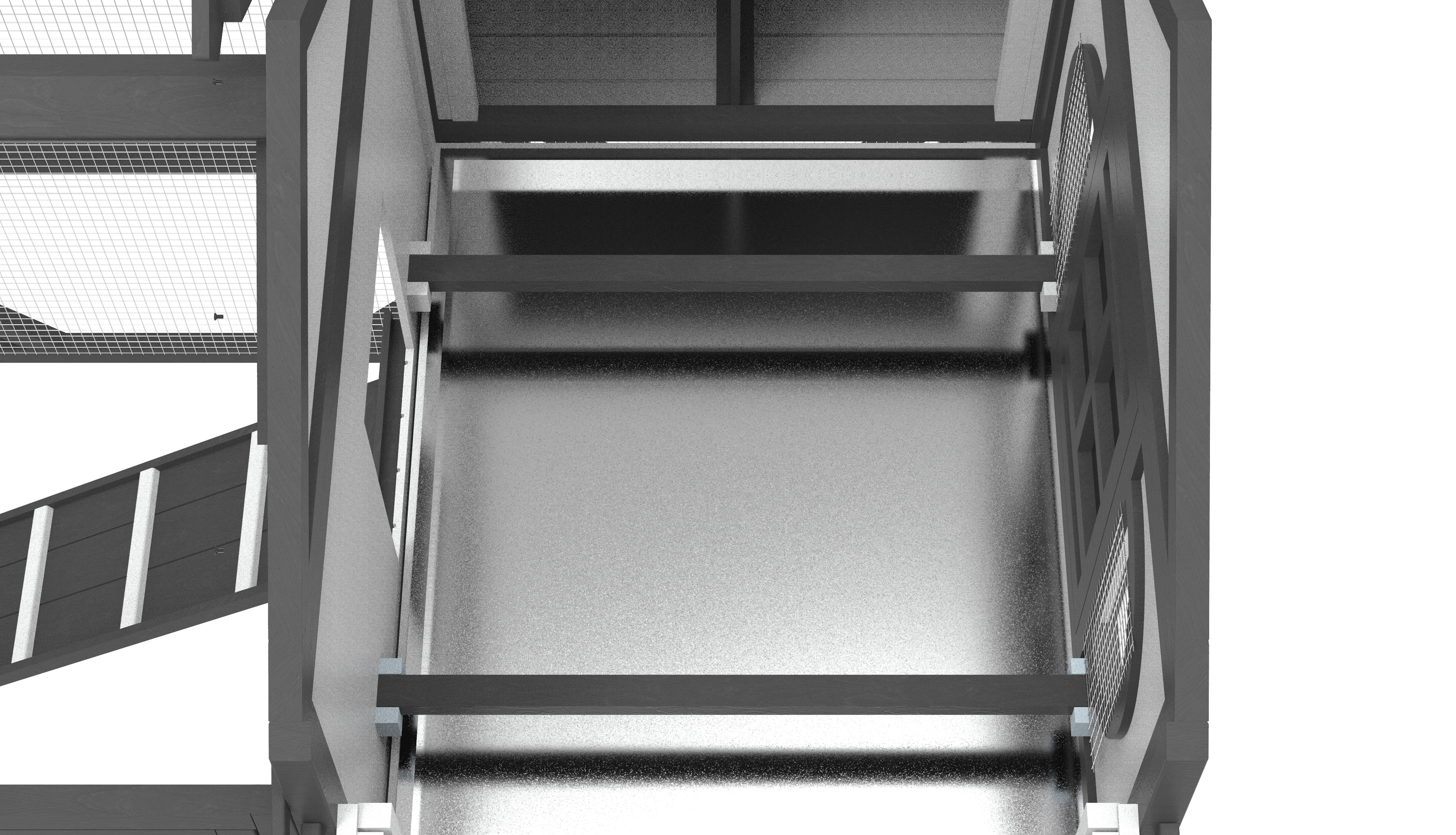 - Large cover pen area with roosting bars