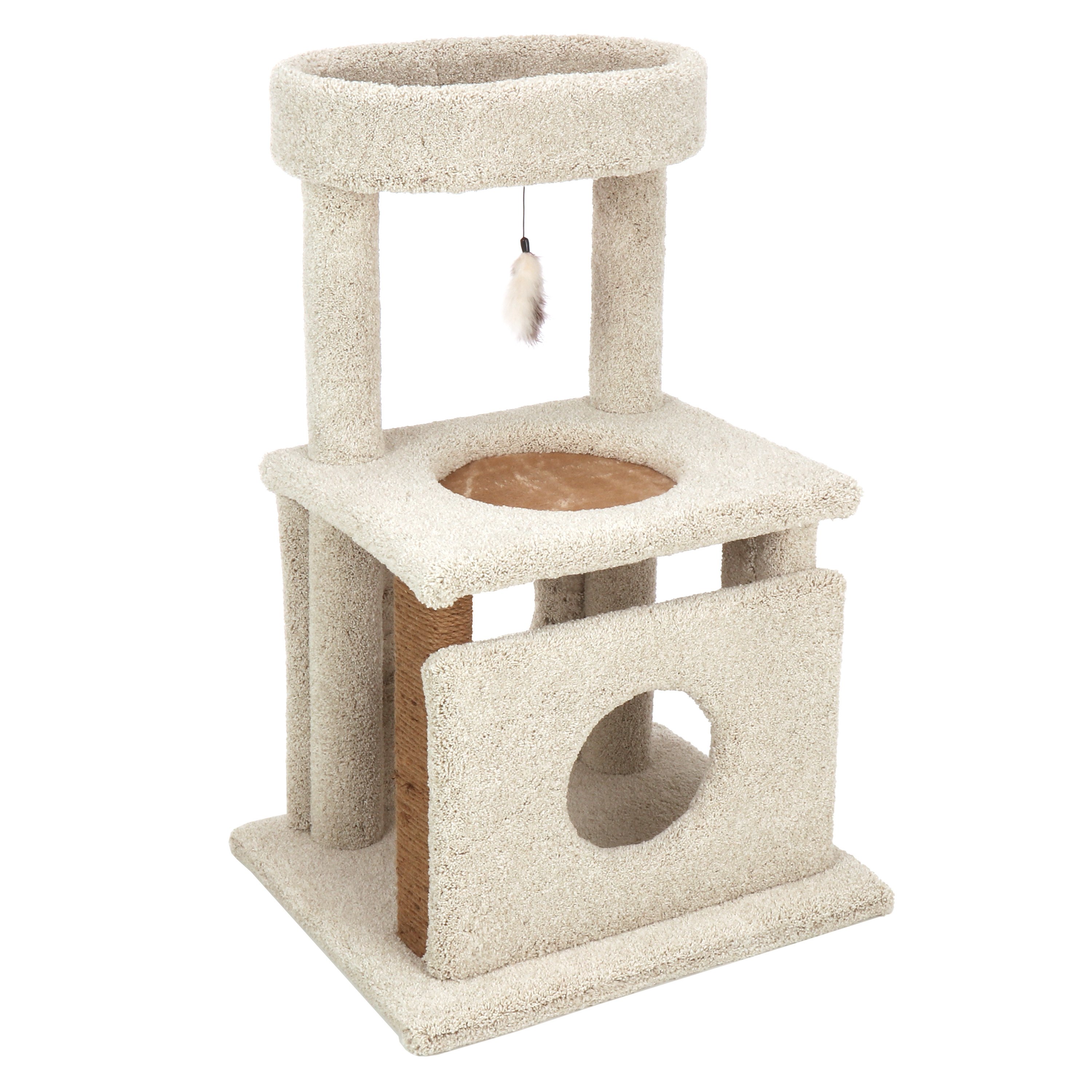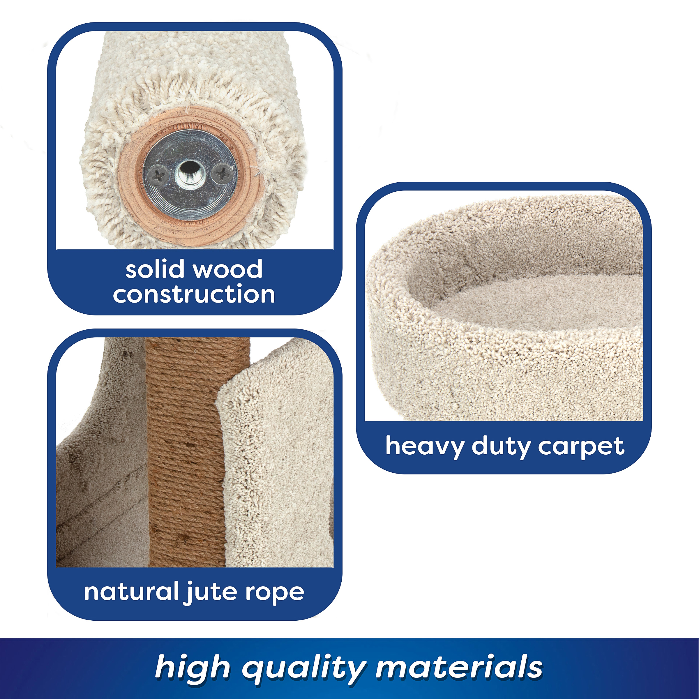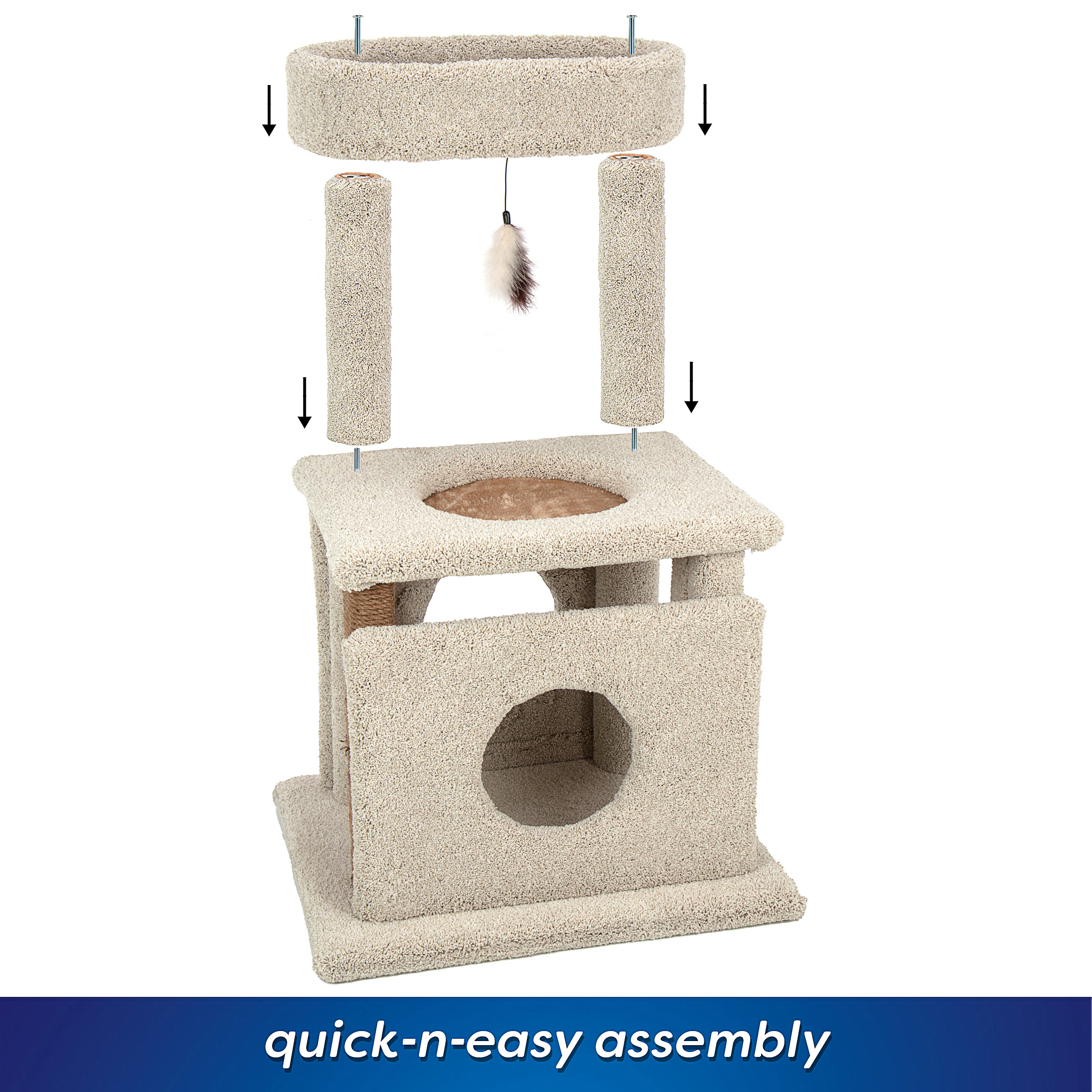 A 37" tall cat tree that is perfect for your kitty to lounge on! This two-story cat tree is handcrafted in the USA with solid wood posts for a sturdy construction and feel. Made with real, household grade carpet that is thick and plush for your feline to enjoy to the fullest! Combines ready-to-assemble shipping with pre-built quality for the best of both worlds!
