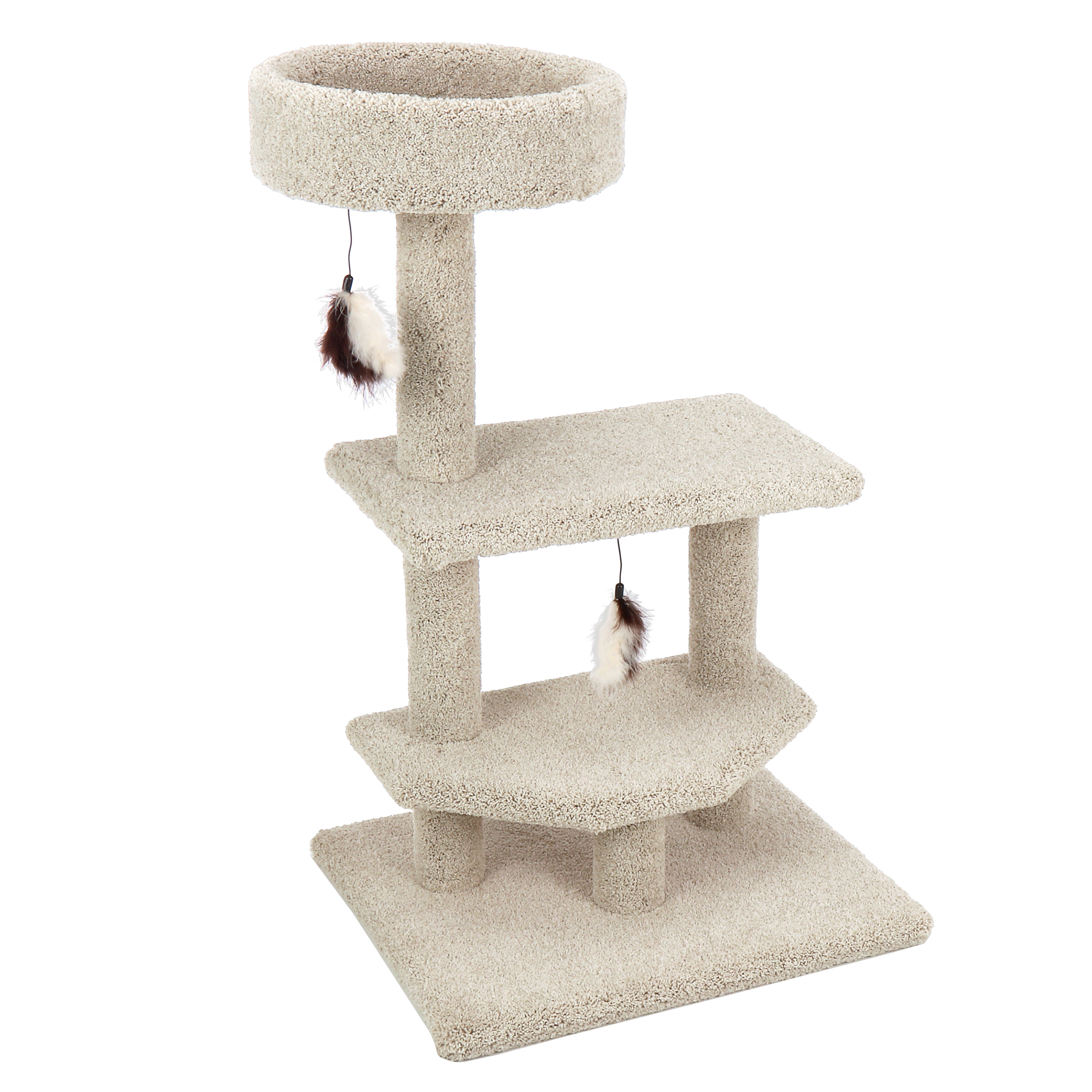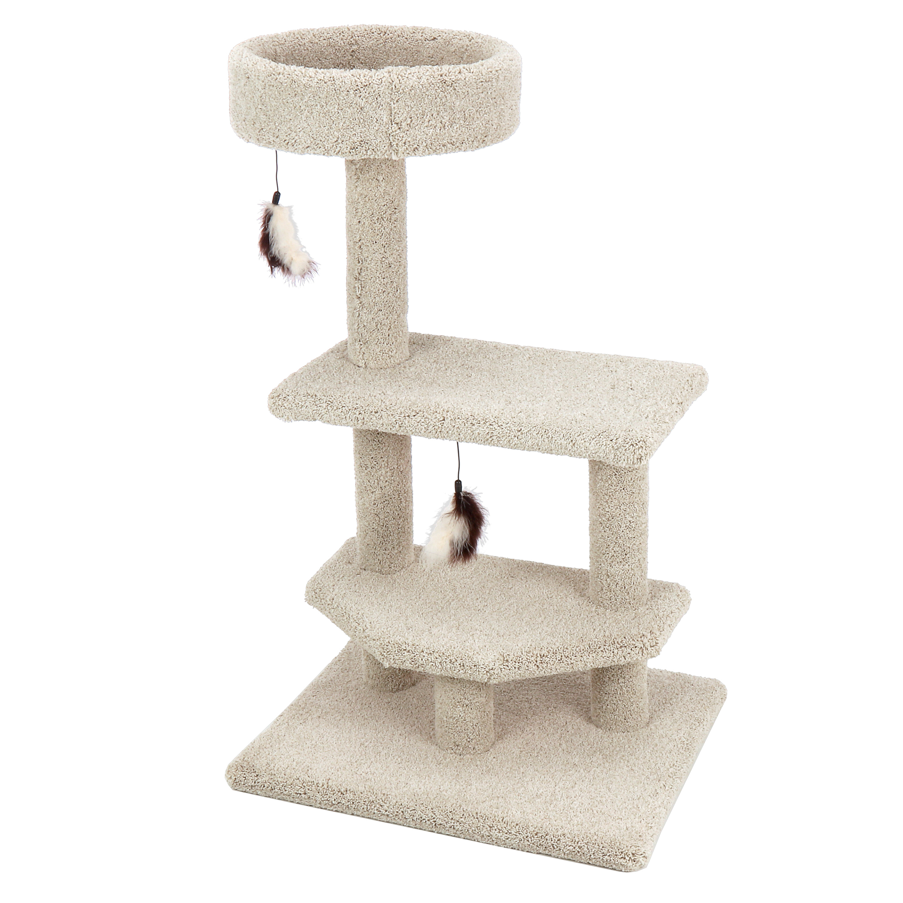 The Kitty-Quick 40" Perch is the perfect window lounger. Give your kitty great views of the outdoor with this 3 level cat tower! It features an easy step up design for older kitties to get to the top. Handcrafted in the USA with solid wood and household grade carpet. Combines ready-to-assemble shipping with pre-built quality for the best of both worlds!
