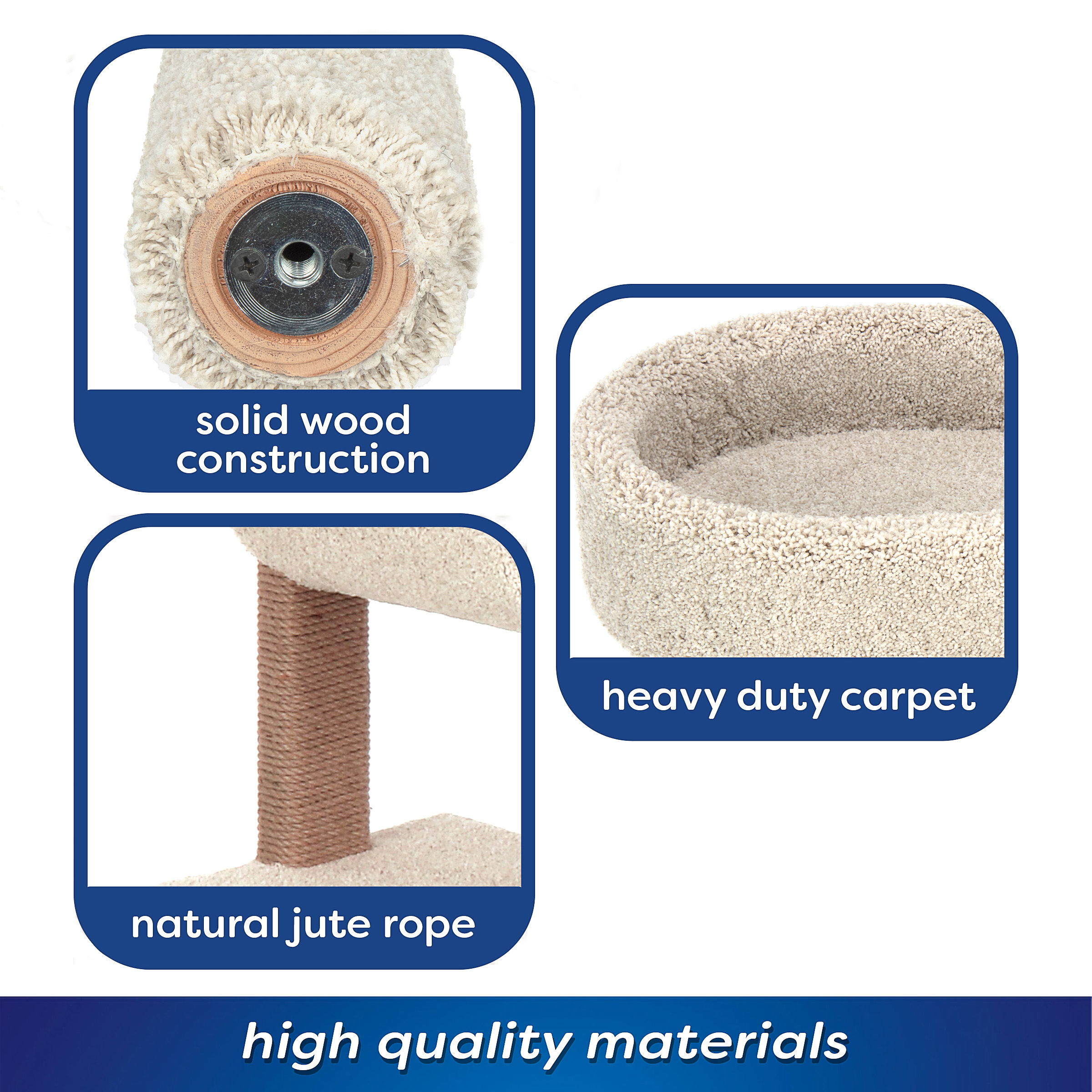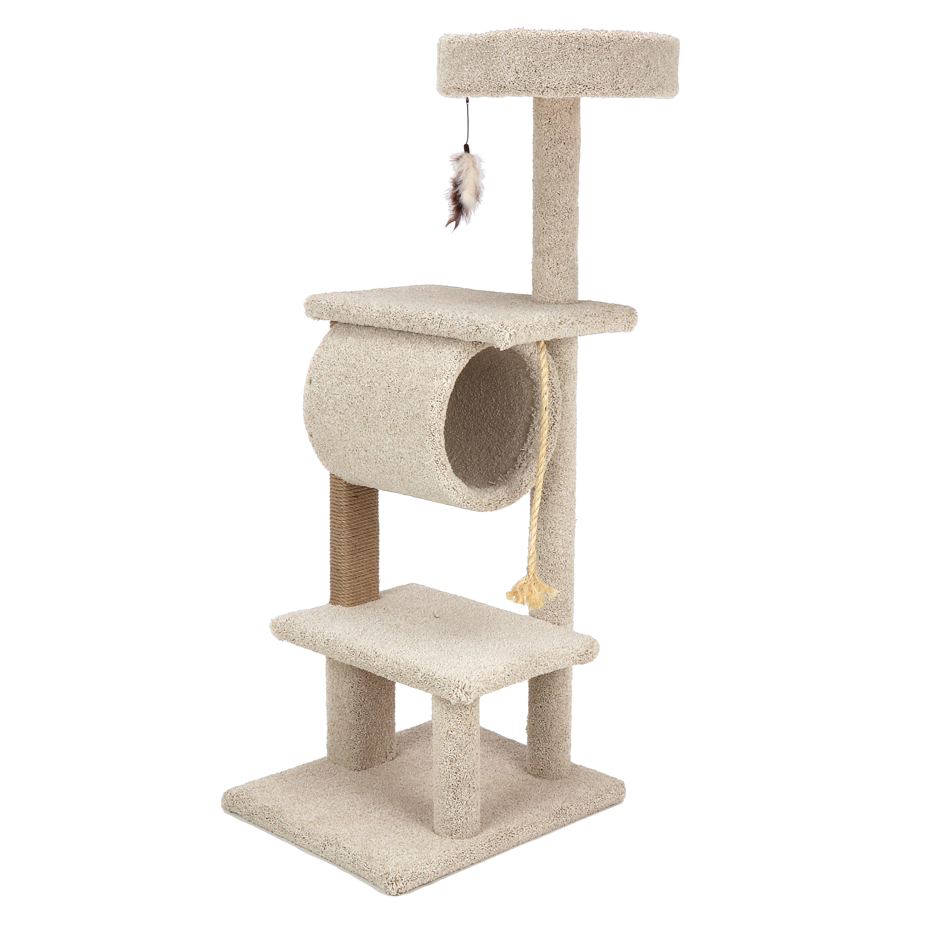 - Durable carpet and jute rope scratching posts
