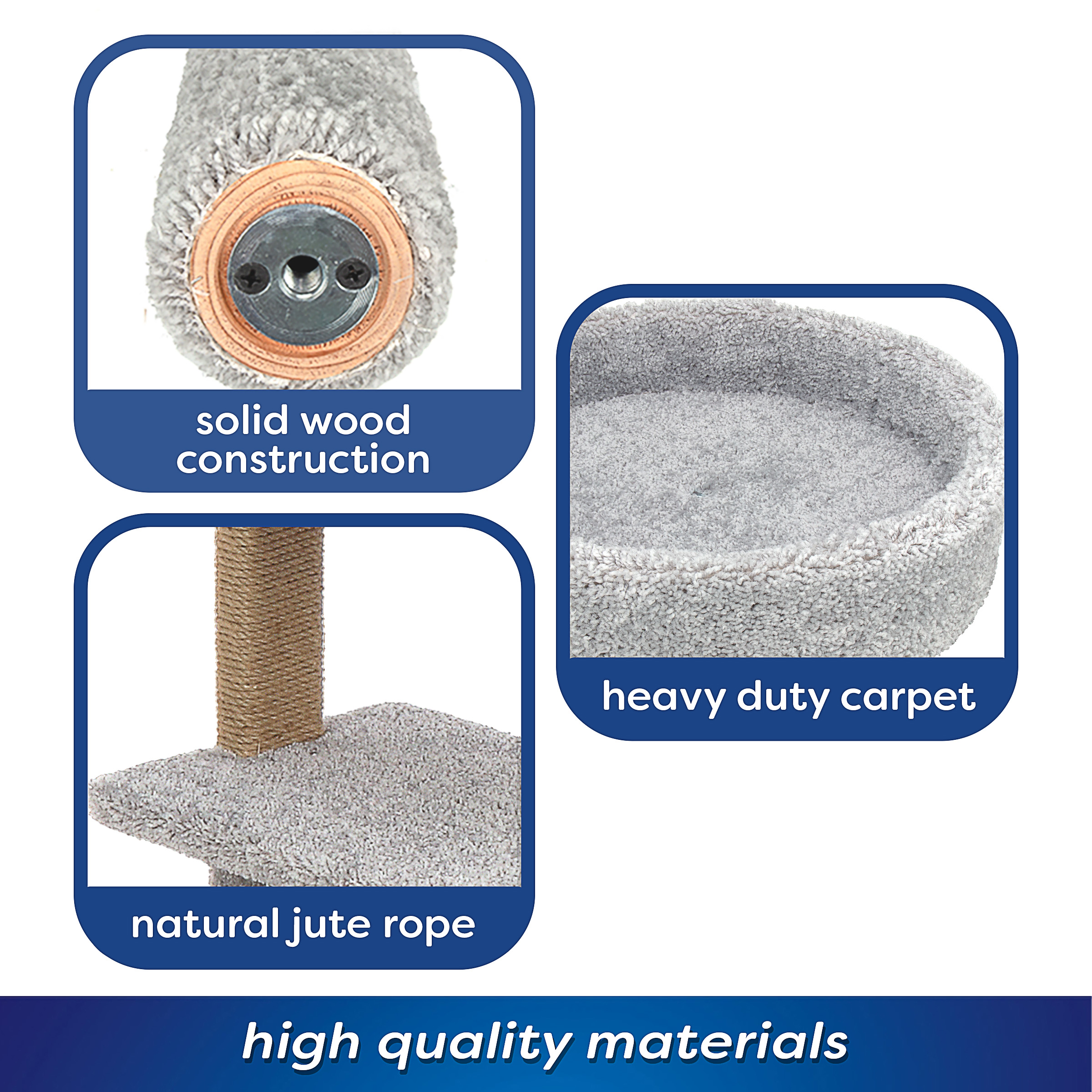 - Durable carpet and jute rope scratching posts