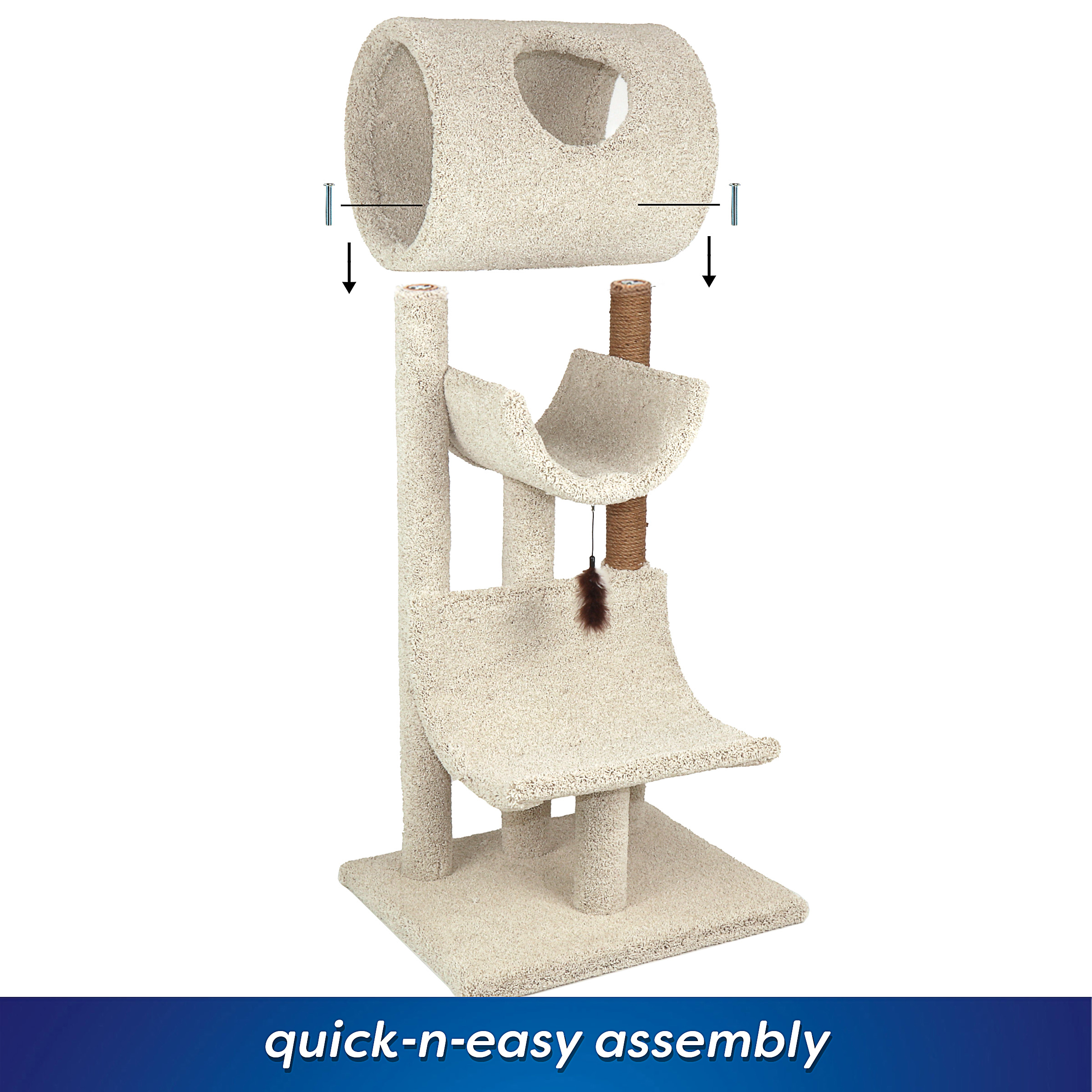 The Kitty-Quick 54" Lounger offers 3 spacious levels of lounging with easy access to the penthouse that sits on top. Great for multiple cats to relax and enjoy. Handcrafted in the USA with solid wood and household grade carpet. Combines ready-to-assemble shipping with pre-built quality for the best of both worlds!